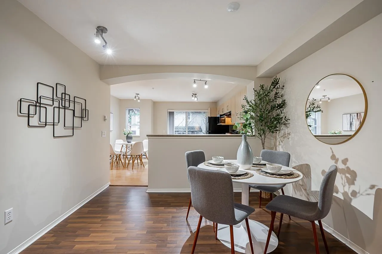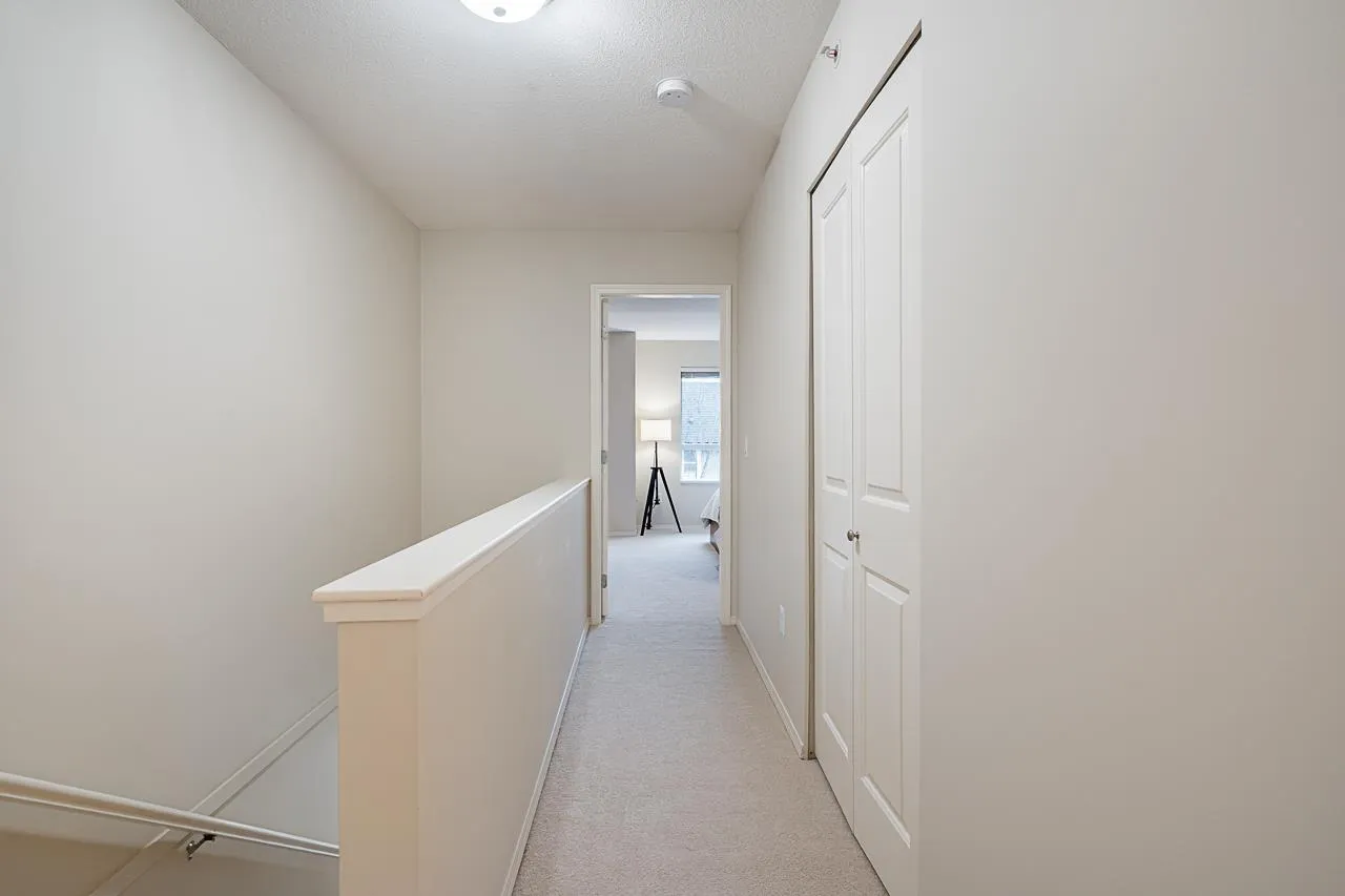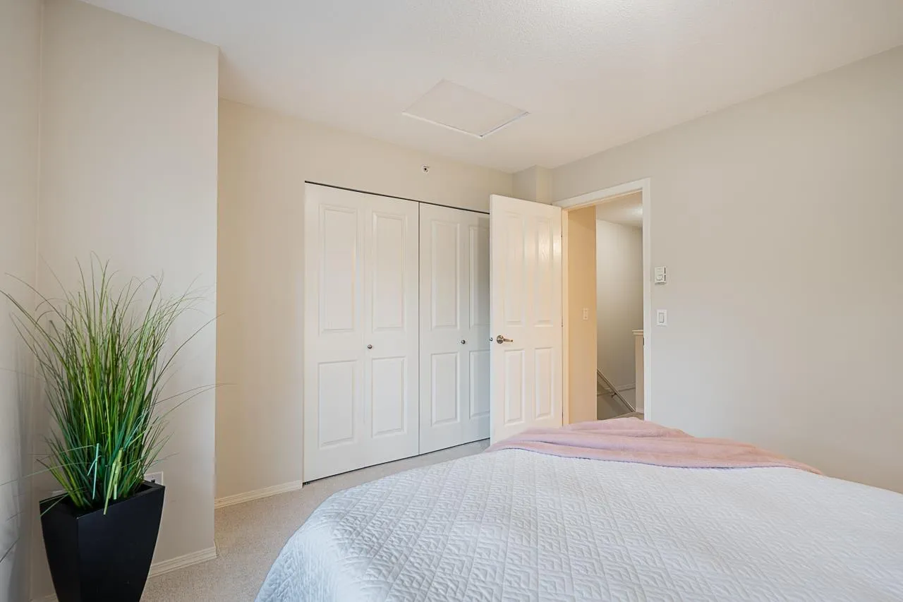 Bright and well-kept 2-bed townhome in the desirable Sagebrook community by Polygon. The open great-room layout includes a spacious kitchen with a full eating area, ample cabinetry, and direct access to an oversized deck. The living and dining areas are centred around a cozy fireplace for a warm, inviting feel. The main floor opens directly to a walk-out fenced backyard, great for kids, pets, and indoor/outdoor living. Upstairs are two generous bedrooms, including a primary with a 4-piece ensuite and excellent closet space. The tandem garage provides parking for two vehicles plus driveway parking. Residents enjoy resort-style amenities including a clubhouse, fitness centre, pool, and hot tub-all in a family-friendly, walkable location near schools, parks, shops, groceries, and transit. (id:27476)