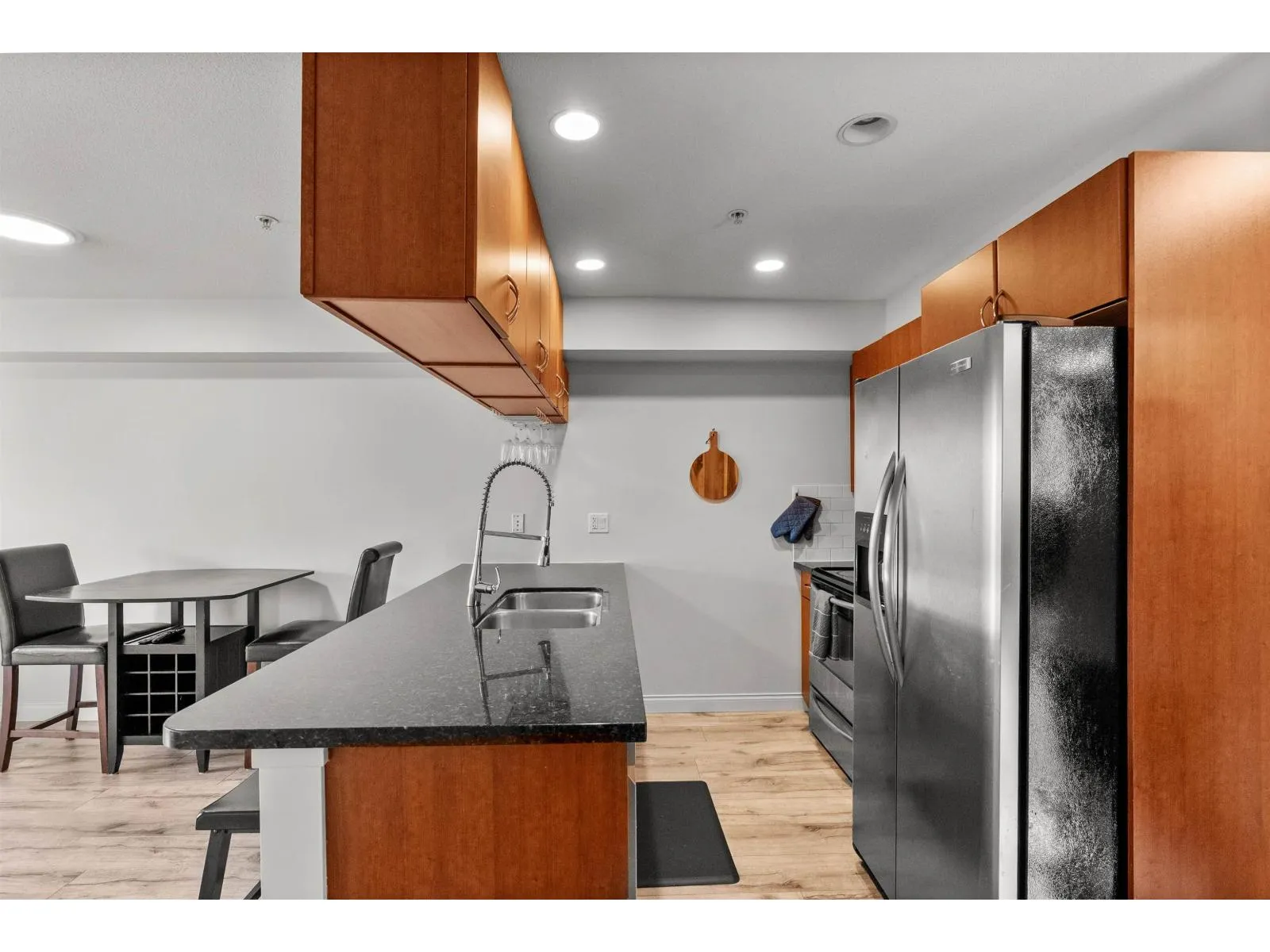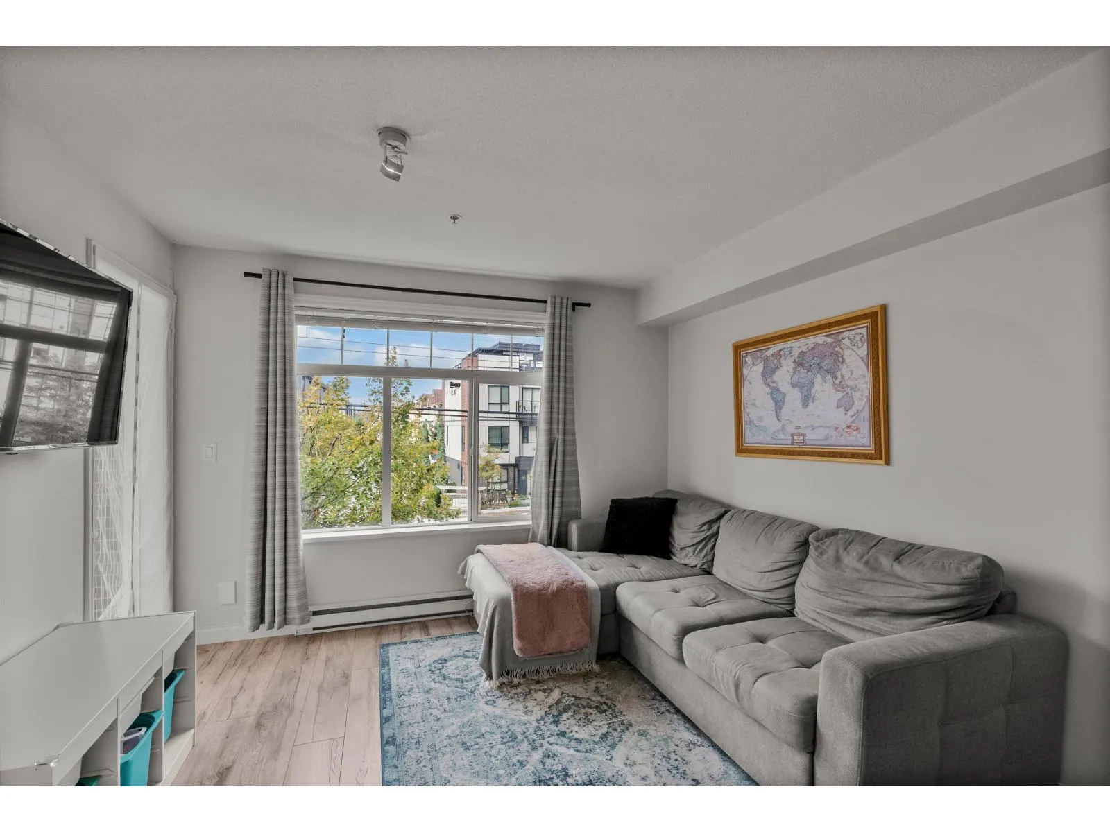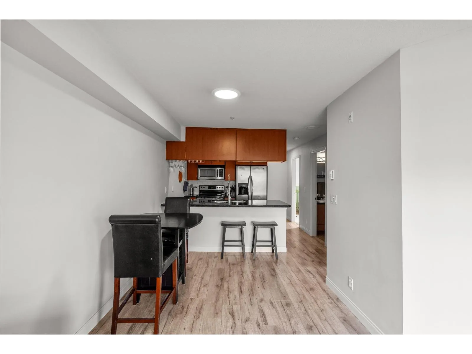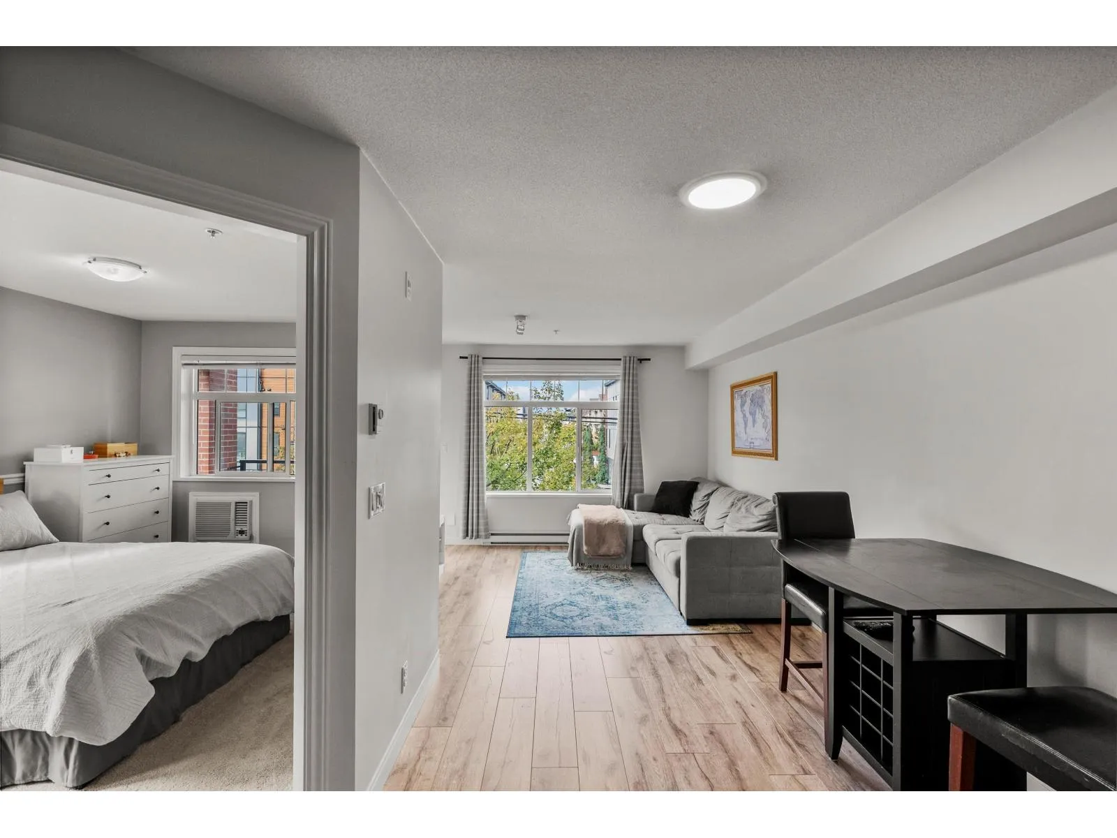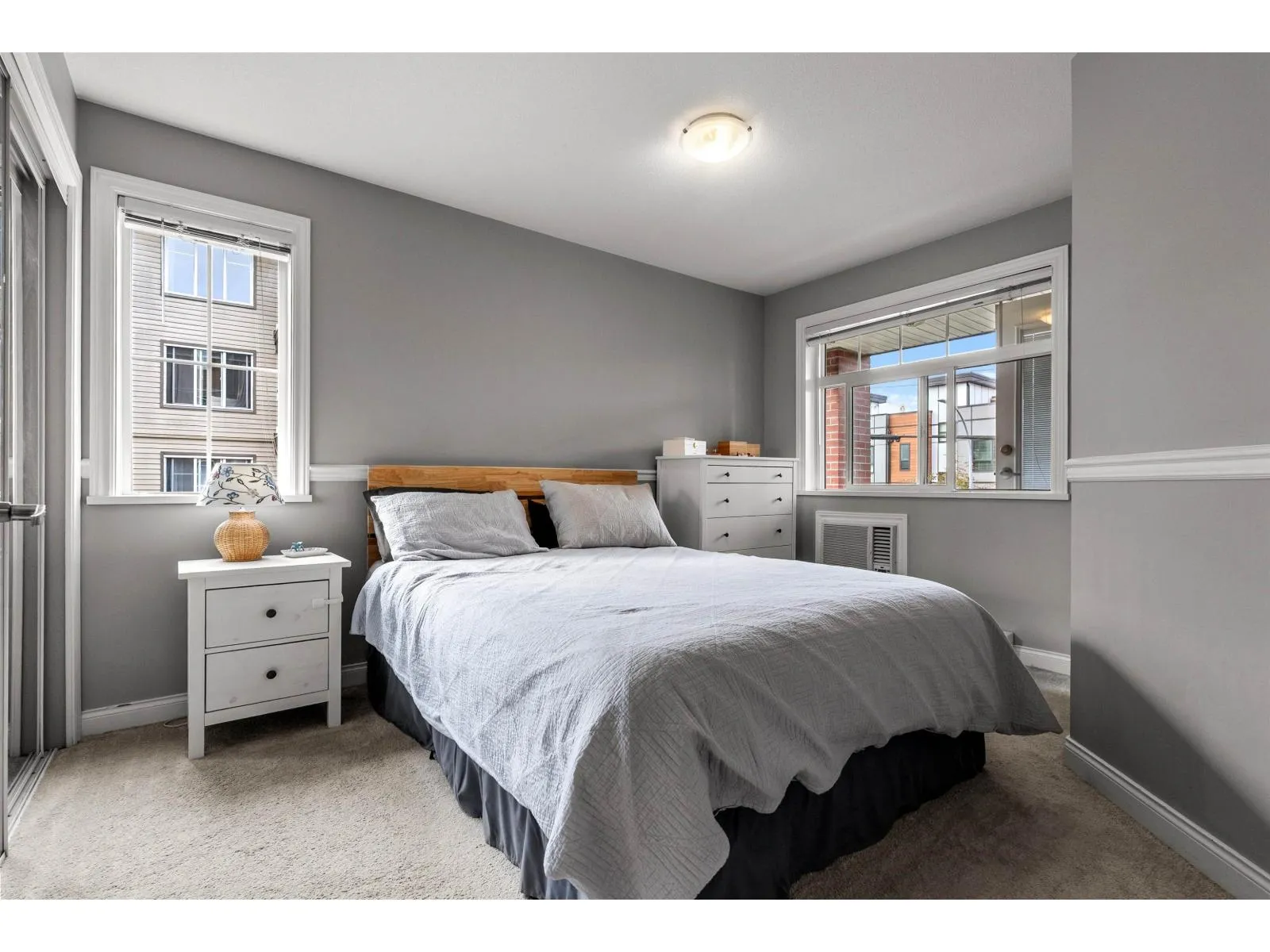 Bright & Private Corner Unit at Madison Villa! This immaculate 2 bed/1 bath home offers the perfect blend of space, light & convenience. The desirable corner location provides enhanced natural light & privacy throughout. Beautifully updated with newer flooring, paint, modern light fixtures & baseboards. Both bedrooms are true bedrooms with windows-rare for this price point! Stay comfortable year-round with A/C included. BONUS: 2 parking spots included & 1 locker! Exceptionally well-maintained building with proactive strata, recently upgraded common area carpets, modern intercom/security system & fitness centre. Unbeatable location steps to shopping, transit & schools in a vibrant, growing neighbourhood. Ideal for first-time buyers, downsizers, or investors. Move-in ready & priced to sell! (id:27476)