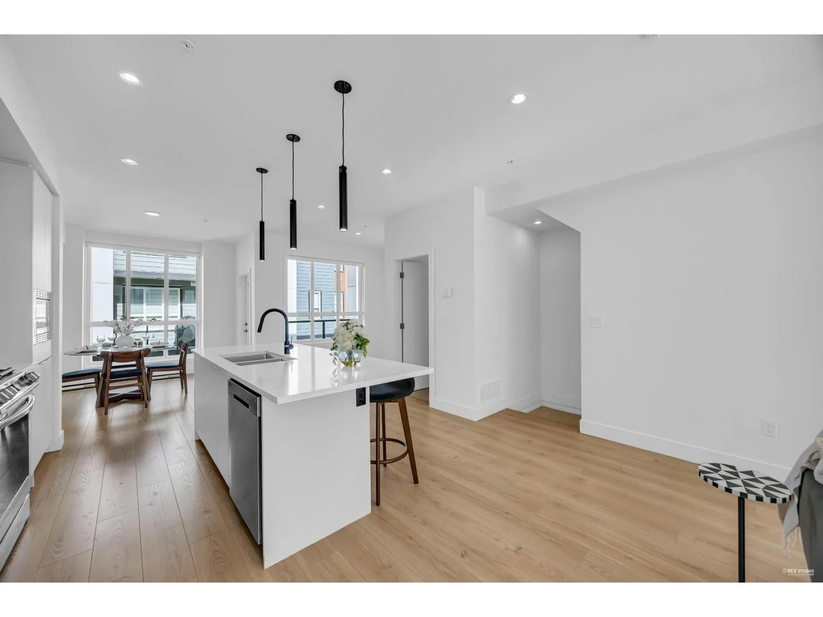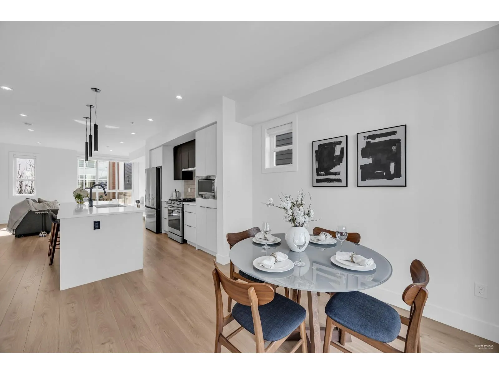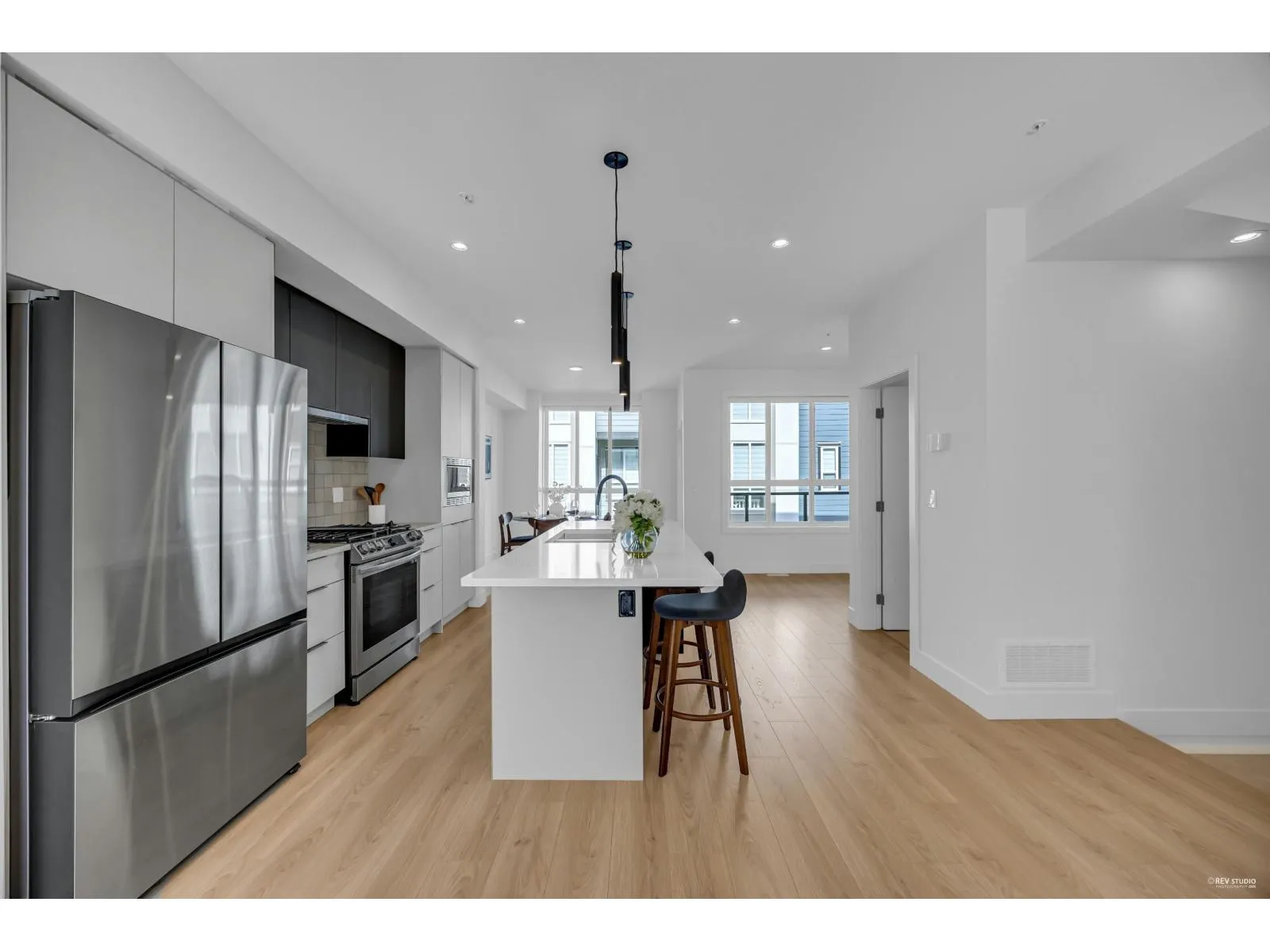 Welcome to Union - the latest in luxury townhomes in Willoughby. This almost-new, meticulously maintained 4-bedroom townhome feels like new. it boasts a prime location minute from Willoughby Town Centre. The expansive floor plan includes 4 bedrooms and 2.5 bathrooms, 1 flex, featuring a large primary suite with vaulted ceilings. Enjoy a double side-by-side garage with a 220-volt outlet for EV charging, forced air heating, on-demand hot water, stainless steel appliances, a gas stove, and A/C. With low strata fees, EV readiness, top-quality construction, and an ideal location close to HWY-1, shopping, and restaurants, this townhome offers everything you need. OPEN HOUSE : Dec 6th(Sat 2-4pm) (id:27476)