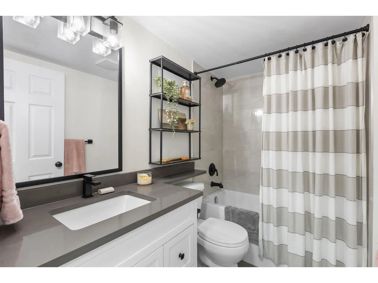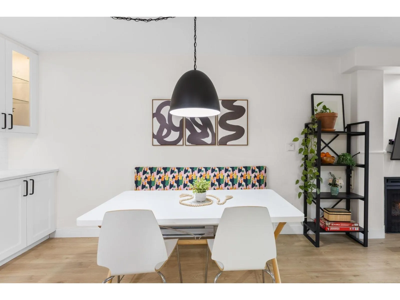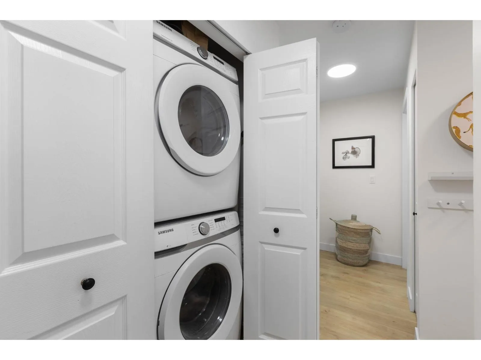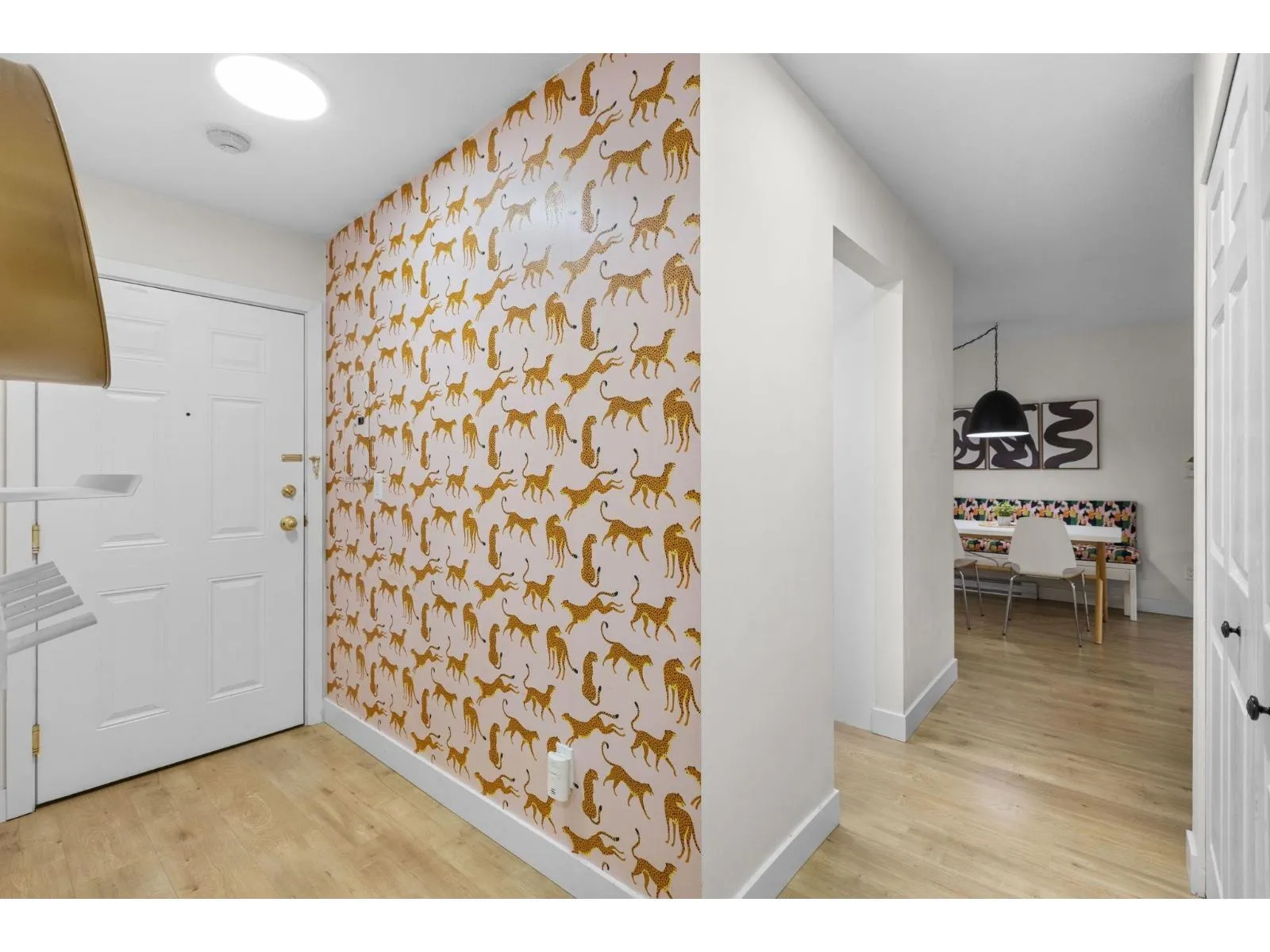 Step inside and fall in love. This bright 2 bed, 2 bath corner suite has been thoughtfully upgraded. The kitchen shines with expansive quartz counters, a custom coffee bar with floating shelves and bar fridge, sleek white shaker cabinets with soft close doors and under mount lighting, plus stainless appliances including a 4 door fridge. Oak laminate flooring and custom lighting carries through the home for a warm, elevated feel. The open living and dining space is perfect for relaxing by the gas fireplace or stepping onto your sunny south facing balcony. Enjoy views of mature trees from every room. Both bathrooms feature quartz counters and deep soaker tubs. Full size laundry adds convenience. Bonus extra street parking for your second car and a short distance to the future SkyTrain. (id:27476)