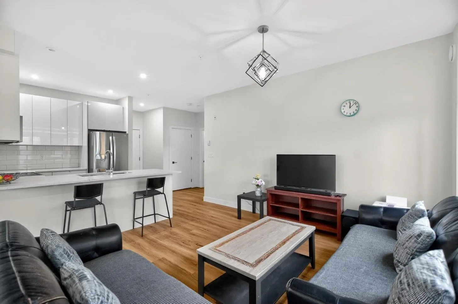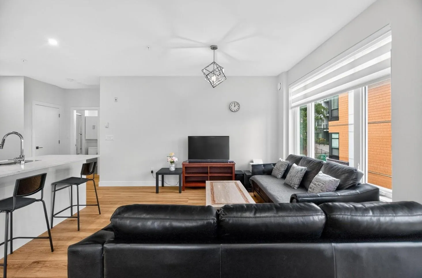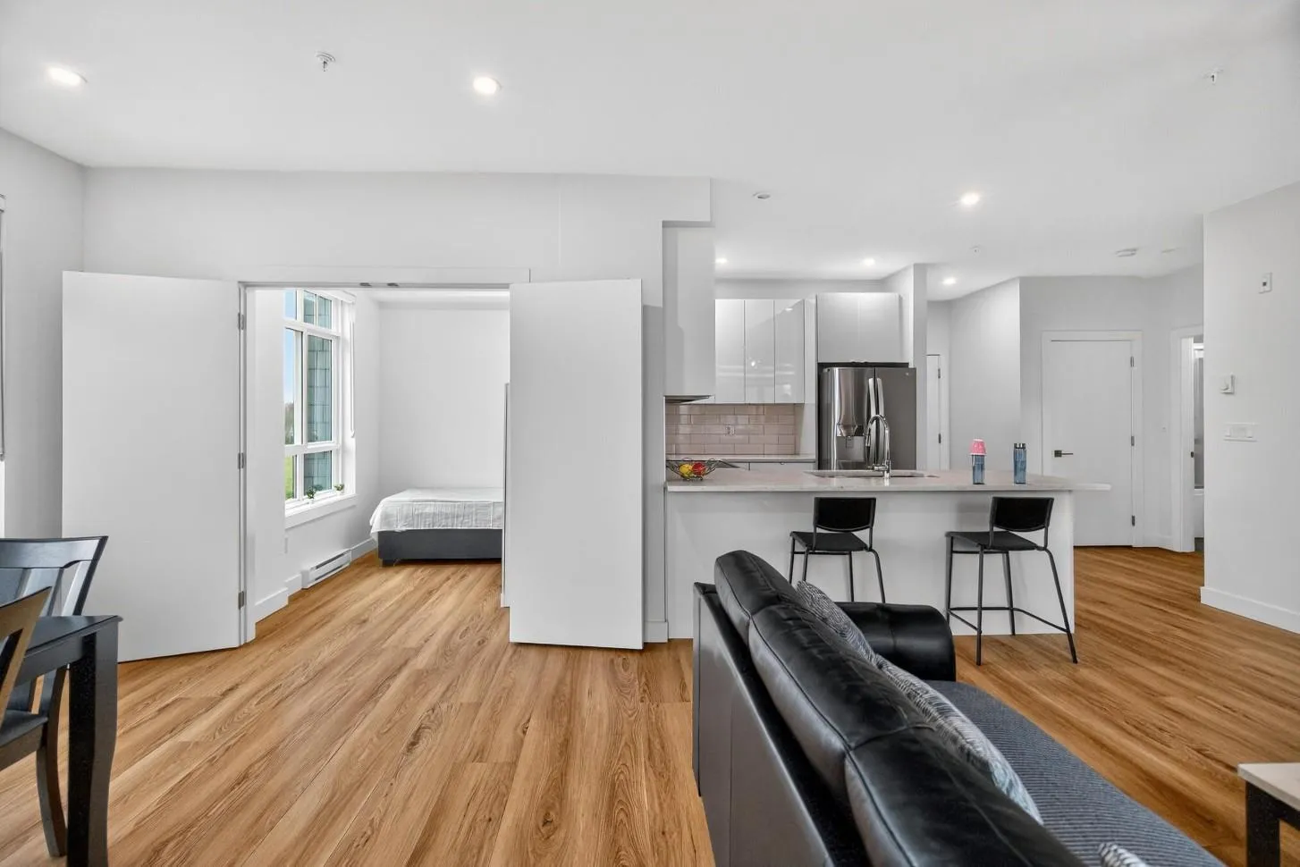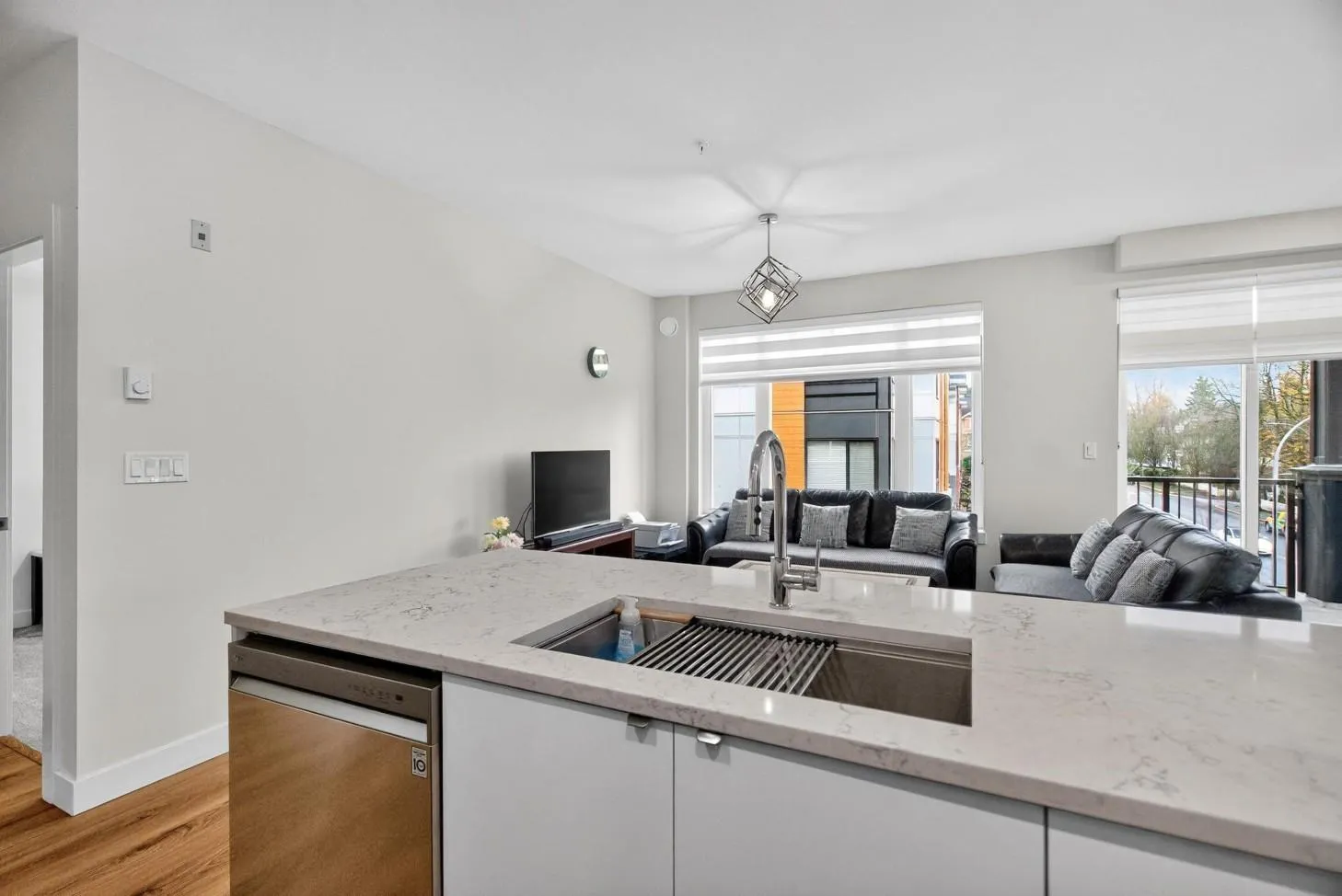 Spacious boutique living on the greenbelt! This bright 781 sq. ft. SE CORNER 2-bedroom home offers modern comfort with a sunlit living room with large windows & an open-concept layout featuring 9 ft. ceilings, a white kitchen with soft-close cabinetry, quartz counters, premium S/S appliances & a large island. Located in a 3-level boutique building with only 15 owner-occupied units built in 2023, it provides exceptional privacy. Upgrades include organized closets, zebra blinds & a full-size washer/dryer. The second bedroom has its own window & closet-not a junior suite. Enjoy a same-floor storage locker, 1 parking & a prime location minutes to schools, shopping, recreation & the Langley Events Centre. Pets welcome (2, no size restriction). Open House Dec 7th, Sunday, 2-4 PM (id:27476)