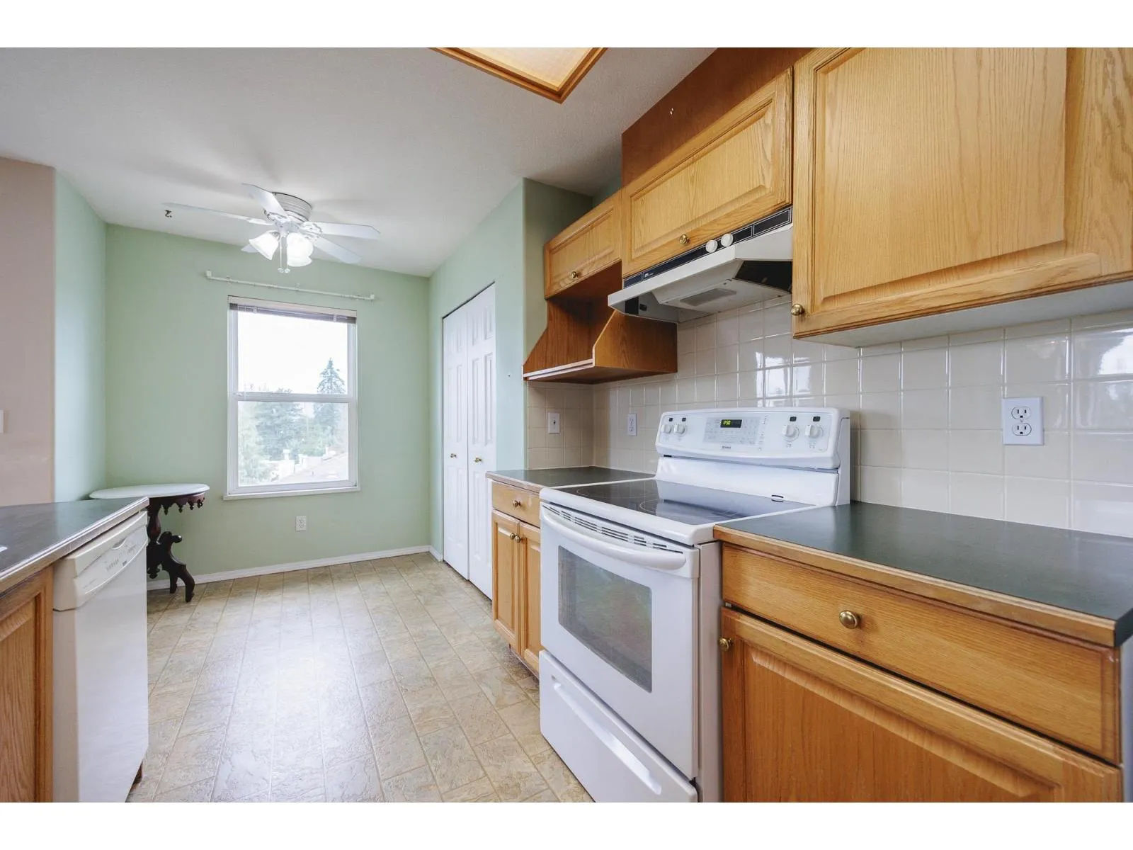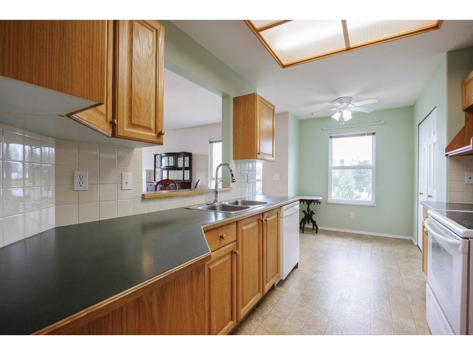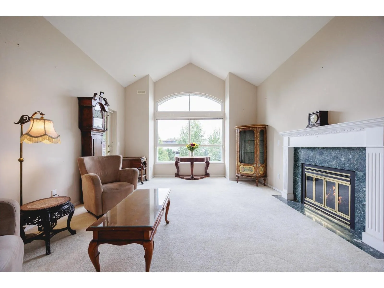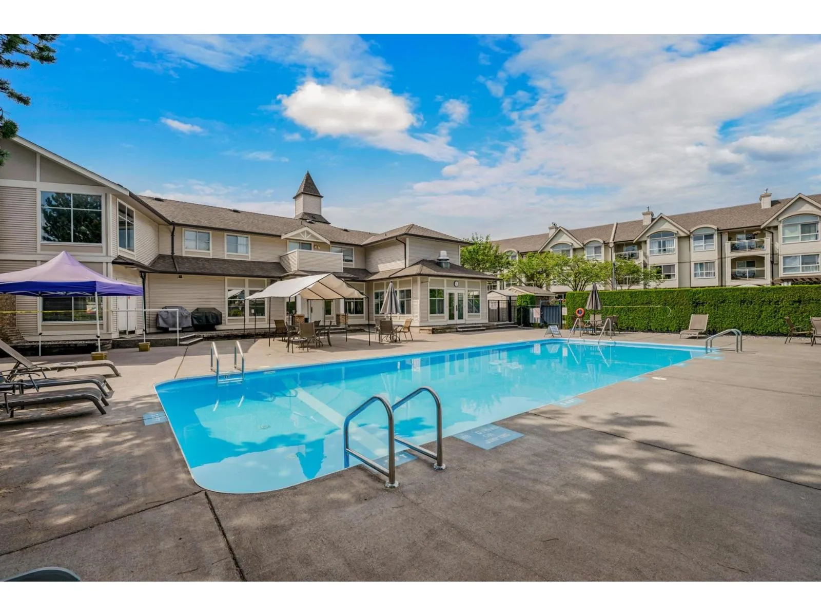 Welcome to Chelsea Green in the heart of Walnut Grove! This bright, top-floor, corner unit is designed for vibrant 55+ living. With over 1,200 sqft of thoughtfully designed space, enjoy 2 spacious bedrooms and 2 full baths with added A/C for your ultimate comfort. The immense primary includes a heated-floor ensuite and patio access. Relax by the cozy gas fireplace or unwind on your private patio with serene mountain views. The kitchen features a pantry and an open bay window to the living room-great for entertaining. Strata includes A/C, on-demand hot water, and gas heat. Enjoy a warm, welcoming community with RV & visitor parking and resort-style amenities like aqua-fit, woodworking, and games nights. Steps to shops, parks & transit - Home is where your Storey begins! (id:27476)