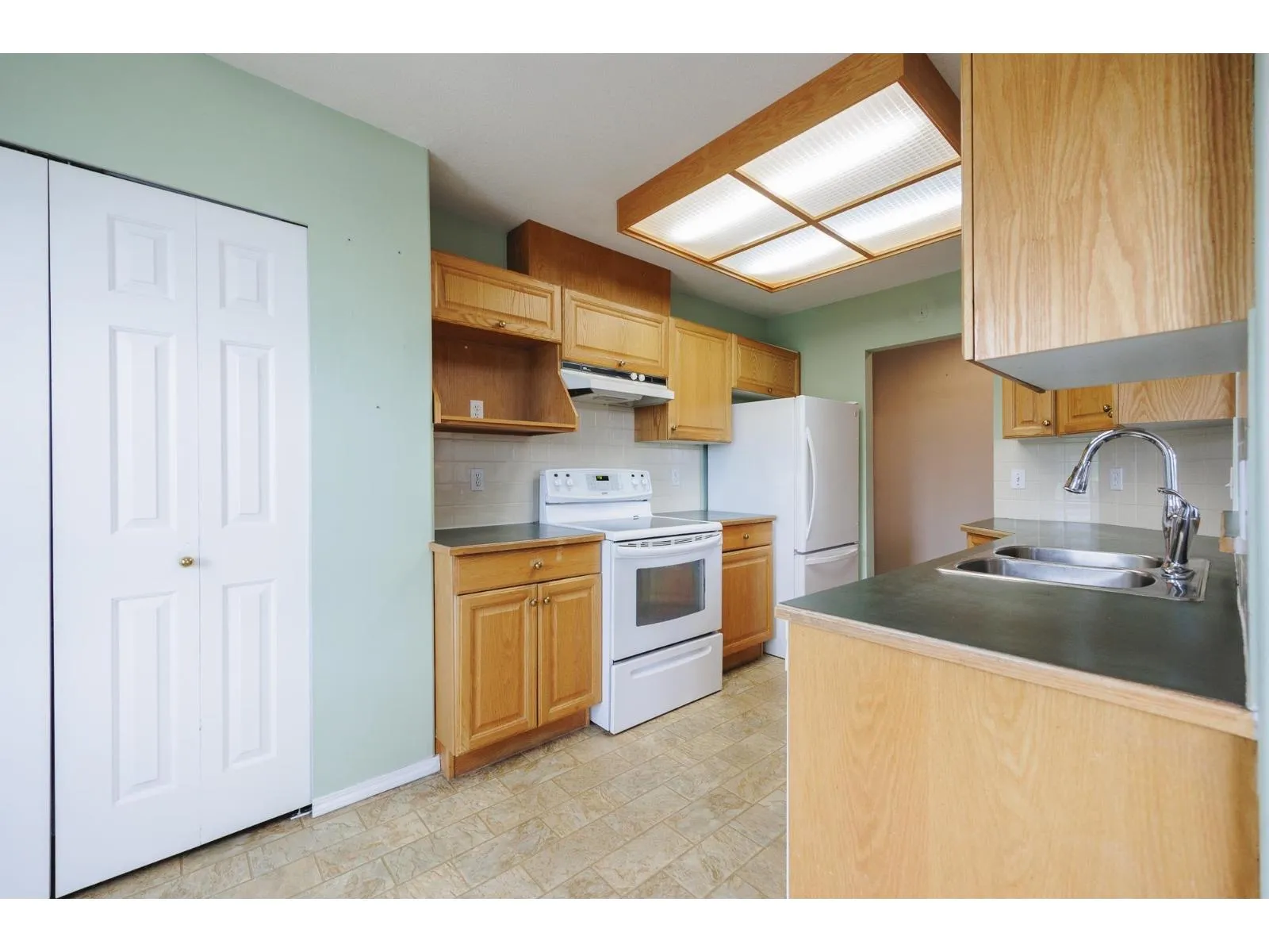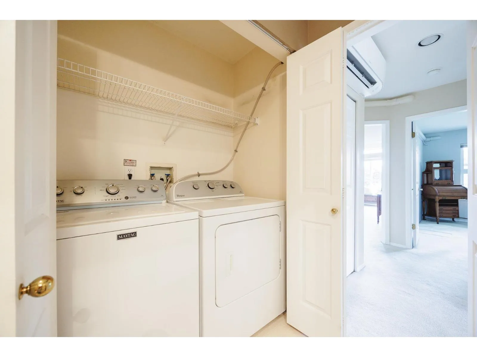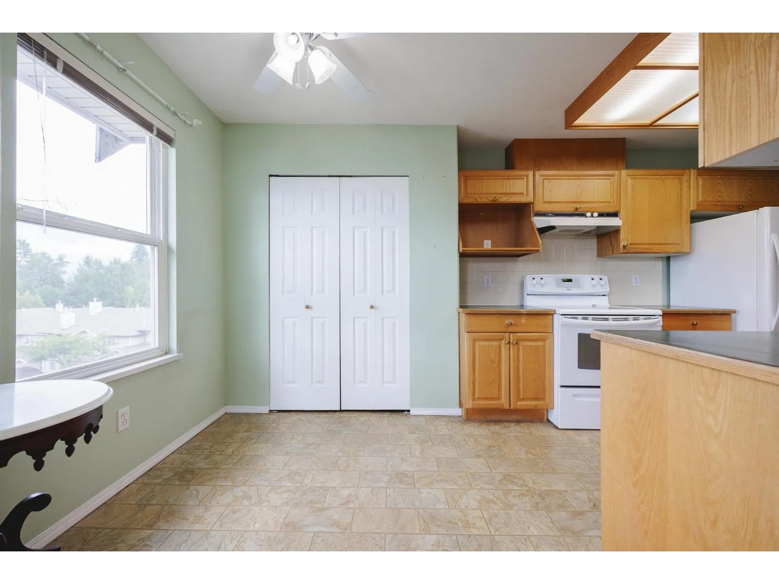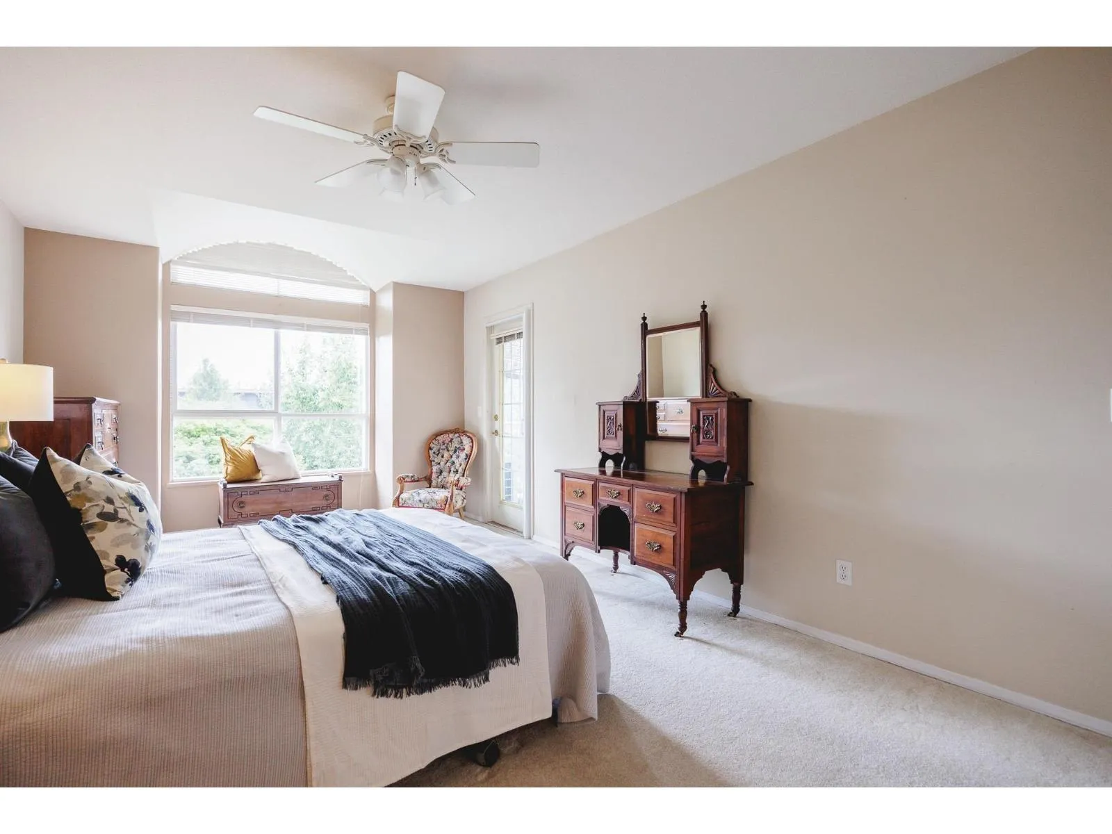 Welcome to Chelsea Green in the heart of Walnut Grove! This bright, top-floor, corner unit is designed for vibrant 55+ living. With over 1,200 sqft of thoughtfully designed space, enjoy 2 spacious bedrooms and 2 full baths with added A/C for your ultimate comfort. The immense primary includes a heated-floor ensuite and patio access. Relax by the cozy gas fireplace or unwind on your private patio with serene mountain views. The kitchen features a pantry and an open bay window to the living room-great for entertaining. Strata includes A/C, on-demand hot water, and gas heat. Enjoy a warm, welcoming community with RV & visitor parking and resort-style amenities like aqua-fit, woodworking, and games nights. Steps to shops, parks & transit - Home is where your Storey begins! (id:27476)