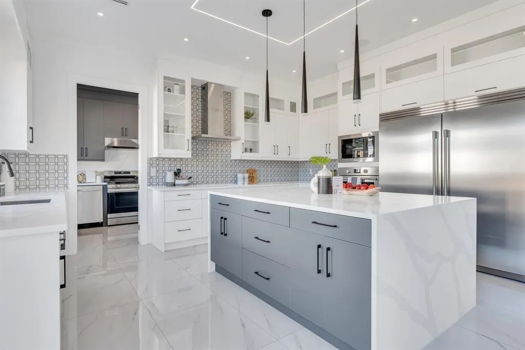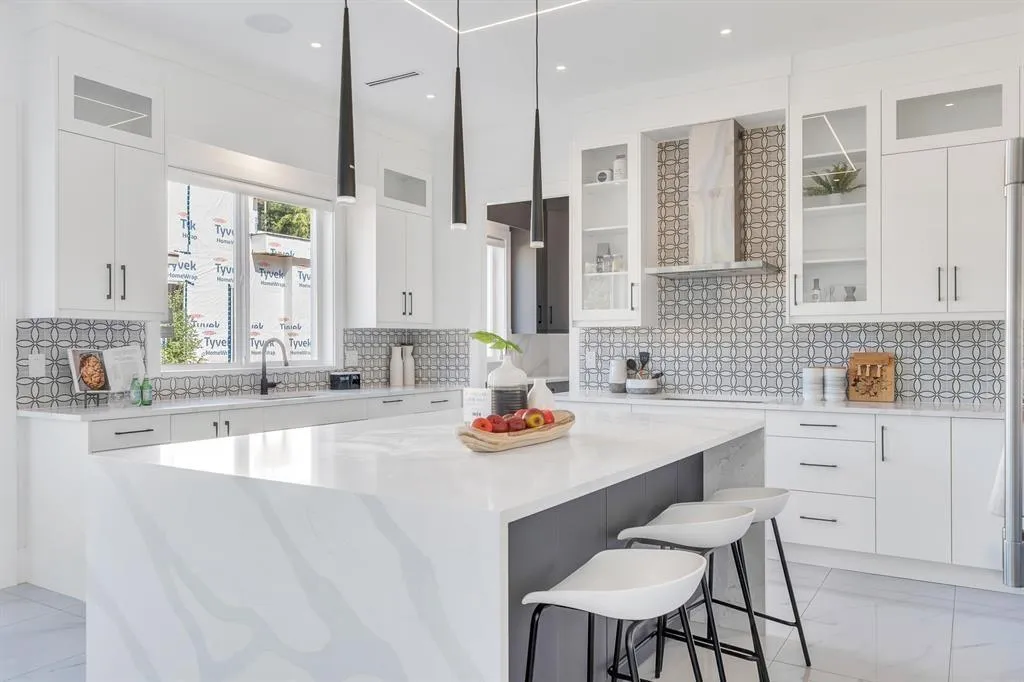 WOW! This 8 bed, 9 bath custom home spans nearly 5,800 sq ft of pure luxury. The main floor boasts soaring ceilings, oversized windows, a spacious living/dining area, family room, gourmet kitchen with quartz counters, SS appliances, WOK kitchen, plus a one bedroom with ensuite, office and laundry. Upstairs: 4 bedrooms, each with its own ensuite and walk-in closet - including a stunning primary suite with a massive closet and spa-like bathroom. The basement features a theatre and powder room for the main home, plus a 2-bed legal suite and 1-bed unauthorized suite. Set on a 7,000+ sq. ft. lot with a wide, unique floorplan, top-tier finishes and a double garage. Prime location. Total showstopper. PICTURES FROM WHEN HOUSE WAS STAGED. THERE IS NO LONGER CONSTRUCTION BESIDE, FULLY FINISHED. (id:27476)