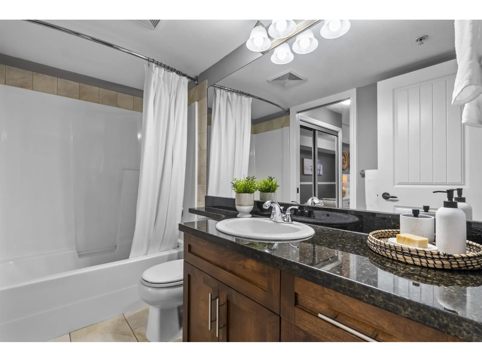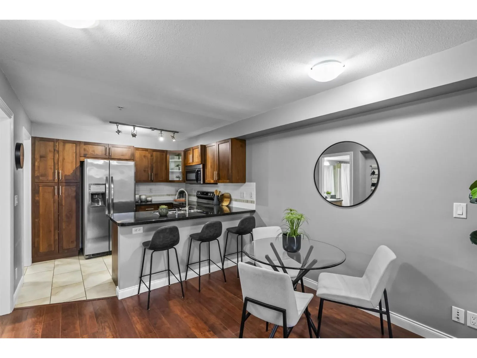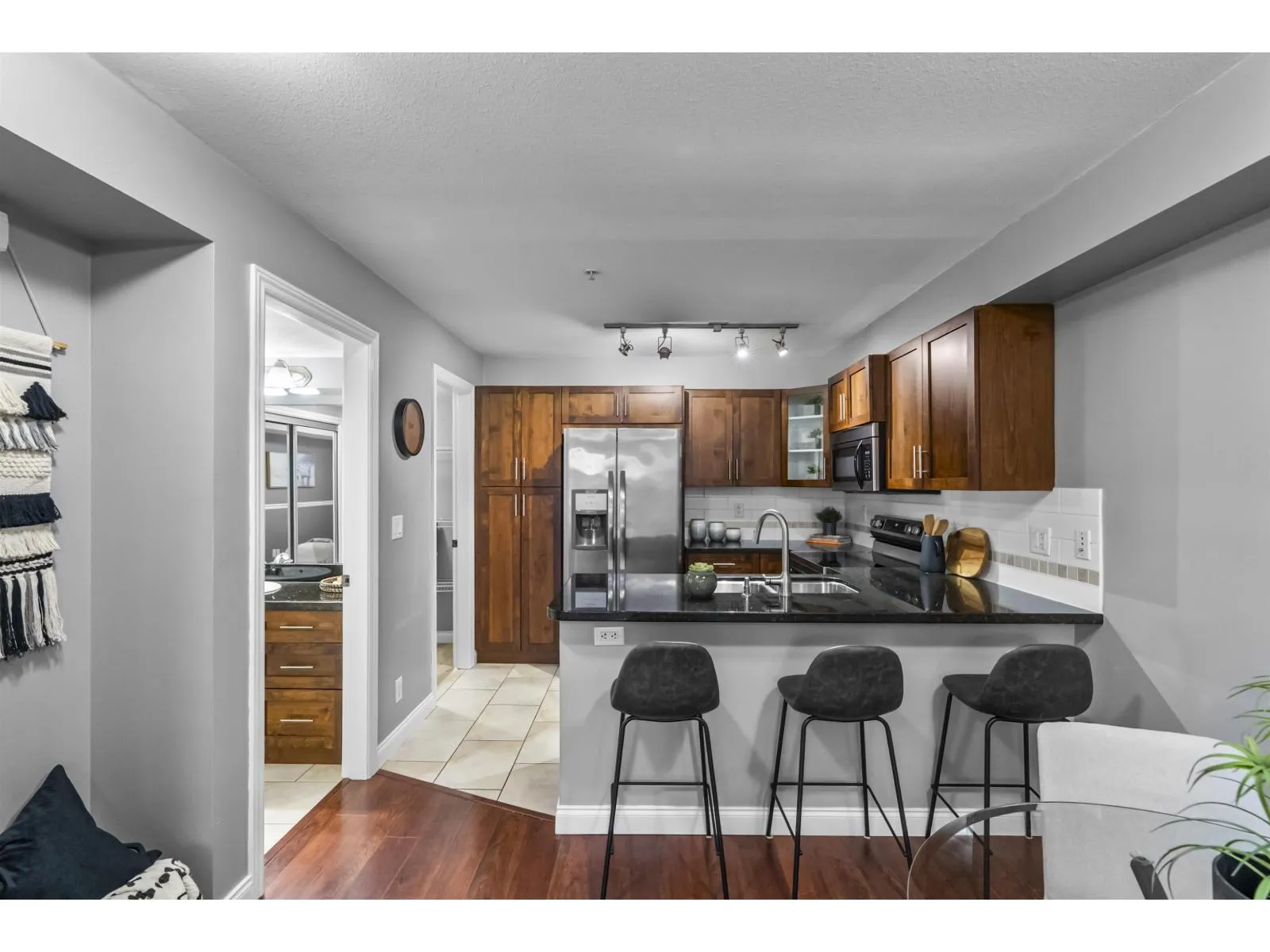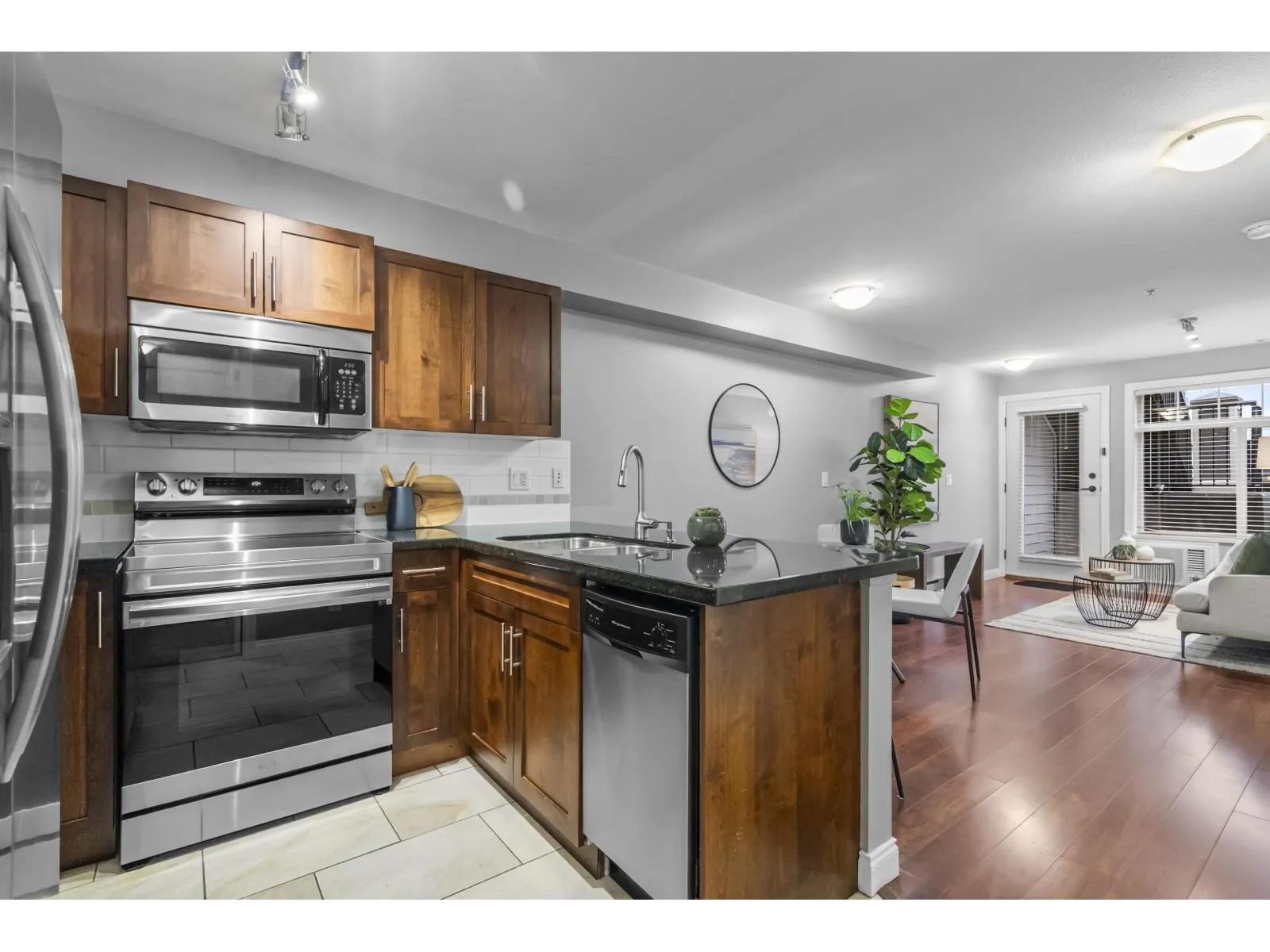 Move-in ready perfection! This immaculate one-bedroom ground floor condo is a must see. Bright, open layout features granite countertops, stainless steel appliances, and a semi-ensuite bathroom. New carpet in bedroom and den/storage space, fresh paint throughout, and updated light fixtures create a modern, welcoming space. Perfectly positioned ground-floor unit in a well-maintained building with stunning courtyard. Prime location just 100m from transit, steps to shopping, dining, recreation, casino, and town center. Flexible for investors and pet lovers - rentals permitted, pets allowed with restrictions. This spotless home is ready for even the most discerning buyer. Book your showing today! (id:27476)