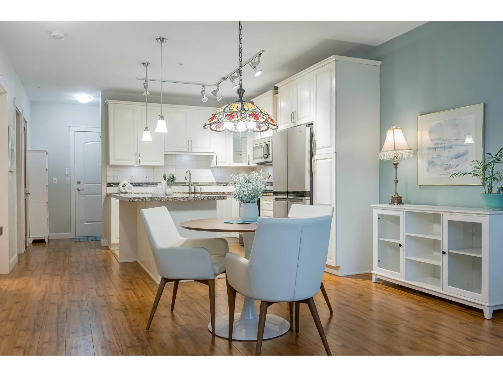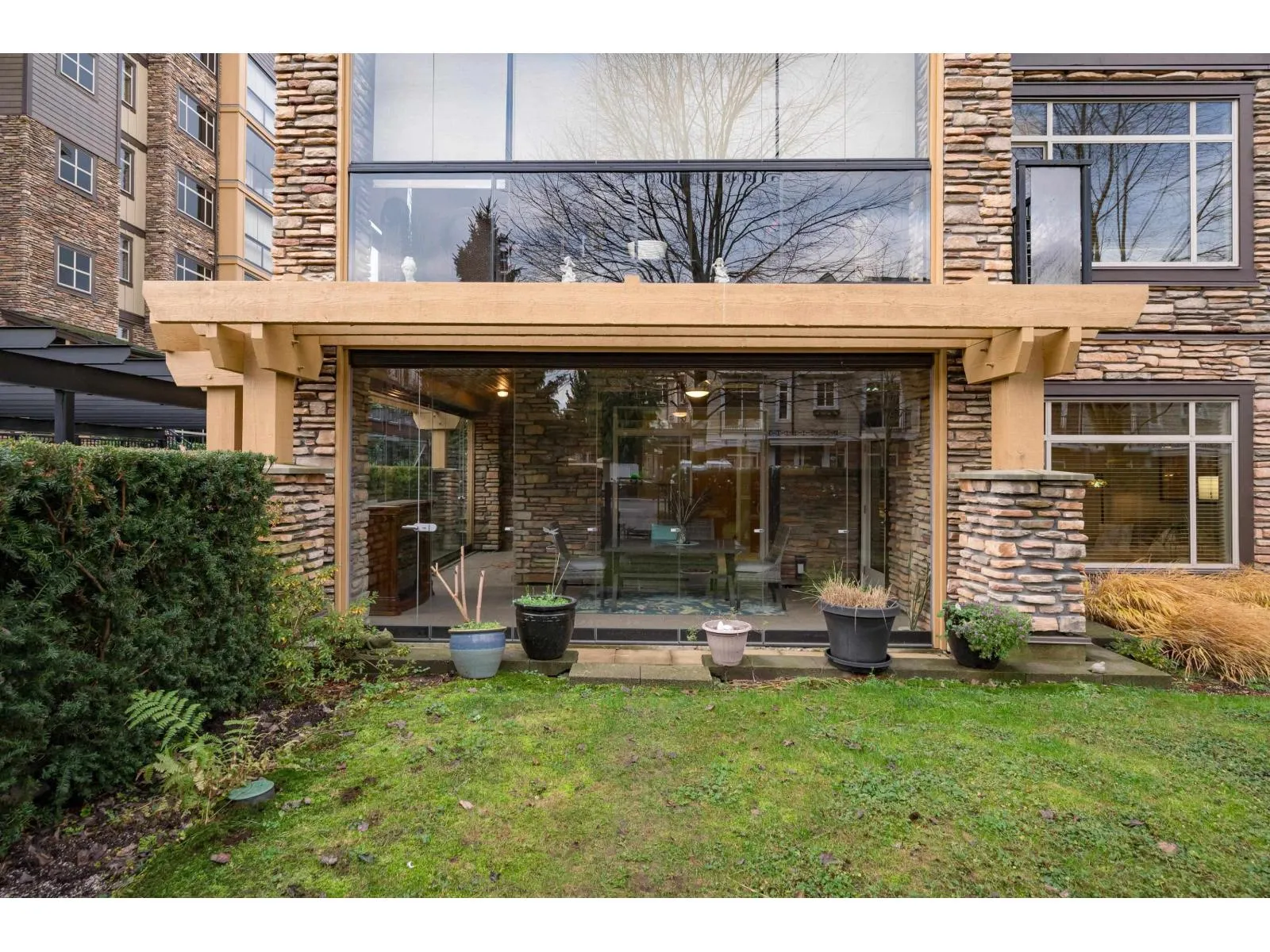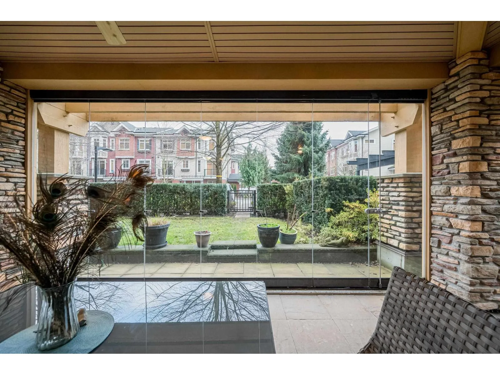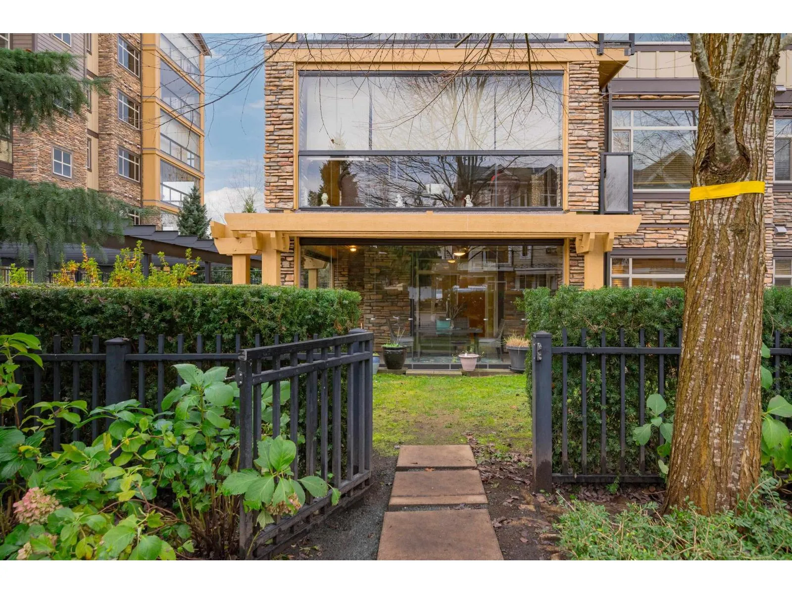 Parkside 1 in the heart of it all with everything right outside your door, welcomes you to this gorgeous 2 bdrm, 2 bth plus den END UNIT ! Great floor plan & just under 1050 sq ft, with some fantastic updates including the stunning white kitchen (2023) with S/S appliances including gas & newer dishwasher & fridge. Well sized island/prep space! Located on the ground floor with a massive yard, perfect for kids & pets, & offers quick access to visitor parking as well for guests! The wrap around glass enclosed patio is a great extension of your home for year round use and is accessed off both the primary bdrm & the living rm. Primary offers walk in closet with organizers & beautiful 4 pc ensuite. A/C is great for the hot summer ~ heat pump updated in 2022. 2 parking, 2 storage lockers! (id:27476)
