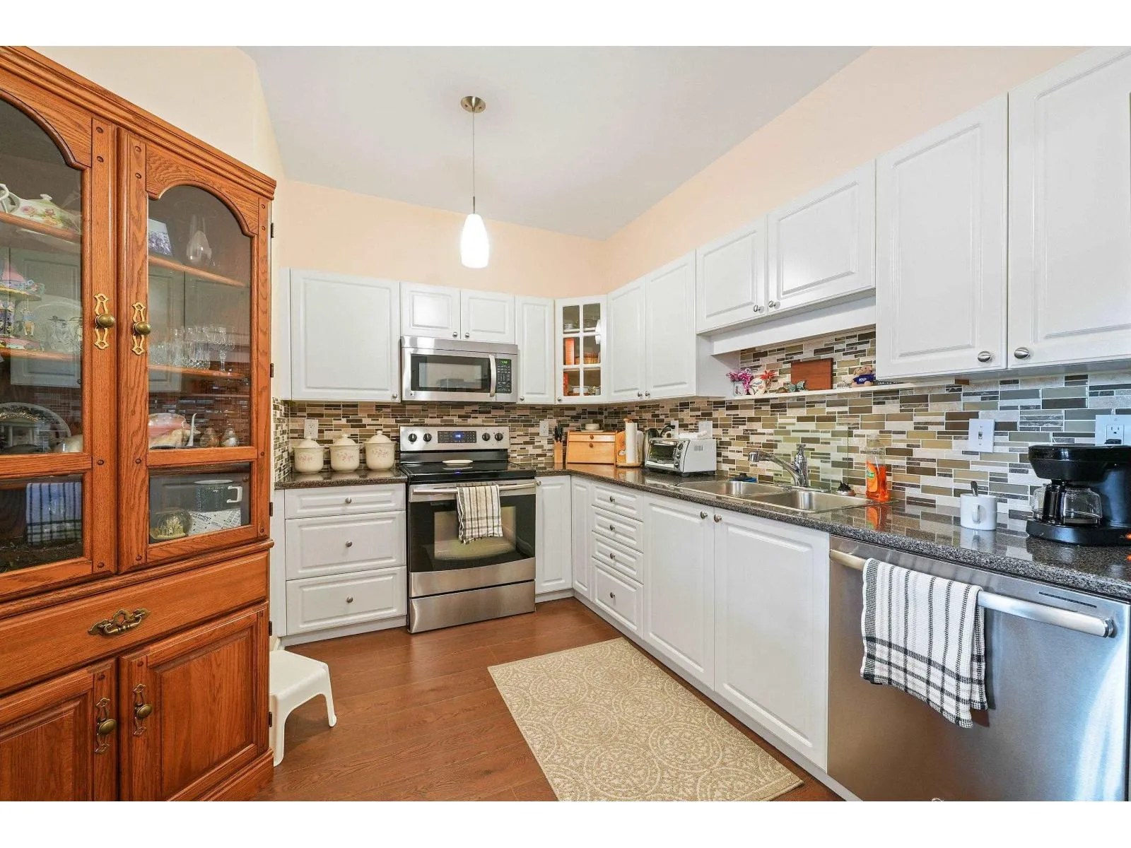 BRIGHT & COZY Top Floor 2Bdrm/2Bth 1050+SF Condo located in sought after IVY LEA AT THE MEADOWS! This well-kept home offers 9' ceilings giving a more roomy feel and lots of natural light. Kitchen presents SS appliances, double sinks, tiled backsplash + ample cupboards. Open living/dining area shows beautiful wide-plank laminate floors & gas fireplace. Primary is complete w/walk-in closet & 4pc ensuite w/soaker tub PLUS fits a KING bed too! Second Bdrm is conveniently located on the opposite side of the Primary--allowing for Privacy. Generous sized laundry room too! Enjoy your southwest facing covered patio w/space for your BBq & comfy patio furniture. Close to shopping & steps to Dumais Park with a playground. You won't want to miss this GEM! (id:27476)