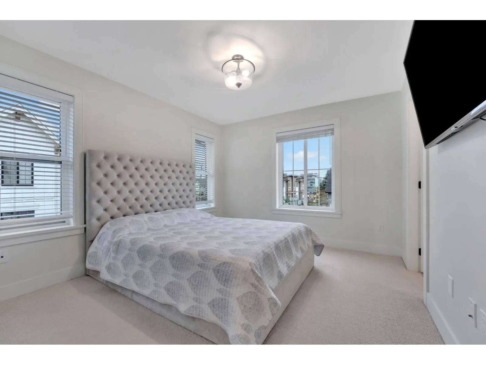 Madewell by Gatehouse - an inspired collection of 44 upscale townhomes with modern farmhouse design. This bright corner unit features an open layout with 9' ceilings on the main and tons of windows. The statement kitchen offers soft-close shaker cabinets, quartz counters, S/S appliances, gas range, pot filler and access to a large balcony with BBQ-ready gas hookup. Offering 1,520 sq.ft. over 3 levels, it includes 3 bedrooms up with a vaulted primary and 4th bedroom/office on the lower level, along with 3 spa-like baths. Upgrades include matte black hardware/fixtures, tankless HWT, HE furnace and A/C. Enjoy a double side-by-side garage with EV charger and driveway parking. Central location minutes to schools, shops, restaurants, Hwy 1 & Carvolth Park and Ride with express bus to Skytrain. (id:27476)