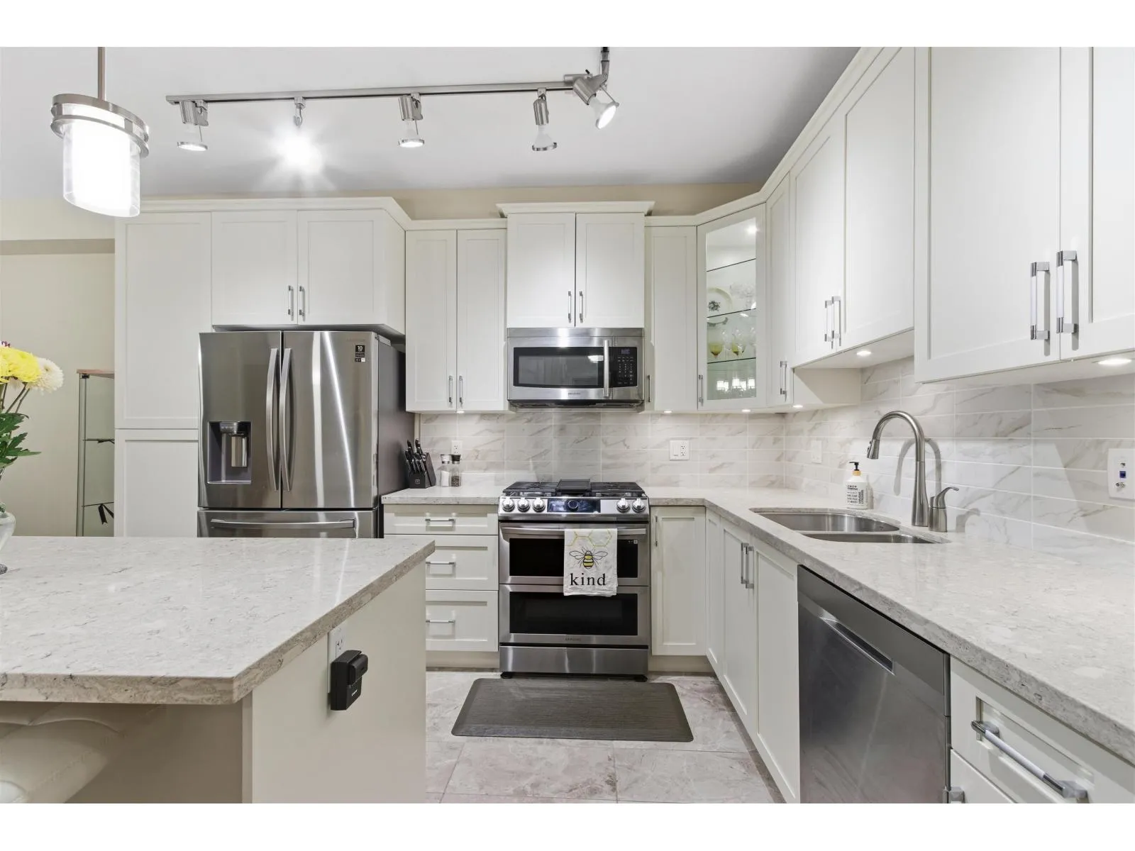 Prime location with unmatched convenience! This bright, spacious 3-bed/2-bath condo offers superb accessibility, including wheelchair-friendly features and proximity to Carvolth Exchange, schools, and shopping. Ideal layout features a fully private solarium with no street access, perfect for all weather entertaining. Gourmet kitchen shines w/ Samsung appliances and a 5-burner gas cooktop, complemented by a natural gas BBQ hookup. Stay comfortable year-round with a high-efficiency multi-zone heat pump system for air conditioning. This unit includes two parking spots- one with extra side access space, and a large, secure concrete-walled storage garage. Pet-friendly (max two cats or dogs). Easy access to Hwy 1. Balance New Home Warranty. Recreation facility usage & Quick possession available. (id:27476)