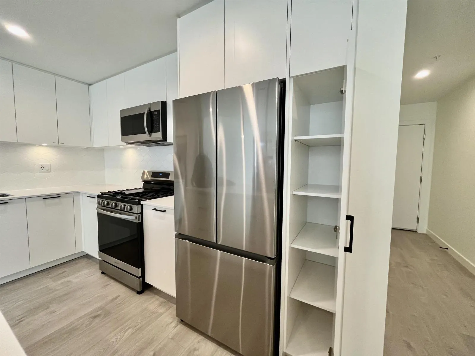 3 Bedroom+Den 2 Bath in the Heart of Latimer Heights Village, Langley. Spacious 1,300 sq.ft. NW Corner unit with a great open layout and tons of natural light. Laminate Flooring throughout + Carpet in bedrooms. Quartz countertops and high-end S/S appliances with a gas range. Patio overlooking beautiful courtyard/park. 2 parkings (1 EV charging included). This modern condo is located in a beautiful village with restaurants, groceries and more. Just few steps away to community gardens, community BBQ, kids area and a putting green. Close to shopping, schools, transit, and recreation. Easy access to Hwy 1 & within minutes to Carvolth exchange (Express bus #555 to Skytrain). School Catchment: Wiilloughby Elementary, Yorkson Creek Middle School, R.E. Mountain Secondary School. (id:27476)