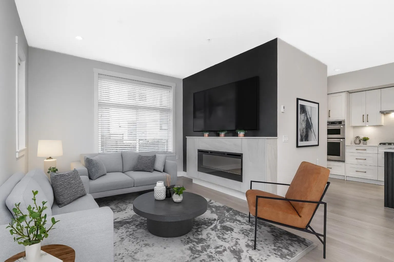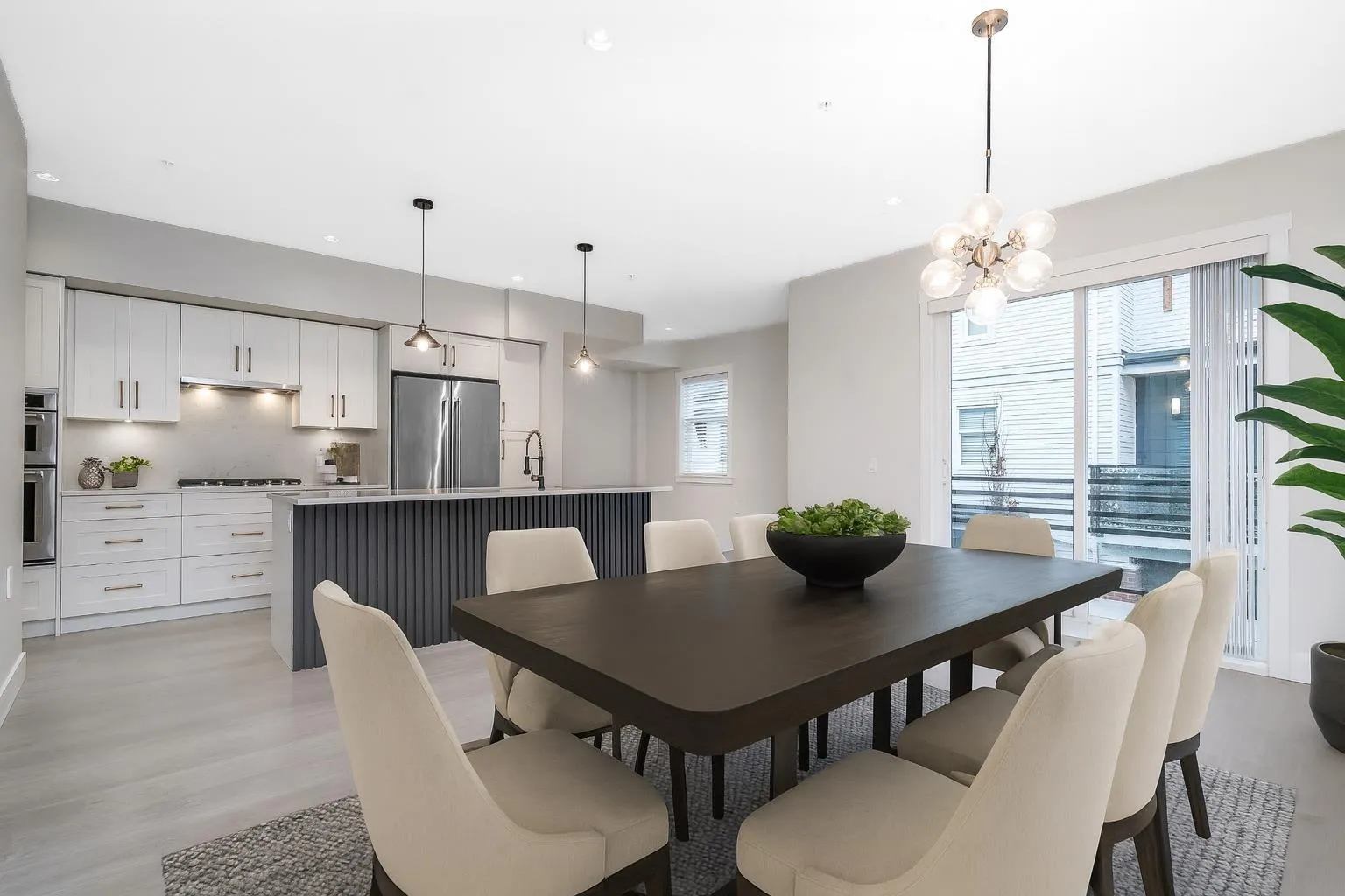 RARE 1,682 sf 2 bdrm/3bath END unit townhome in the heart of Murrayville. Built by Zenterra, an award-winning builder known for quality & craftsmanship. This gently lived-in home offers modern comfort. An inviting open-concept main floor w/ a spacious kitchen, abundant cabinetry, updated lighting, a generous island-perfect for cooking & entertaining. The bright living room incl a cozy F/P, 9' ceilings, & expansive windows that flood the space with natural light. A powder rm & good sized deck complete the main floor.  Upstairs, the impressive primary bdrm showcases a 14' vaulted ceiling, two closets & well appointed ensuite. The 2nd bedroom is generously sized, plus laundry on upper floor. Other features incl fenced yard, 26'5 x 23'5 GARAGE that fits a FULL SIZE truck, A/C, HW on demand (id:27476)