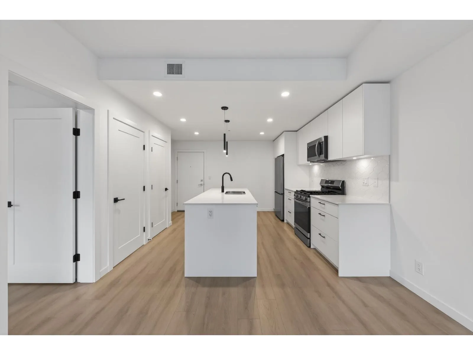 Welcome to Latimer Village, one of Willoughby's most desirable neighborhoods! This bright and airy 1-bedroom, 1-bathroom home offers 669 SQFT of open-concept living, flooded with natural light thanks to large windows and stylish laminate flooring. The sleek kitchen features stainless steel appliances, a gas cooktop, and a generous island perfect for cooking and entertaining. The spacious bedroom comes with an oversized walk-in closet to keep things organized. Additional perks include one parking spot with EV rough-in, a storage locker, and the comfort of nearly-new construction. Enjoy being just steps from quaint shops, cozy cafés, scenic trails, and quick access to Hwy 1. (id:27476)