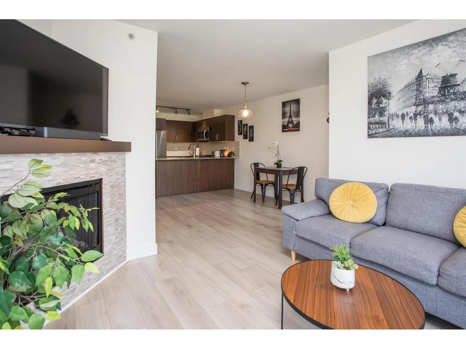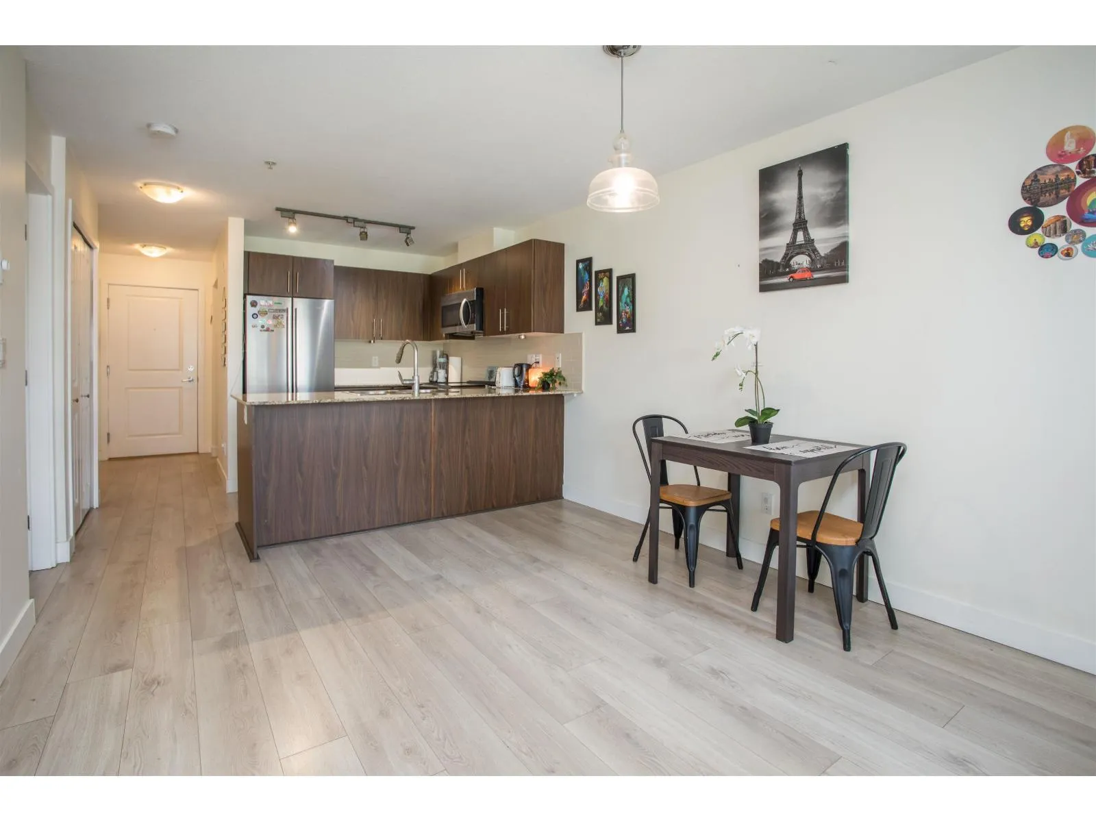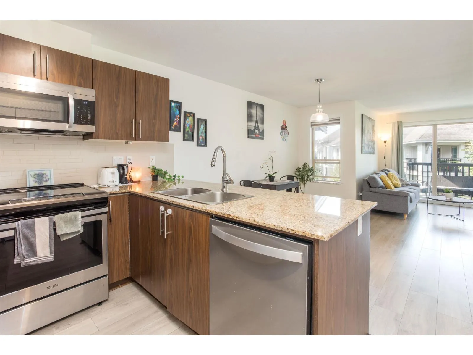 Welcome to this bright & spacious TOP-FLOOR home, centrally located in the heart of Langley's highly sought-after Walnut Grove community. Boasting an open-concept layout, the kitchen is elegantly appointed w/ granite countertops, stainless steel appliances, & a convenient breakfast bar. The Den offers an excellent option for a home office or additional flex space. Step onto your private patio to enjoy stunning mountain views, a perfect setting for relaxation. Surrounded by top-rated schools, beautiful parks, shopping, dining, & entertainment, this home offers quick access to Highway 1 & public transit & is within walking distance to everything! excellent opportunity for first-time buyers, downsizers, or investors. Comes with 1 Parking and 1 Storage locker close to the elevators. (id:27476)