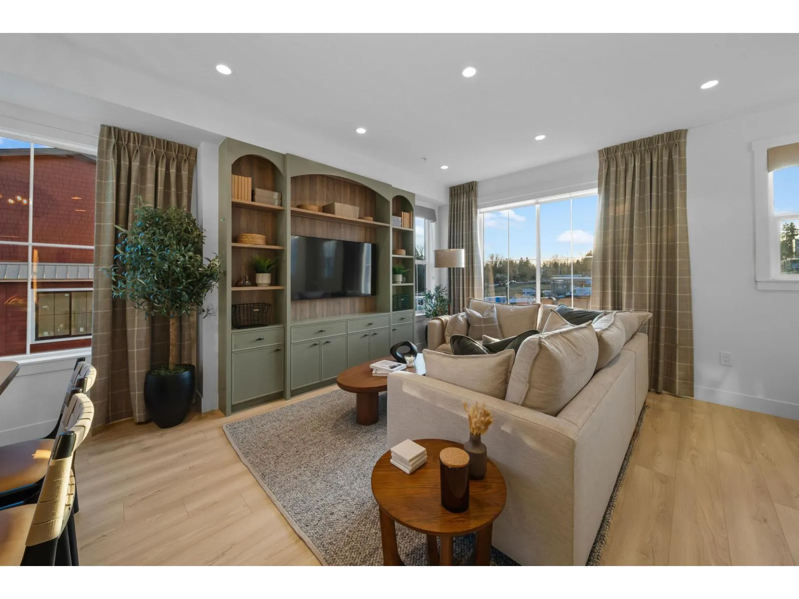MOVE-IN READY at LATIMER WALK by award-winning Zenterra Developments. This bright, modern 3-bedroom home features a stylish kitchen with a full KitchenAid appliance package, ideal for everyday living and entertaining. Enjoy laminate flooring throughout, air conditioning, forced-air gas heating, and hot water on demand for year-round comfort. This south/east/north-facing corner home backs onto a 5m greenbelt and includes a spacious fenced backyard. Additional features include a BBQ gas hookup, garburator, and built-in wood closet organizers. Only 5 homes remain. Show home open Saturday-Thursday, 12-5 PM. (id:27476)