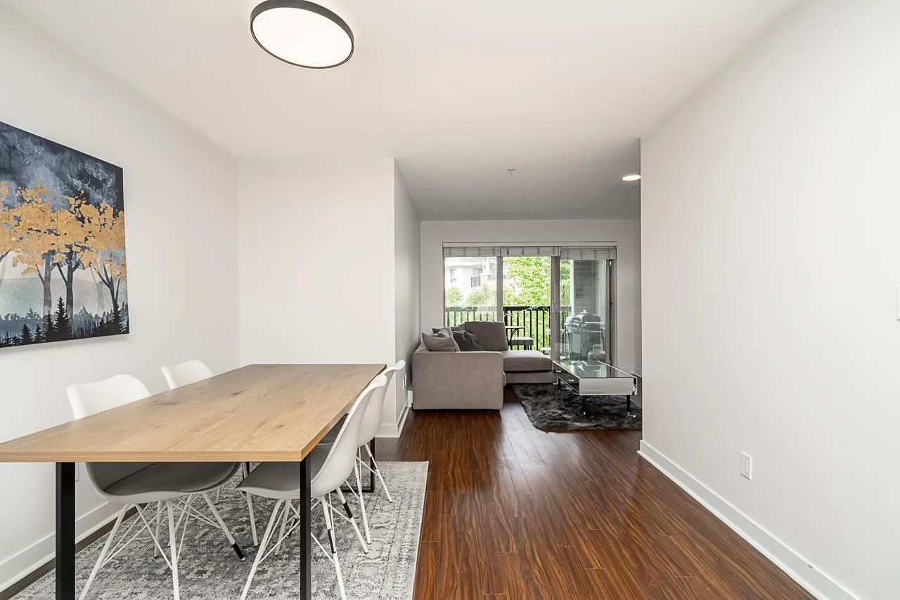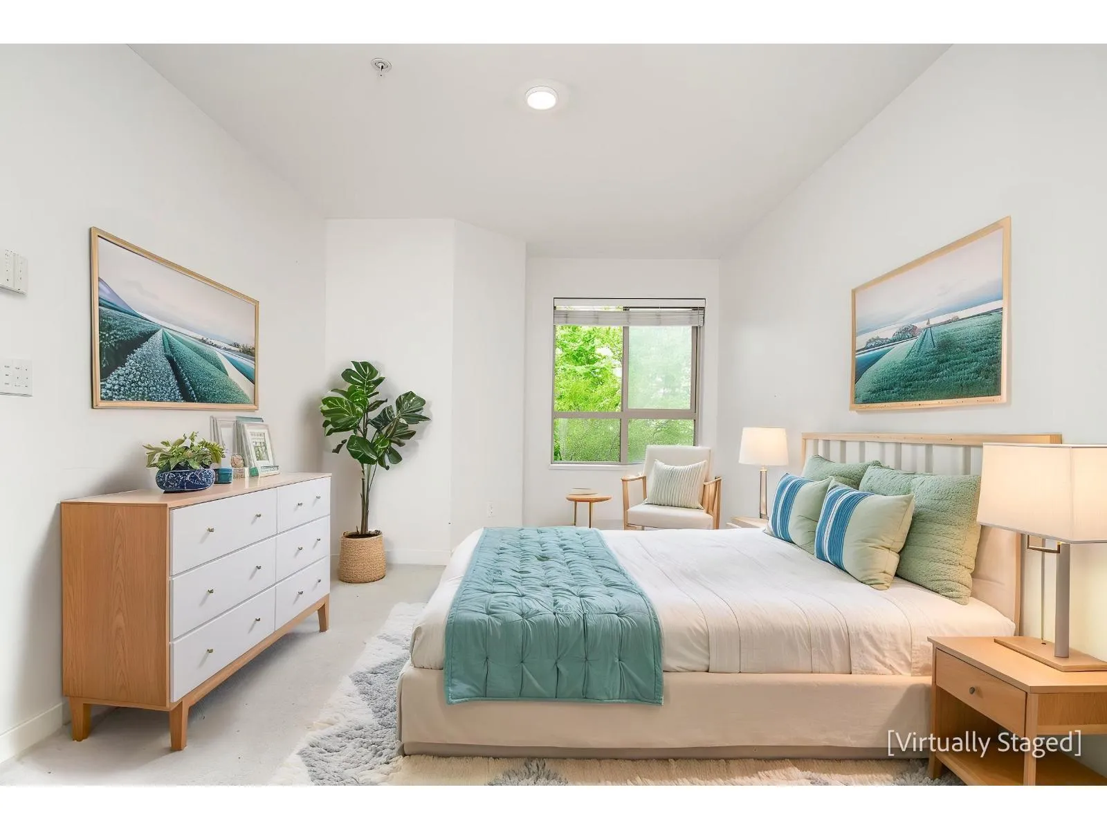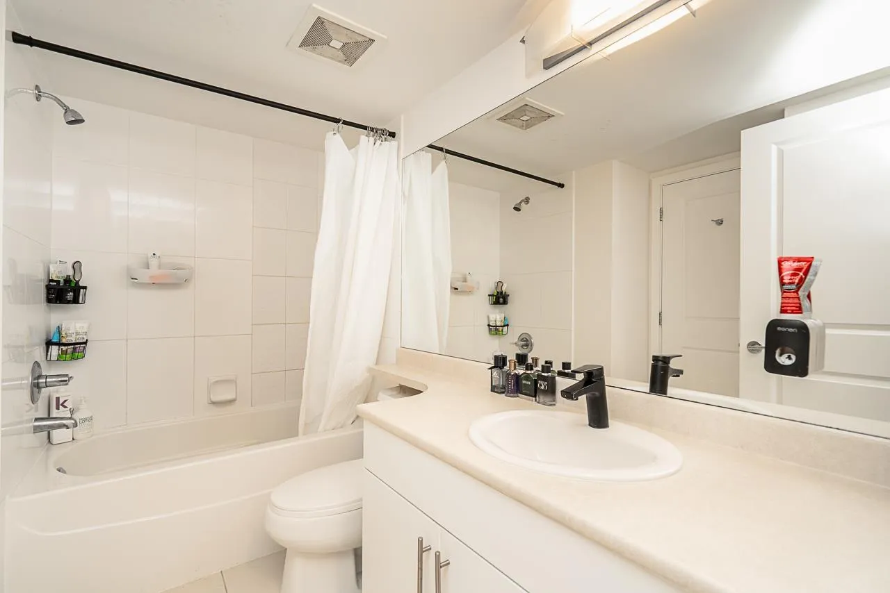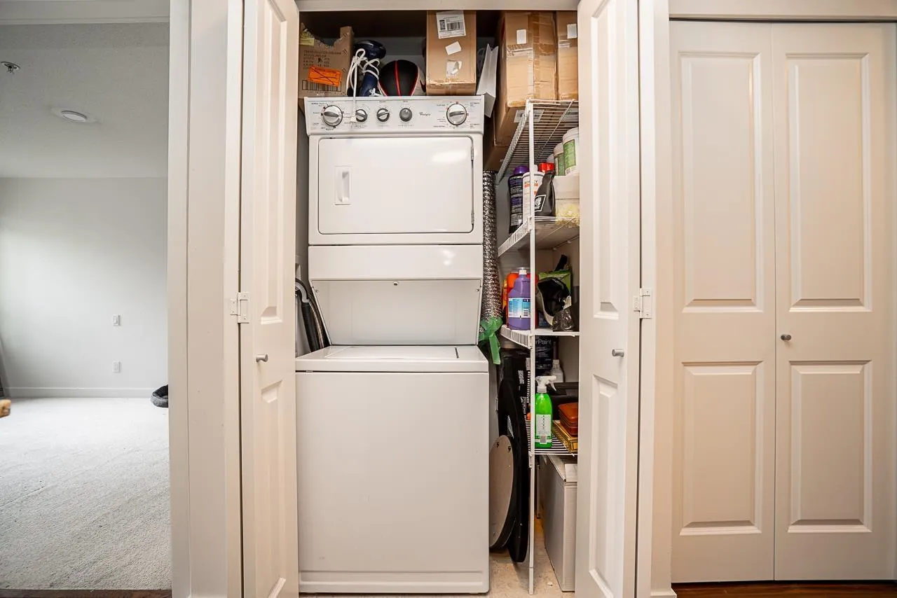 Discover this bright and spacious 1 bedroom + den condo in the heart of Walnut Grove. Offering over 700 sq ft of comfortable living, this well-laid-out home features laminate flooring throughout, a modern kitchen with granite countertops and stainless steel appliances, plus in-suite laundry tucked into its own closet. The Jack-and-Jill bathroom offers both convenience and flexibility, serving as a main bath and ensuite. Located in the secure and well-maintained Hawthorne building with fob and elevator access. Enjoy the unbeatable location-just a short walk to Carvolth Park & Ride, shops, restaurants, and more. With easy freeway access, this is a smart choice for commuters, first-time buyers, or investors alike. (id:27476)