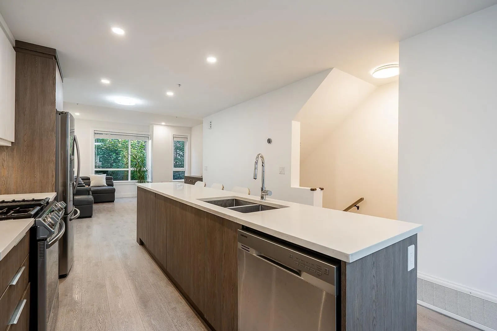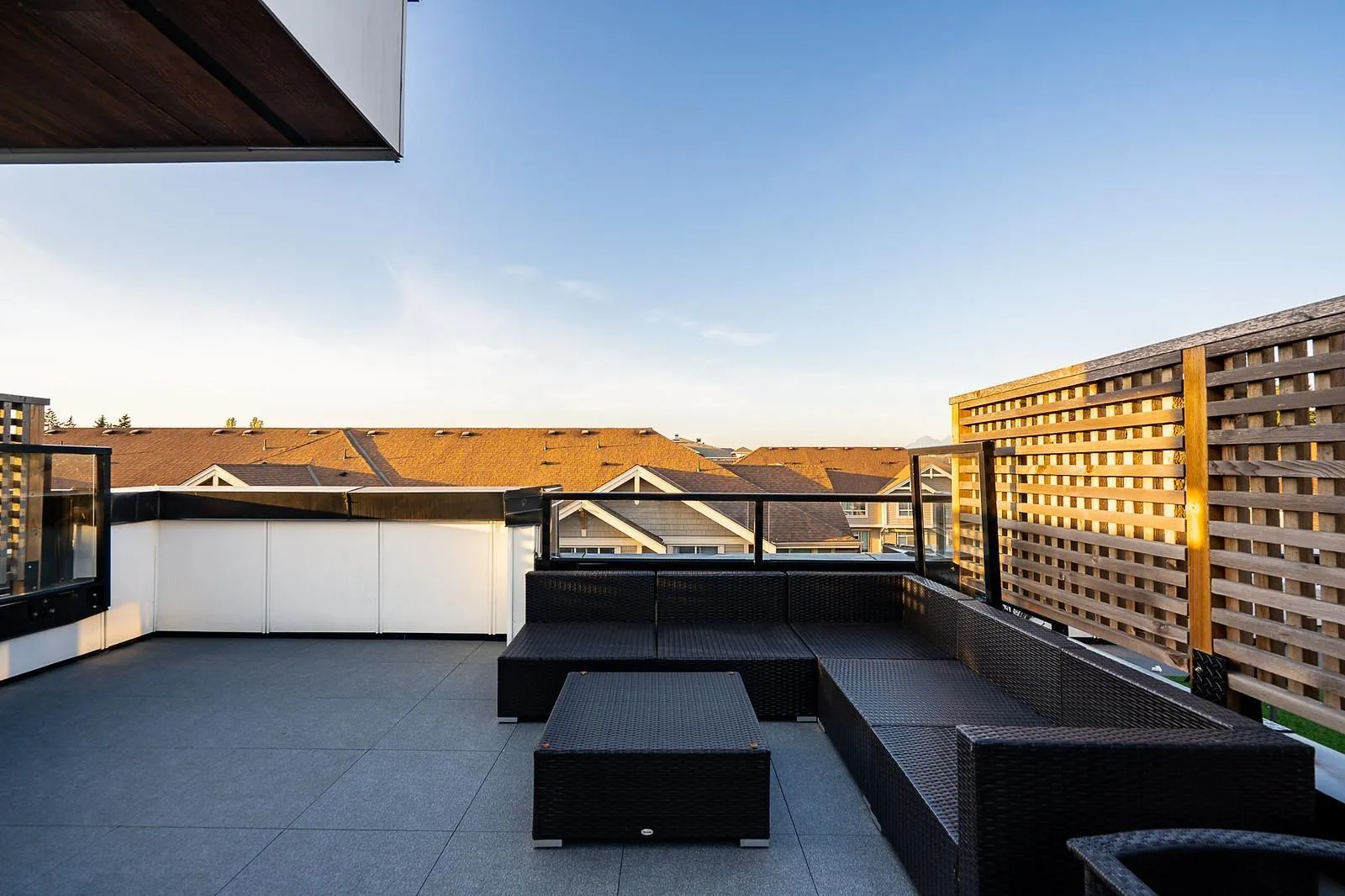 Must see! Mountain views, a massive rooftop patio, and no carpet throughout! This beautifully maintained 3-bedroom townhome feels very clean and shows like new. The rooftop patio offers a natural gas BBQ hookup and plenty of space to host family and friends. Inside, enjoy a stylish upgraded kitchen with a large island and seating for your family, an open and spacious living area, hardwood flooring, and central A/C for year-round comfort. EV READY Level 2 plug in the garage. Conveniently located just minutes from shopping, transit, and the future SkyTrain. Schedule your private showing. It is like new condition! (id:27476)