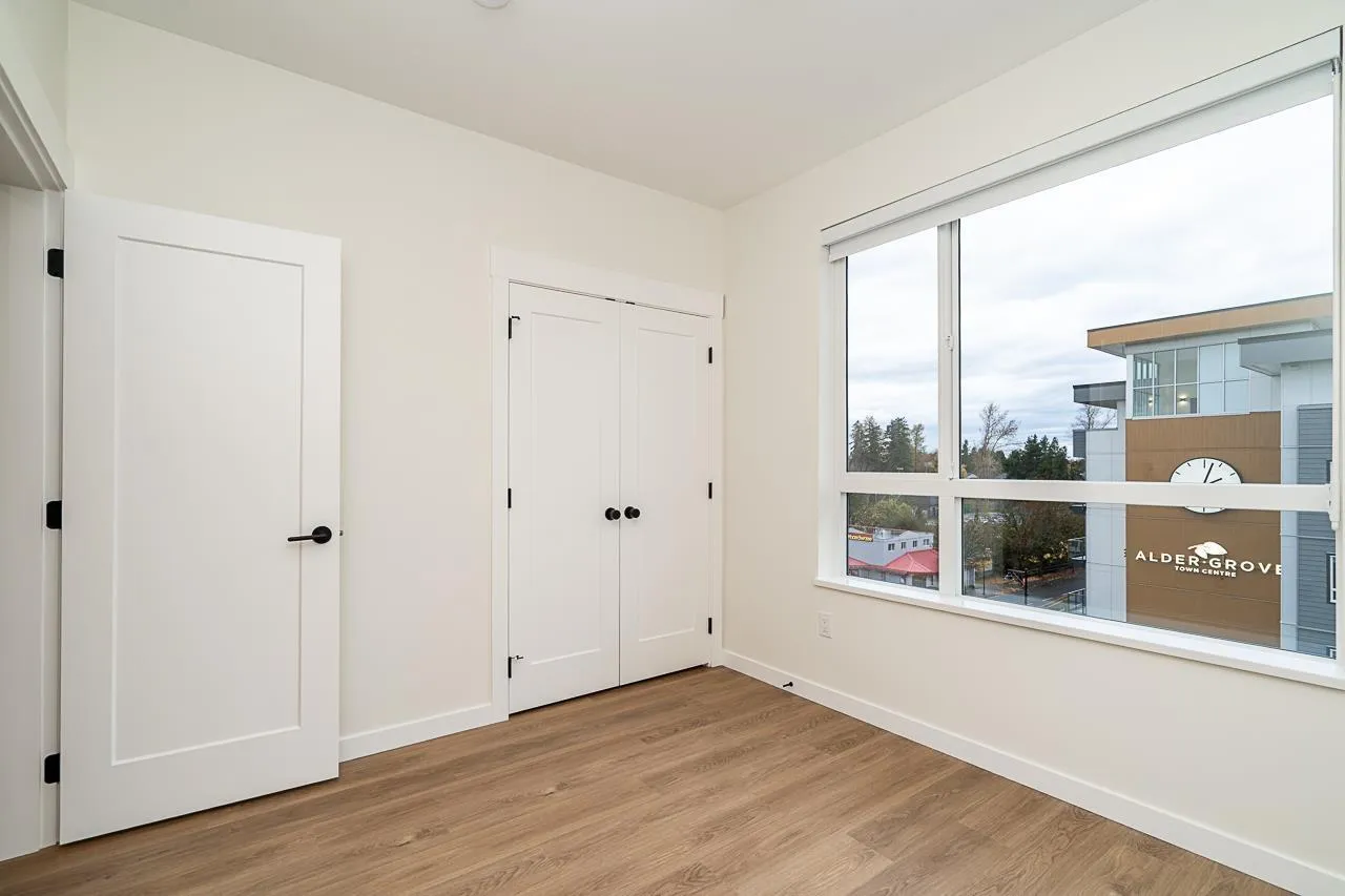 Warmest Regards,Welcome to Aldergrove Town Centre! Discover modern living at its finest in this stunning 3-bedroom, 2-bathroom condo offering 978 sq.ft. of beautifully designed space. This top-floor home features an open-concept layout with 8'10" ceilings, creating an airy and spacious feel throughout. The contemporary kitchen is a true showstopper-featuring sleek cabinetry, quartz countertops, a stylish tile backsplash, and stainless steel appliances. The primary bedroom includes a walk-in closet and a spa-inspired ensuite with a double vanity and modern black fixtures. Two additional bedrooms provide flexibility for guests, a home office, or growing families. Enjoy the convenience of 2 side-by-side parking stalls and 2 lockers!! Located in the heart of Aldergrove (id:27476)