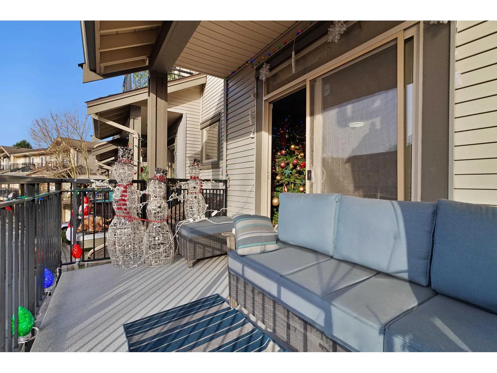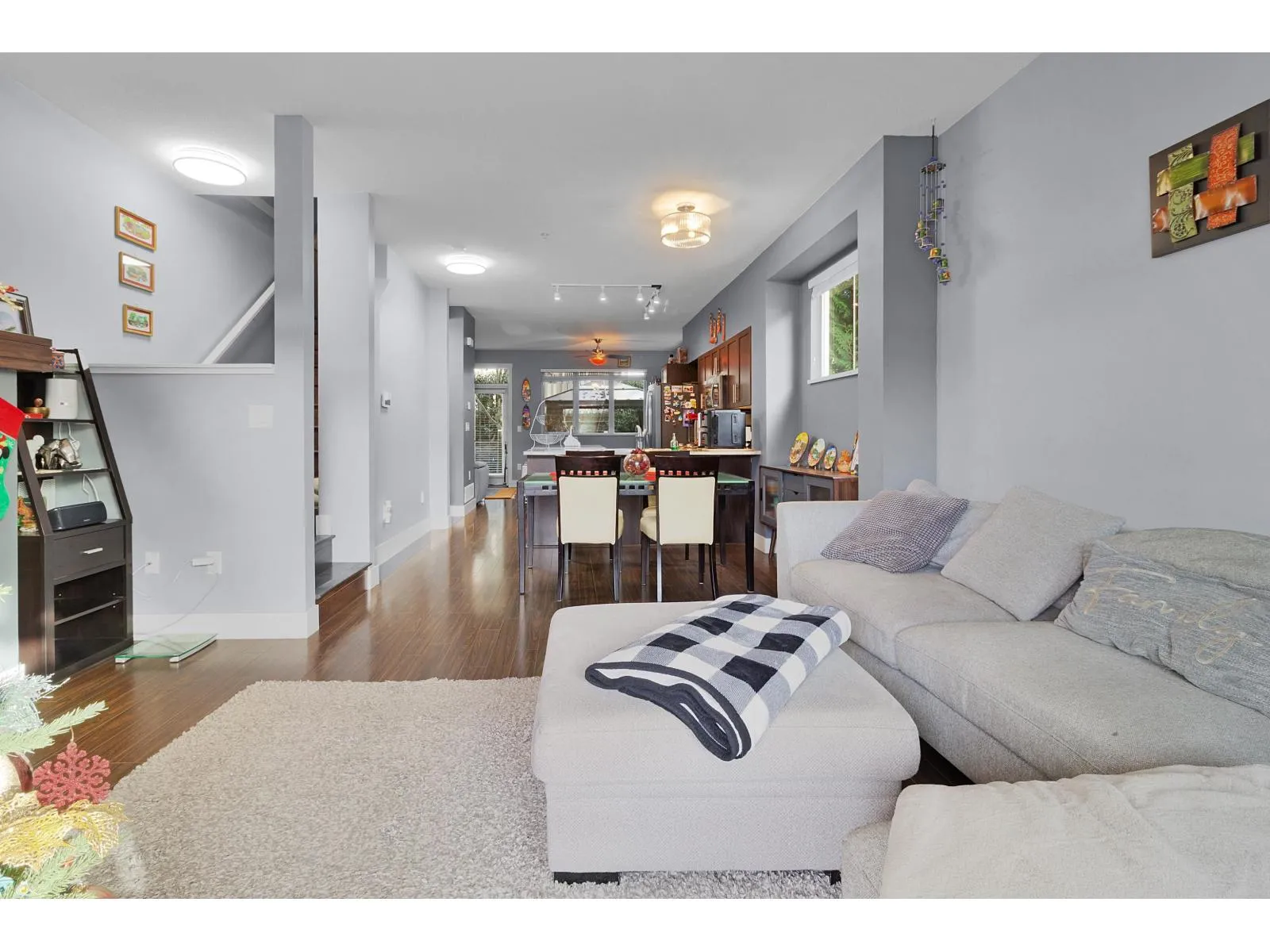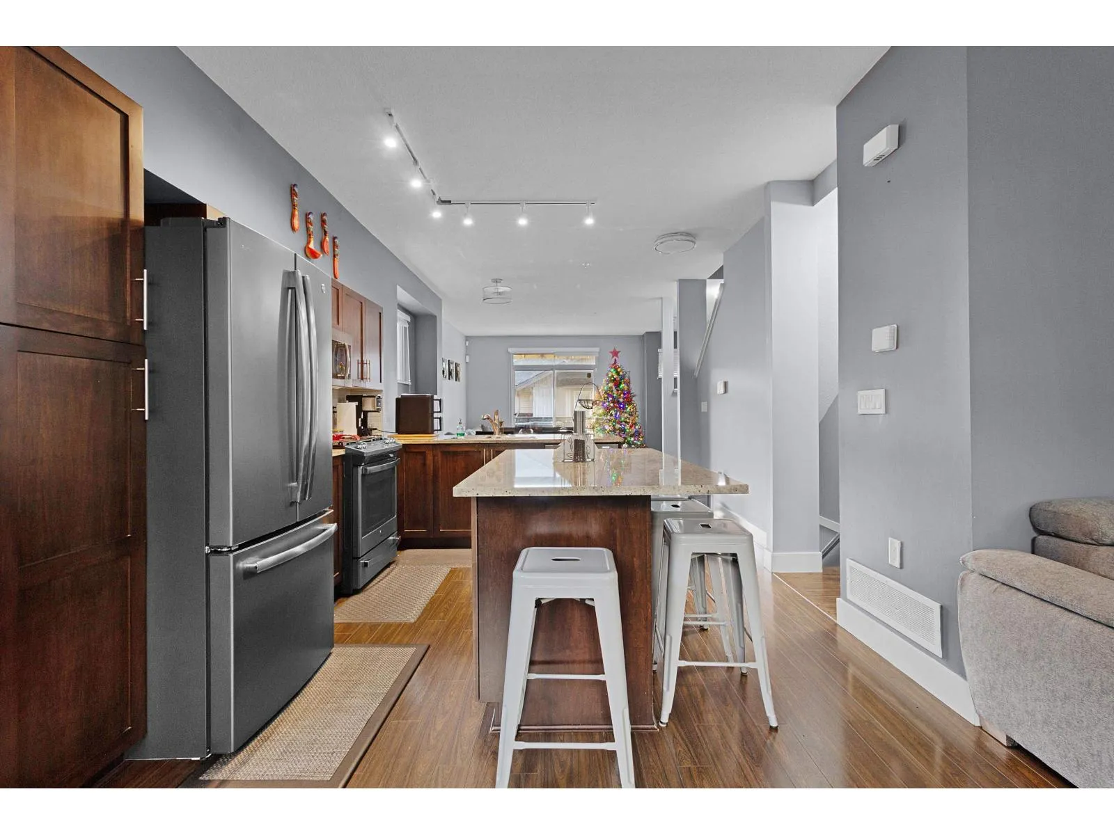 Beautifully maintained 3-bed townhome in the sought-after Sunpointe community of Willoughby Heights! Inside, enjoy a bright, functional layout with a spacious living area and a gourmet kitchen featuring SS appliances and a kitchen island. The bedrooms are well-sized, offering comfort and versatility for families. The patio/deck off the living room and master bedroom was previously updated with epoxy. Updates include fresh paint touch-ups, new closet doors, enhanced lighting, new blinds, and laminate flooring on both staircases and the upper hallway, replacing carpet. The complex features a large children's play area and proximity to walking trail alongside the community. Minutes to shops, schools, recreation, and transit--an ideal central and highly convenient location within Langley! OPEN HOUSE - JAN 10th 2-4PM (id:27476)