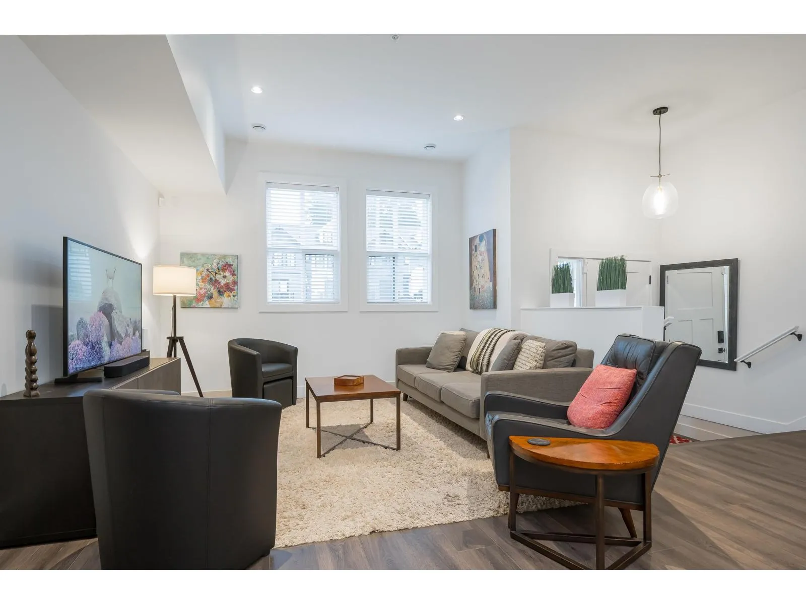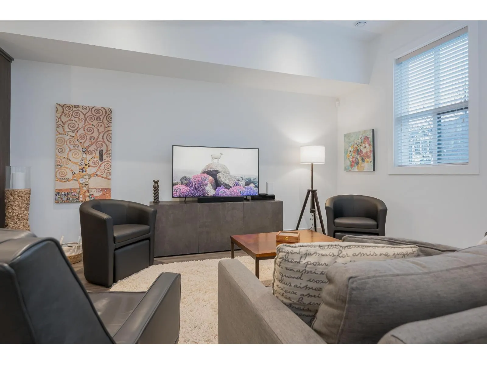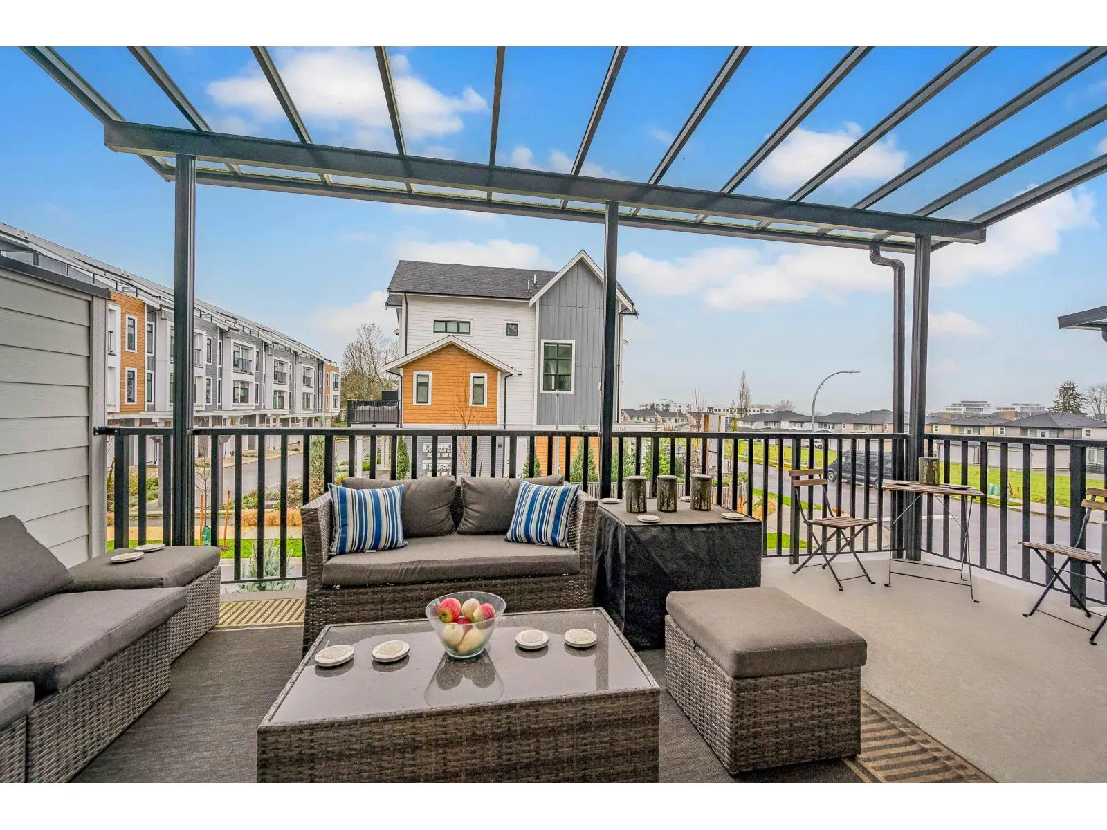 Exceptionally built END-UNIT ROWHOME by North Arc Properties with NO STRATA FEES. This spacious & meticulously maintained home shows like new and offers extensive upgrades throughout. Enjoy A/C, a chef-inspired kitchen w/ wine fridge and Fisher & Paykel appliances complemented by high-end finishes throughout. The professionally finished basement is ideal for guests or entertaining, showcasing a custom bar w/sink, wine storage, cabinetry & bar fridge, plus a developer-installed soundproofed bedroom. Well-sized bedrooms with potential to add 5th bedroom upstairs. Enjoy year-round outdoor living on the covered deck with gas BBQ hookup and custom awning. Rare 4-vehicle parking with double garage (epoxy floors) plus parking pad. A standout home offering privacy, space and luxury without strata. (id:27476)