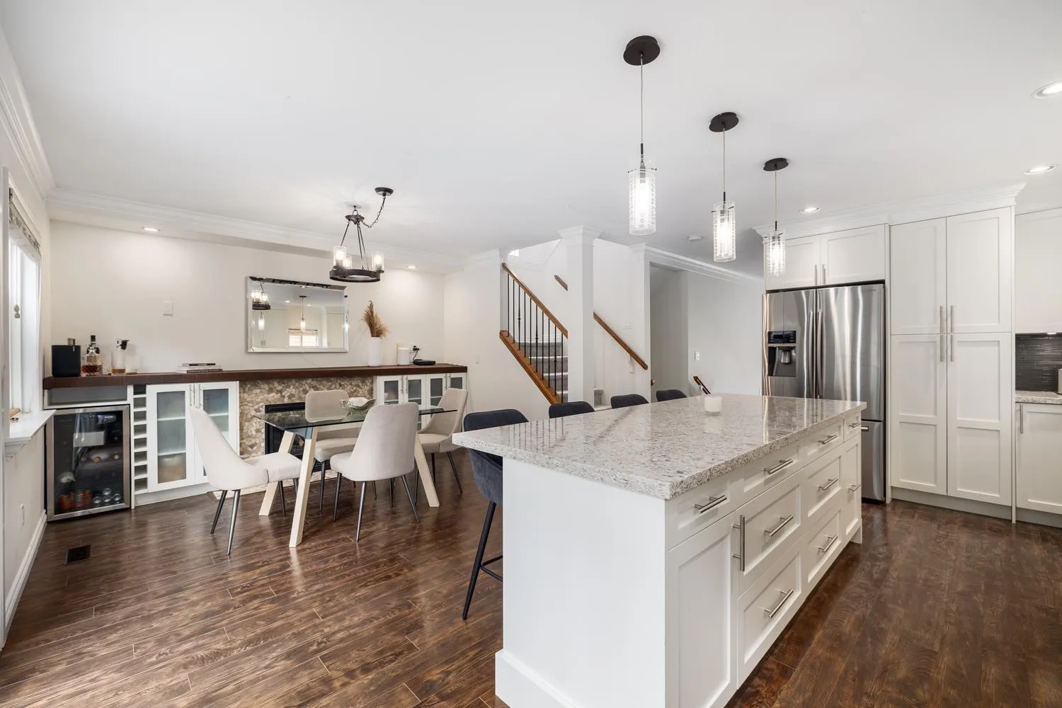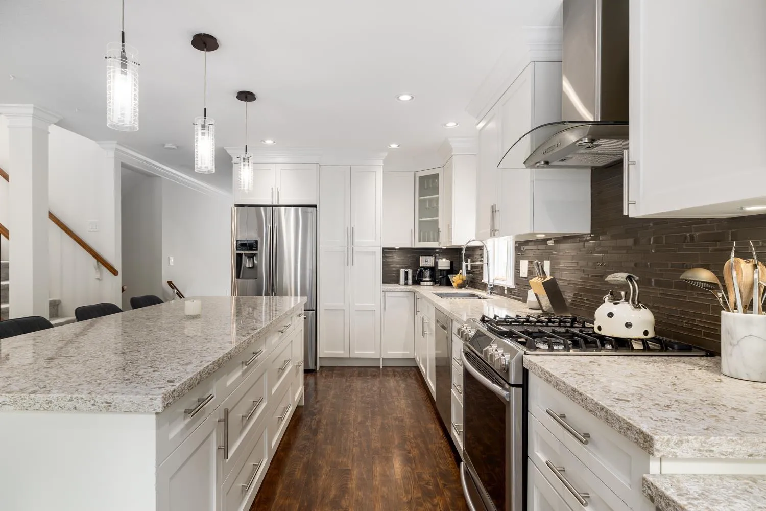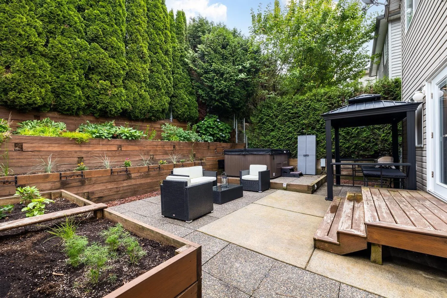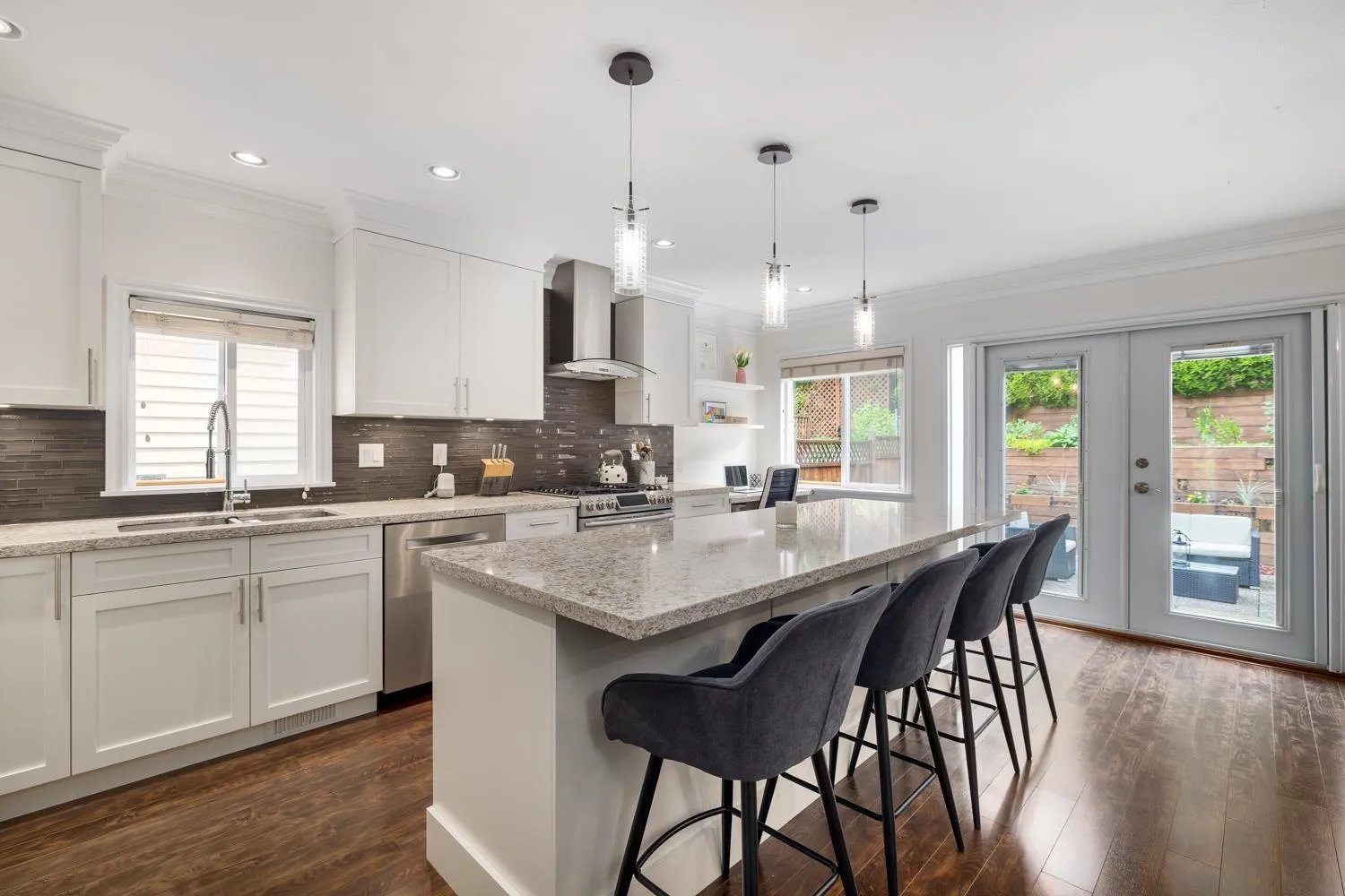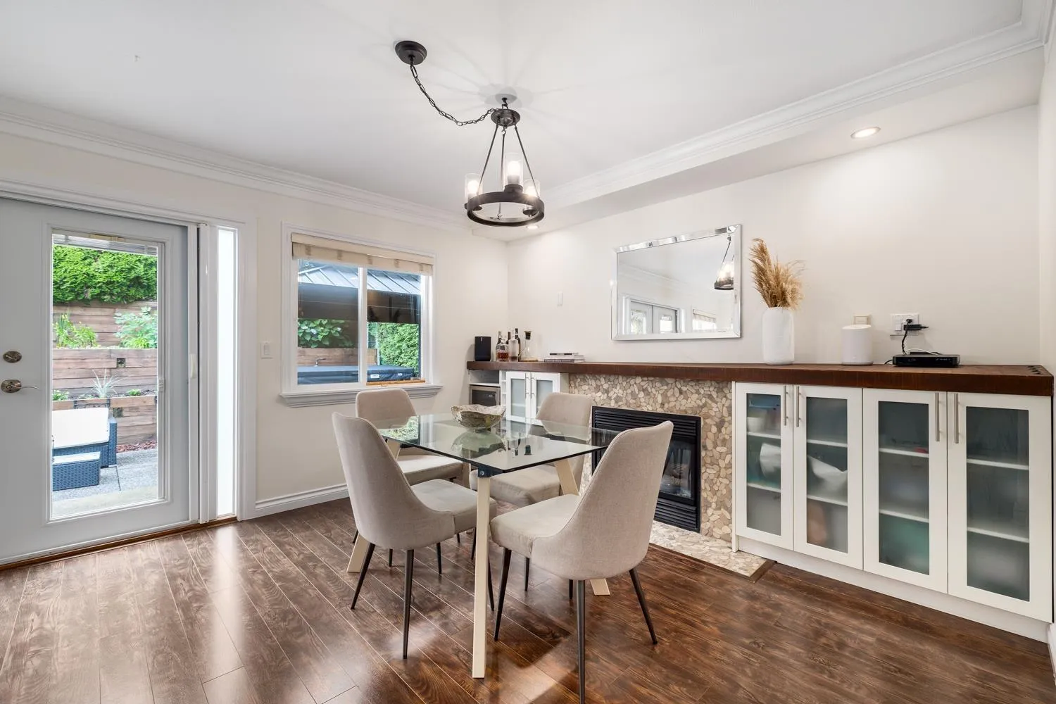 Stunning 4 bed/3.5bath detached home situated in the sought after quiet Hyland Creek neighbourhood! This beautiful two level home w/ basement presents a formal living room on the main floor that leads you into your bright spacious gourmet kitchen w/gas range stove and oversized island and dining area. The French doors lead you into your gorgeous private yard w/tiered hedges creating a perfect spot for entertaining and complete with a hot tub. Upper level boasts 3 generous sized bedrooms w/2 bathrooms featuring a 4 pc ensuite. Lower level can be turned into a private office or a rec/movie room. Large laundry can easily be converted back to garage. Updated with new A/C, new roof, new furnace, new hot water tank, newly painted, new carpet throughout. (id:27476)