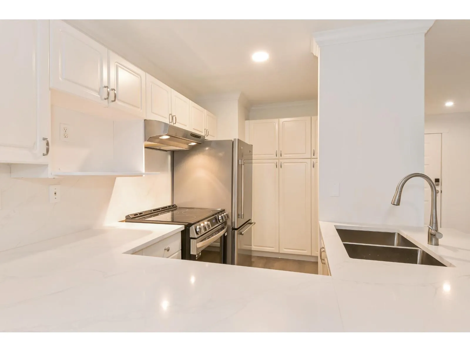 Eaglecrest! Nestled in Langley's desirable Murrayville, this spacious 1,187 sq. ft. home features two bedrooms and a den with two full washrooms. Bedrooms are thoughtfully situated on opposite ends to ensure maximum privacy. The primary suite is a true retreat, boasting a refreshed ensuite with a new shower. This bright, east-facing unit shines with recent upgrades, including sleek new flooring, durable quartz countertops, new washer/dryer and range. The functional layout is complemented by in-suite laundry, a cozy gas fireplace, a private storage locker, and two side-by-side parking stalls. Enjoy premium amenities including a library, gym and clubhouse. Experience an exceptional lifestyle within walking distance to stores, schools, transit and WC Blair Pool. (id:27476)