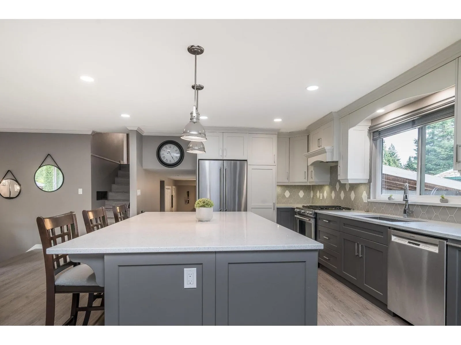 Welcome to your new home on one of the best streets in Langley City with Hunter Park out your front door. This lovely 3 level split home boasts of a beautiful open concept kitchen which is a perfect gathering space with a huge quartz island and a great room with a cozy gas fireplace. Entertain in style while preparing meals with quartz counter tops, a stunning modern backsplash, and all stainless steel appliances include a fabulous 5 burner gas stove. Nicely maintained with 3 good size bedrooms up. Enjoy movie nights in the big family room with a gas fireplace. The backyard is fully fenced with 2 patios to enjoy morning coffee or an evening beverage. Bonus 1 storage shed. (id:27476)