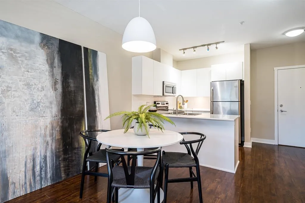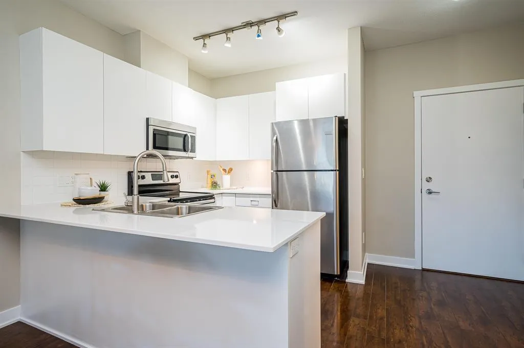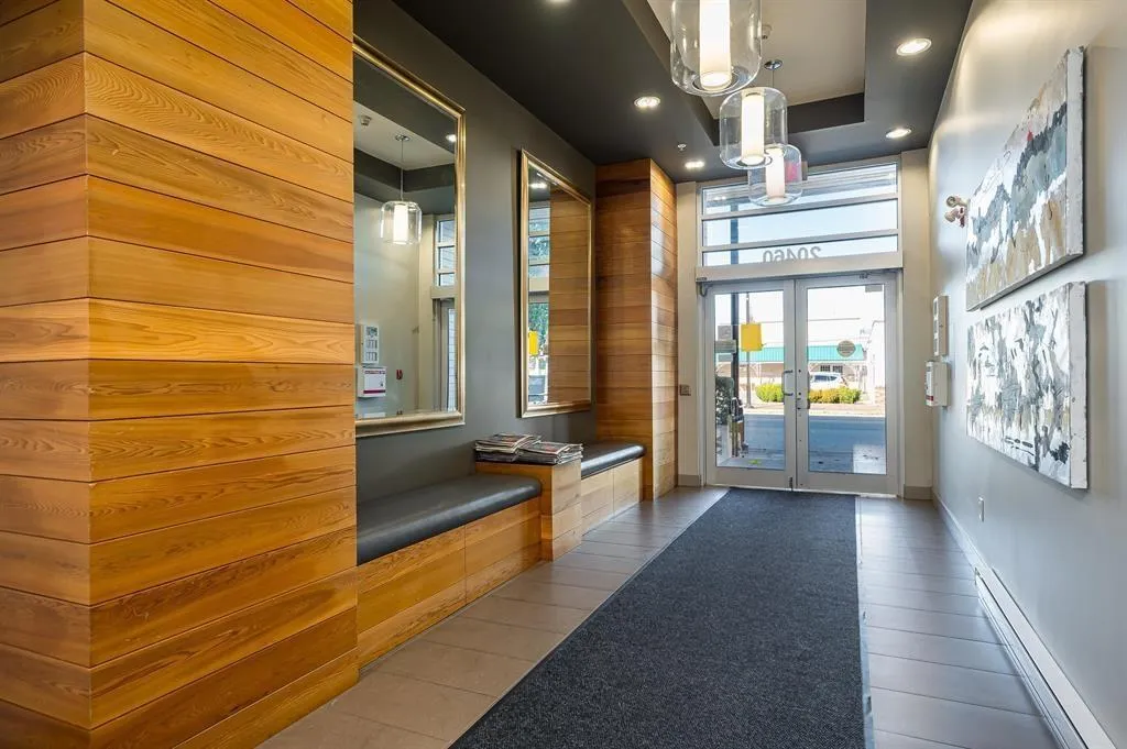 Calling all investors and first time home buyers! Located in the heart of charming Langley City, this 1 bed 1 bath home offers over 600 sq.ft of open concept interior living space. Gourmet kitchen featuring quartz countertops, s/s appliances, laminate flooring, large primary bedroom and in-suite laundry. 14 year old building, well maintained with brand new plumbing and updated elevator. Amenities include a gym and common area with entertainment center and kitchen. This unit comes with 1 secure parking spot and 1 storage locker. Conveniently located just steps away from Douglas Park, Langley City Hall, Langley Shopping Mall, Cascades Casino and a variety of restaurants. Call today! (id:27476)