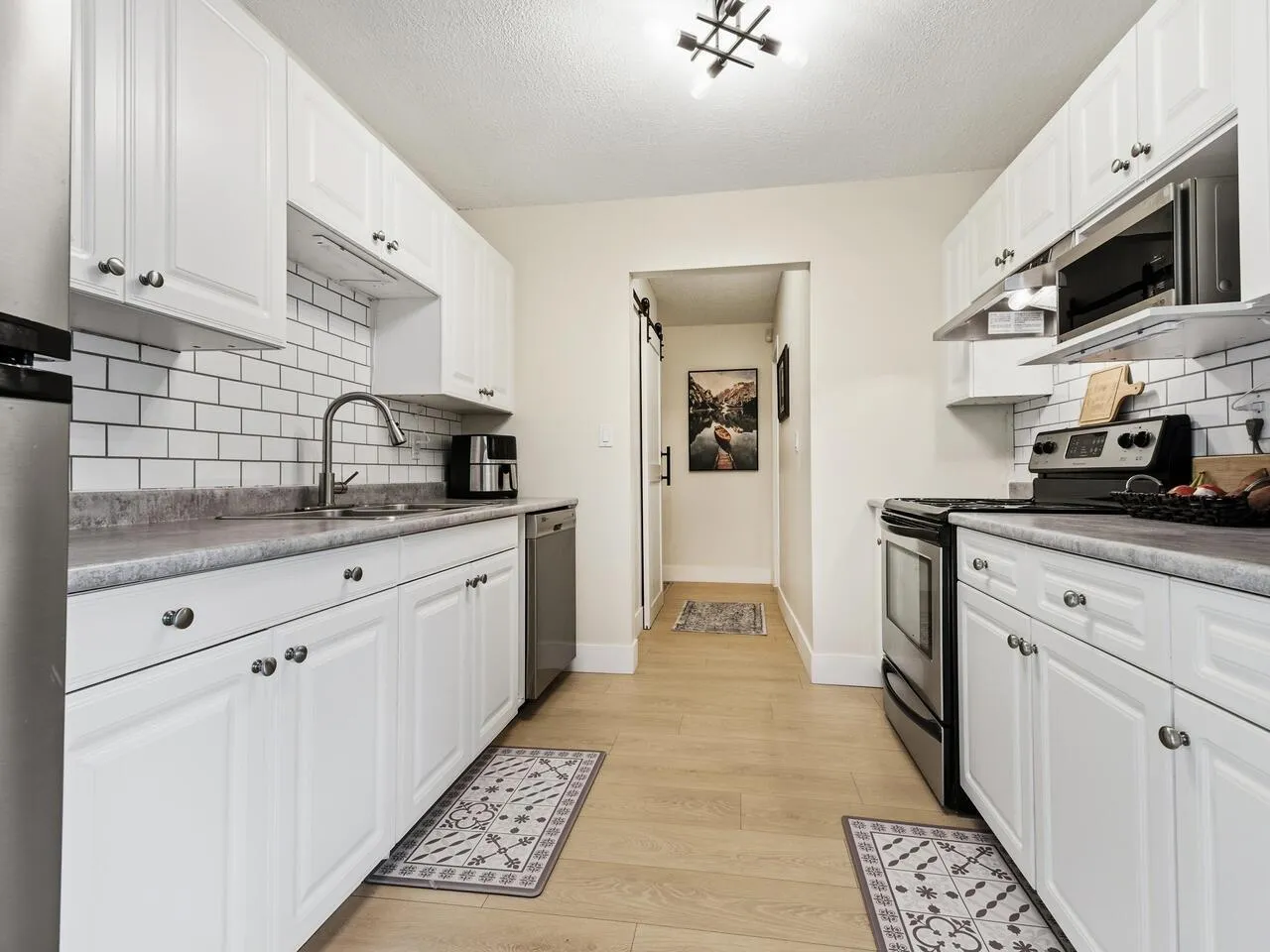 Beautiful and cozy 2-bedroom plus den, 2-bathroom rancher-perfect for family living. This desirable corner unit is ideally located within the complex and offers excellent privacy. Recent upgrades include new blond wide-plank flooring throughout, fresh paint, fully renovated bathrooms, and a new tiled kitchen backsplash, giving the home a modern and stylish feel. Step outside to your own private, fully fenced backyard complete with a storage shed with power, ideal for hobbies, storage, or a workshop. The home includes a single carport with additional parking available. Conveniently located directly across from an elementary school and on a bus route, this home offers comfort, privacy, and everyday convenience. Schedule your private showing today! Open House: Saturday, Feb 14th, 2-4 PM (id:27476)