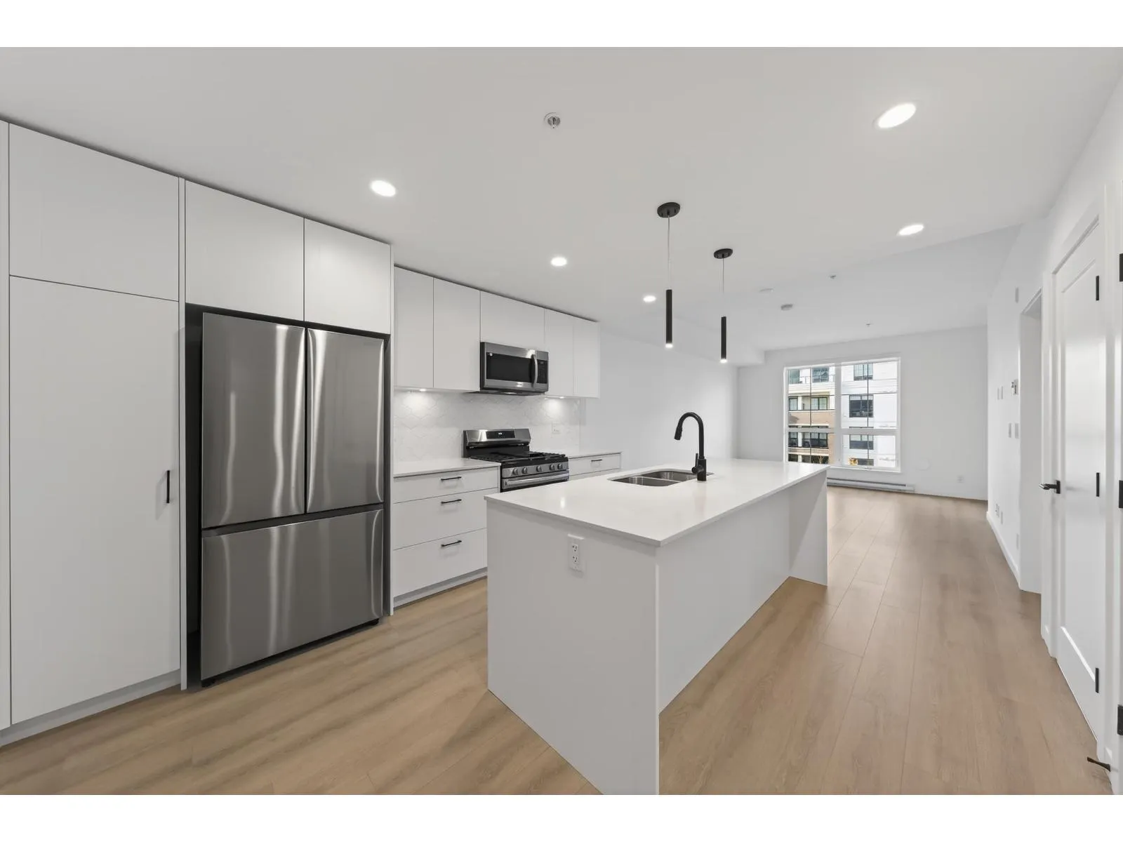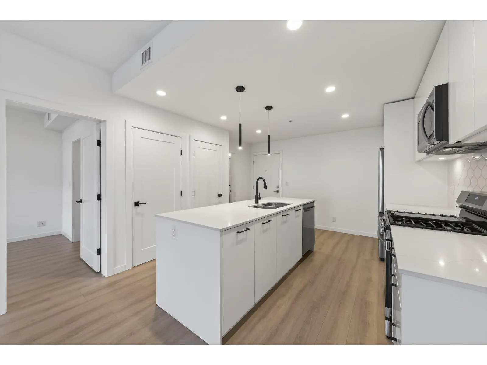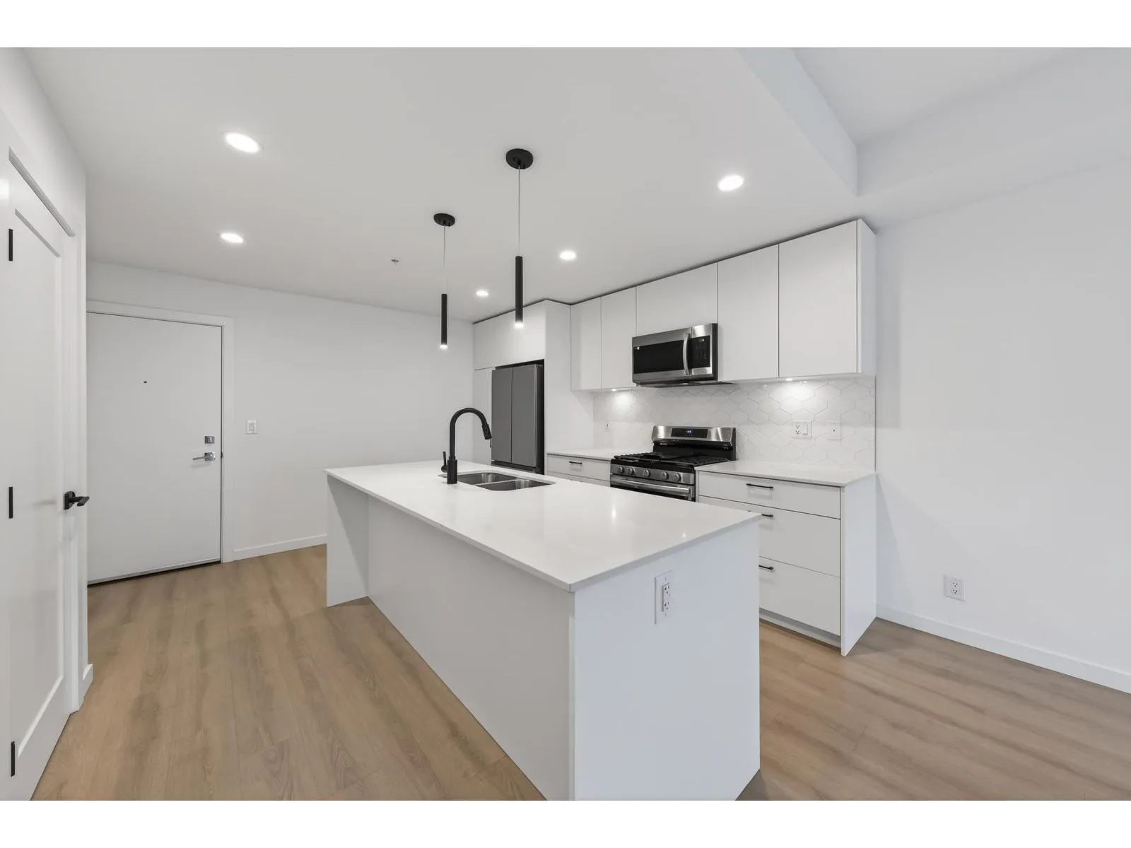 Welcome to Latimer Village, one of Willoughby's most desirable neighborhoods! This bright and airy 1-bedroom, 1-bathroom home offers 669 SQFT of open-concept living, flooded with natural light thanks to large windows and stylish laminate flooring. The sleek kitchen features stainless steel appliances, a gas cooktop, and a generous island perfect for cooking and entertaining. The spacious bedroom comes with an oversized walk-in closet to keep things organized. Additional perks include one parking spot with EV rough-in, a storage locker, and the comfort of nearly-new construction. Enjoy being just steps from quaint shops, cozy cafés, scenic trails, and quick access to Hwy 1. (id:27476)