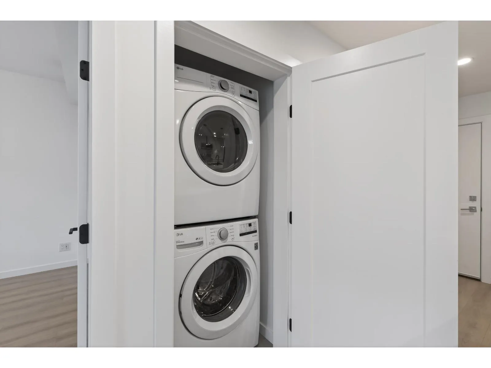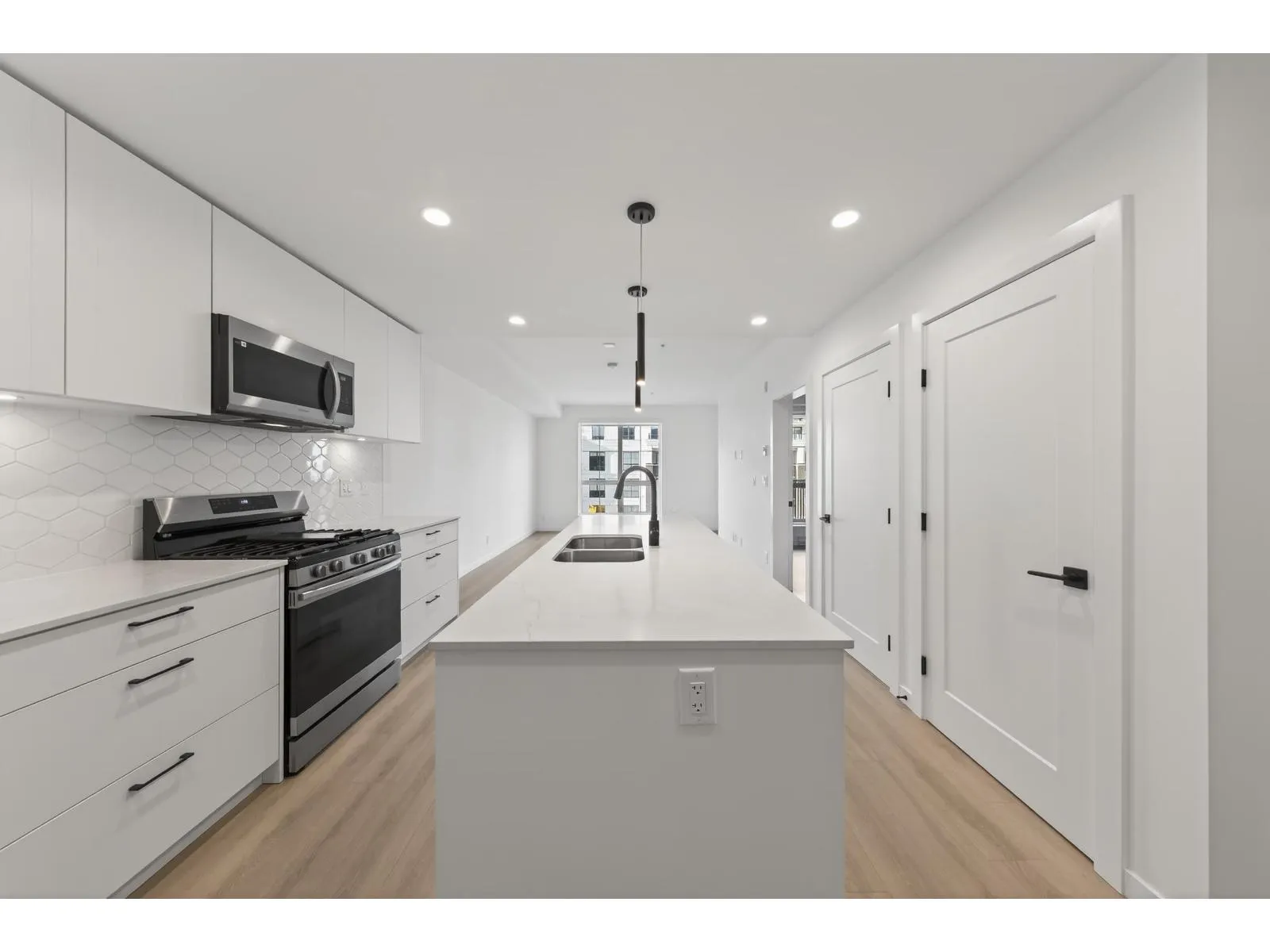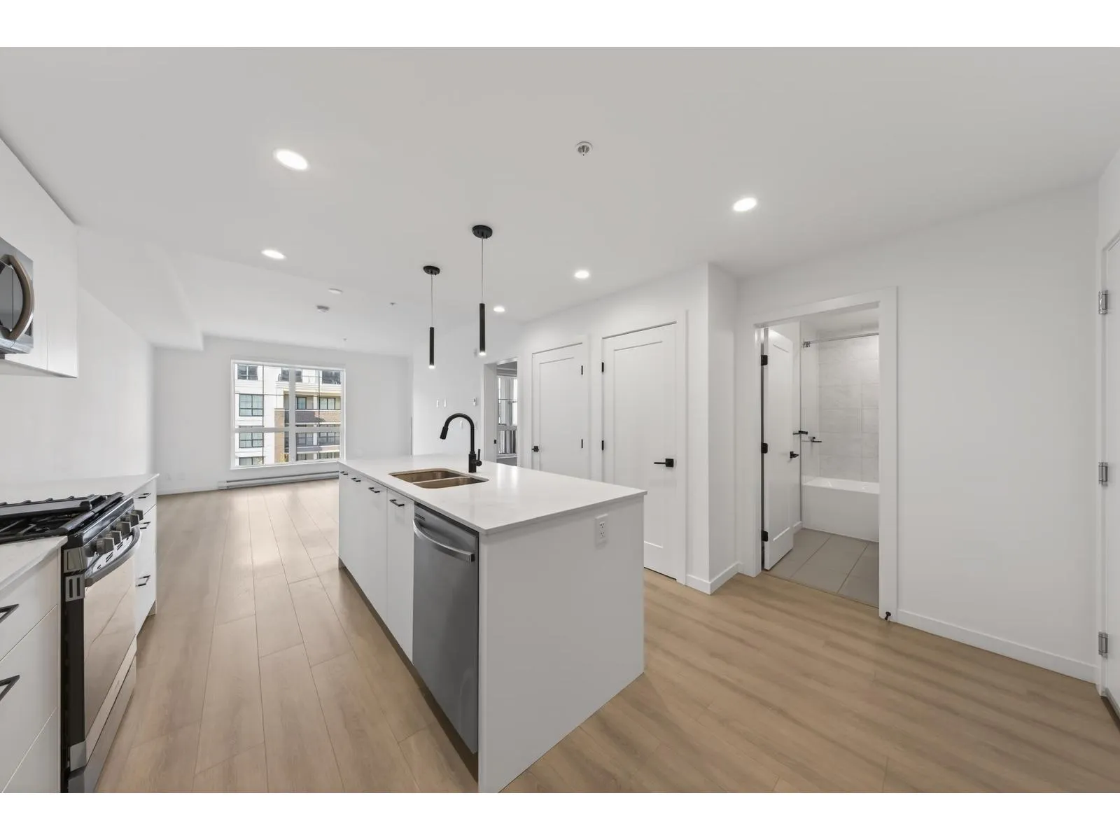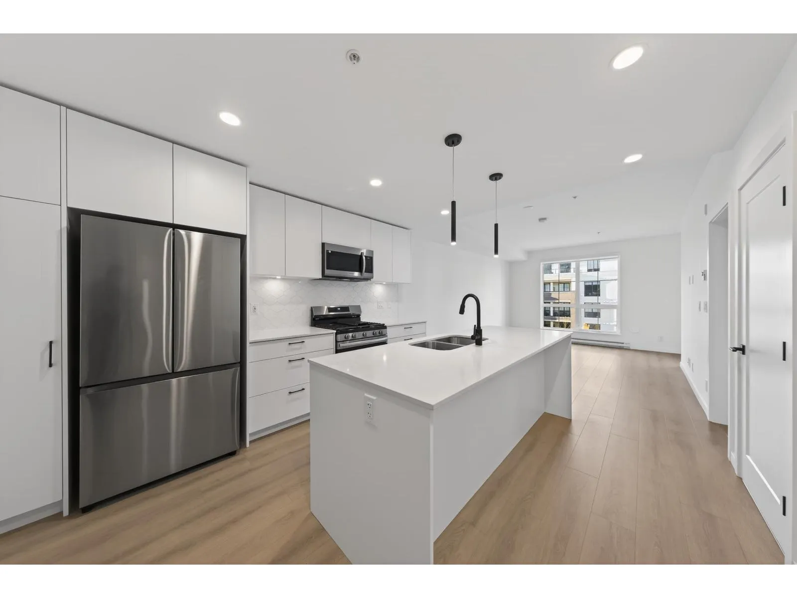 Welcome to Latimer Village, one of Willoughby's most desirable neighborhoods! This bright and airy 1-bedroom, 1-bathroom home offers 669 SQFT of open-concept living, flooded with natural light thanks to large windows and stylish laminate flooring. The sleek kitchen features stainless steel appliances, a gas cooktop, and a generous island perfect for cooking and entertaining. The spacious bedroom comes with an oversized walk-in closet to keep things organized. Additional perks include one parking spot with EV rough-in, a storage locker, and the comfort of nearly-new construction. Enjoy being just steps from quaint shops, cozy cafés, scenic trails, and quick access to Hwy 1. (id:27476)