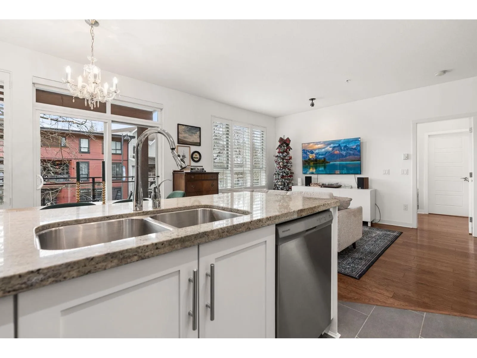 Fantastic opportunity to live in the Fort Langley community & enjoy a lifestyle that feels like you're on vacation! Executive 2 bdrm, 2 bath corner unit, filled with south facing sunlight! Spacious open concept living at its best! Relax and entertain on your south facing covered deck. Features include a kitchen w/granite counters & S/S appliances with a gas stove. Primary with walk in closet and custom organizers and ensuite with double sink & heated tile floors. Updated laminate flooring! In suite storage, 2 underground parking stalls, secure bike storage, fitness room & amenity room. Steps away from the many offerings of Fort Langley - coffee shops, restaurants, shops, walking trails, rowing facilities & much more! OPEN HOUSE SUN Jan 4, 1-3pm (id:27476)