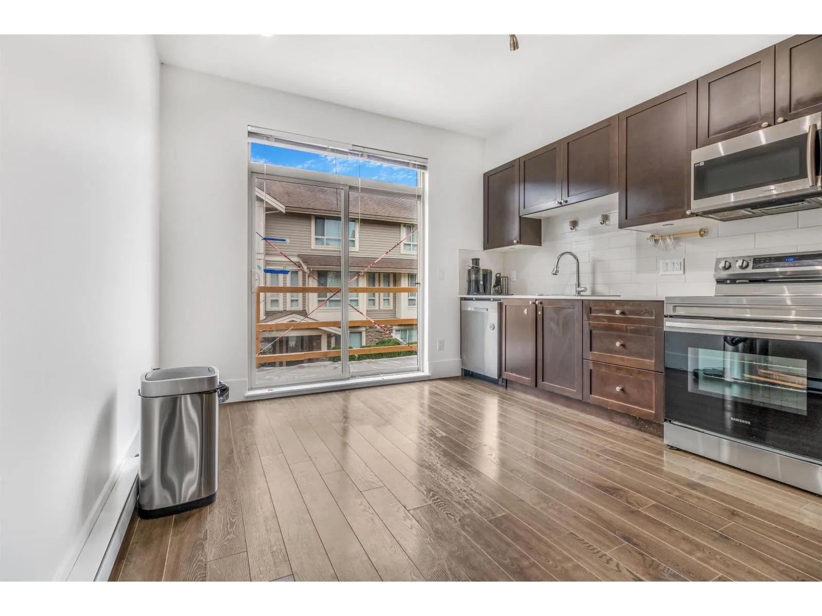 A sought-after address in the vibrant heart of Langley City! This home stands out as the lowest-priced residence in the neighbourhood-an exceptional opportunity for buyers seeking style and value. Thoughtfully updated with new flooring, lighting, fresh paint, and nearly all new smart appliances plus multiple smart thermostats, it blends comfort with modern convenience. The layout offers well-defined spaces between kitchen, dining, and living areas, ideal for entertaining or everyday living. Upstairs, the grand primary suite features a spacious double closet rarely seen today. With a private balcony, two parking stalls, and a location steps from the future SkyTrain, mall, schools, parks, and directly across Montessori Daycare. (id:27476)