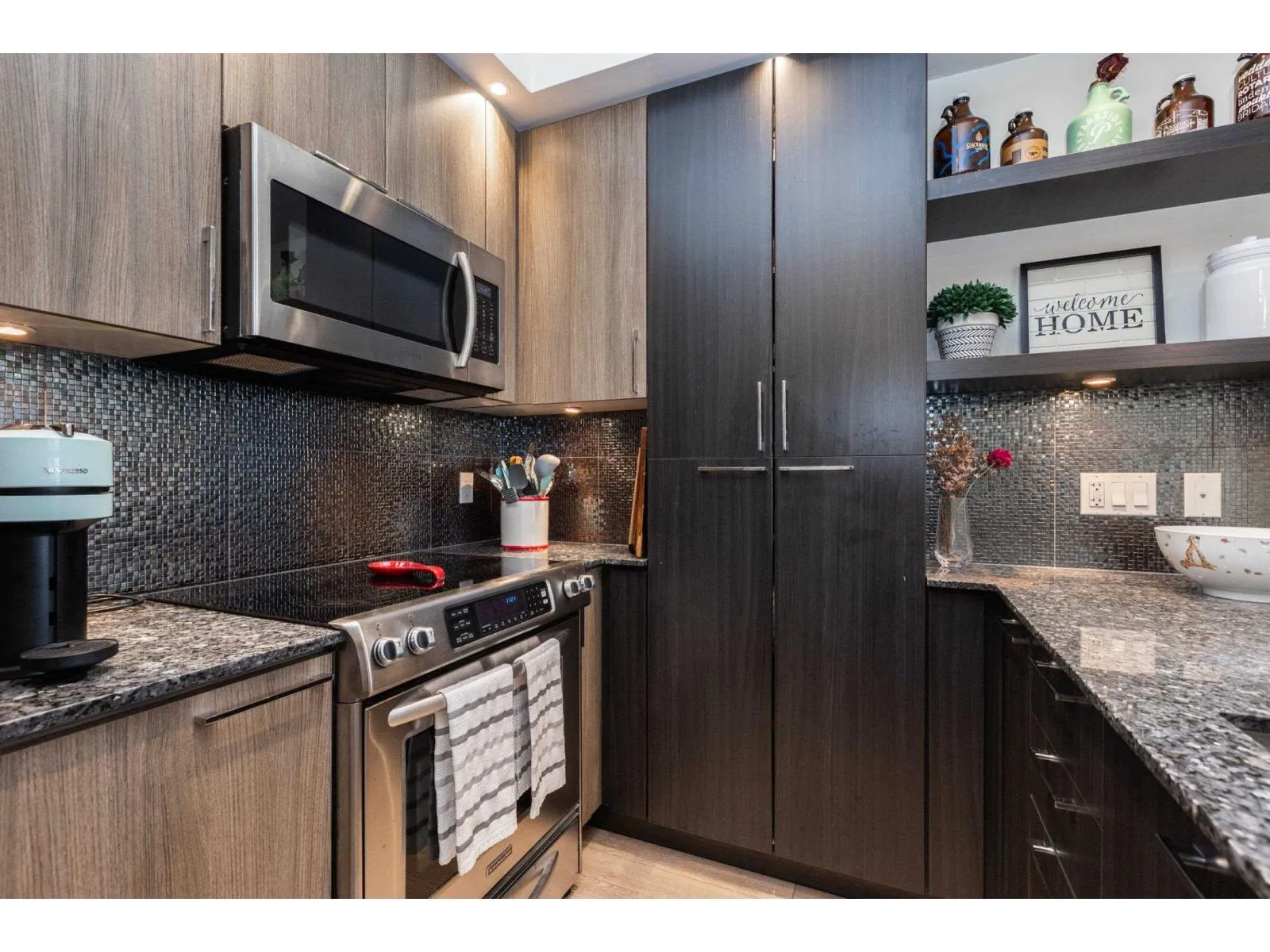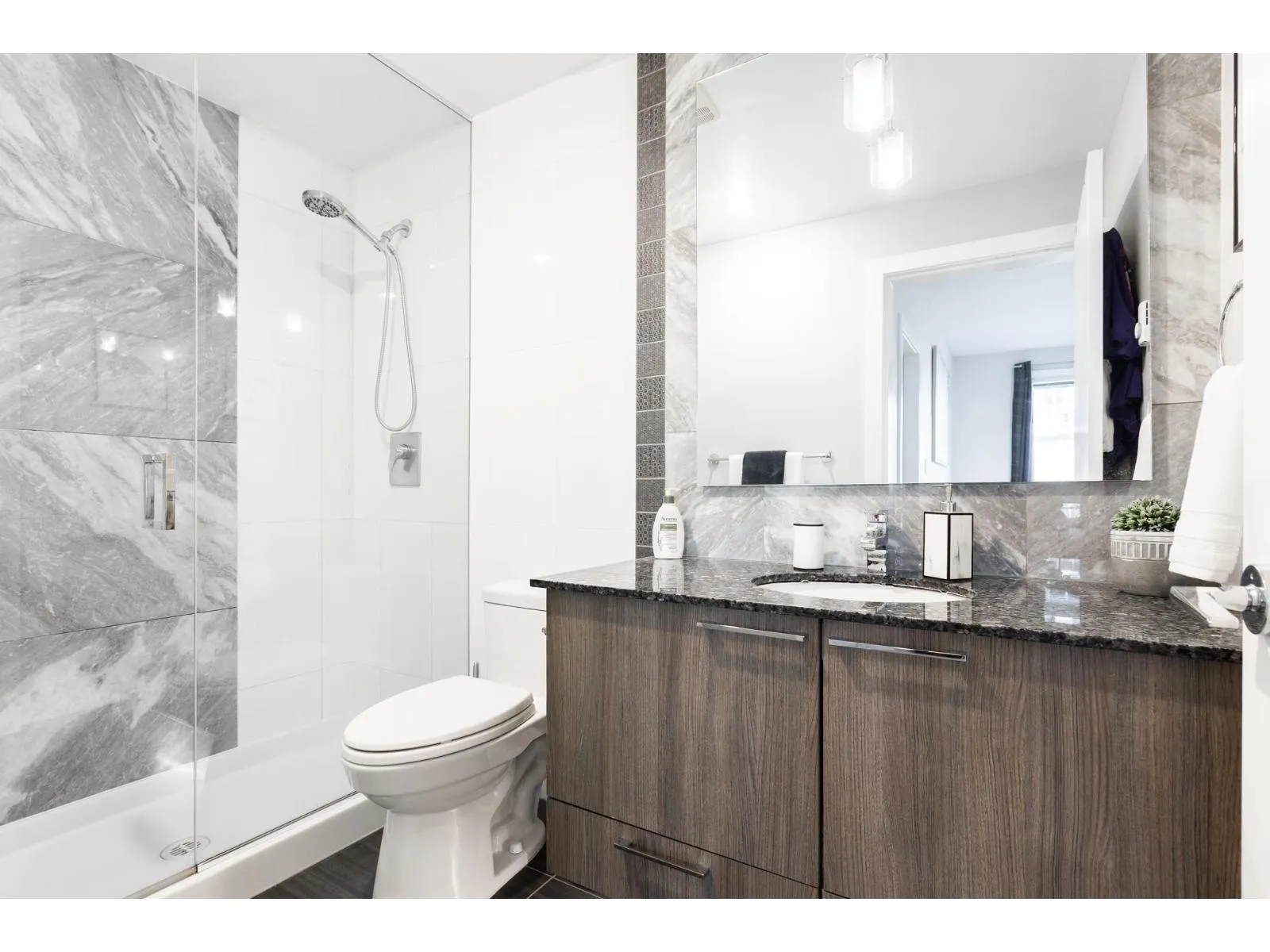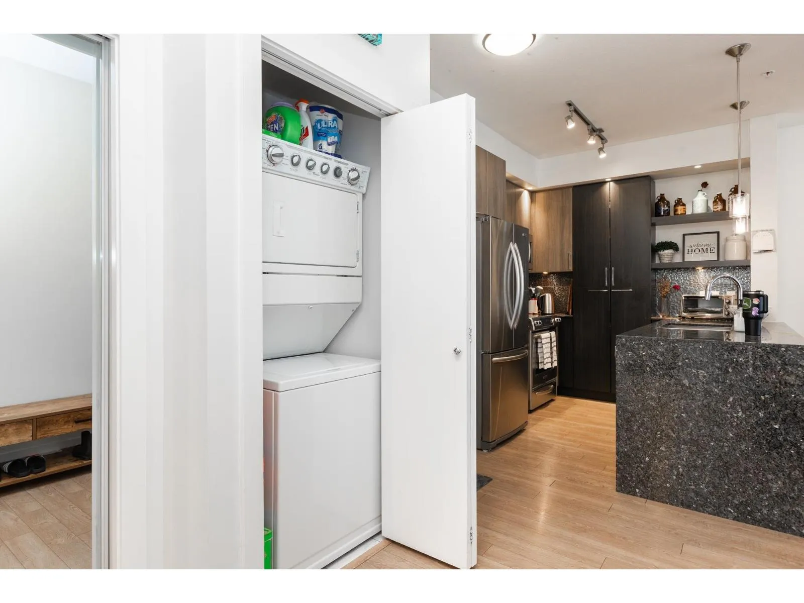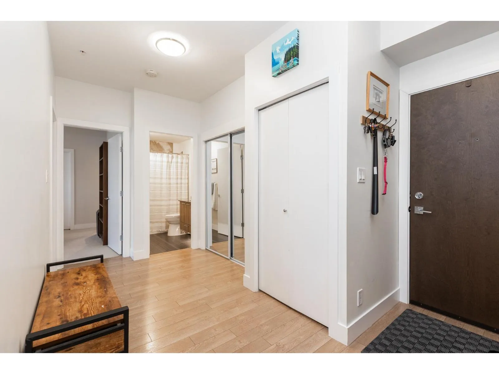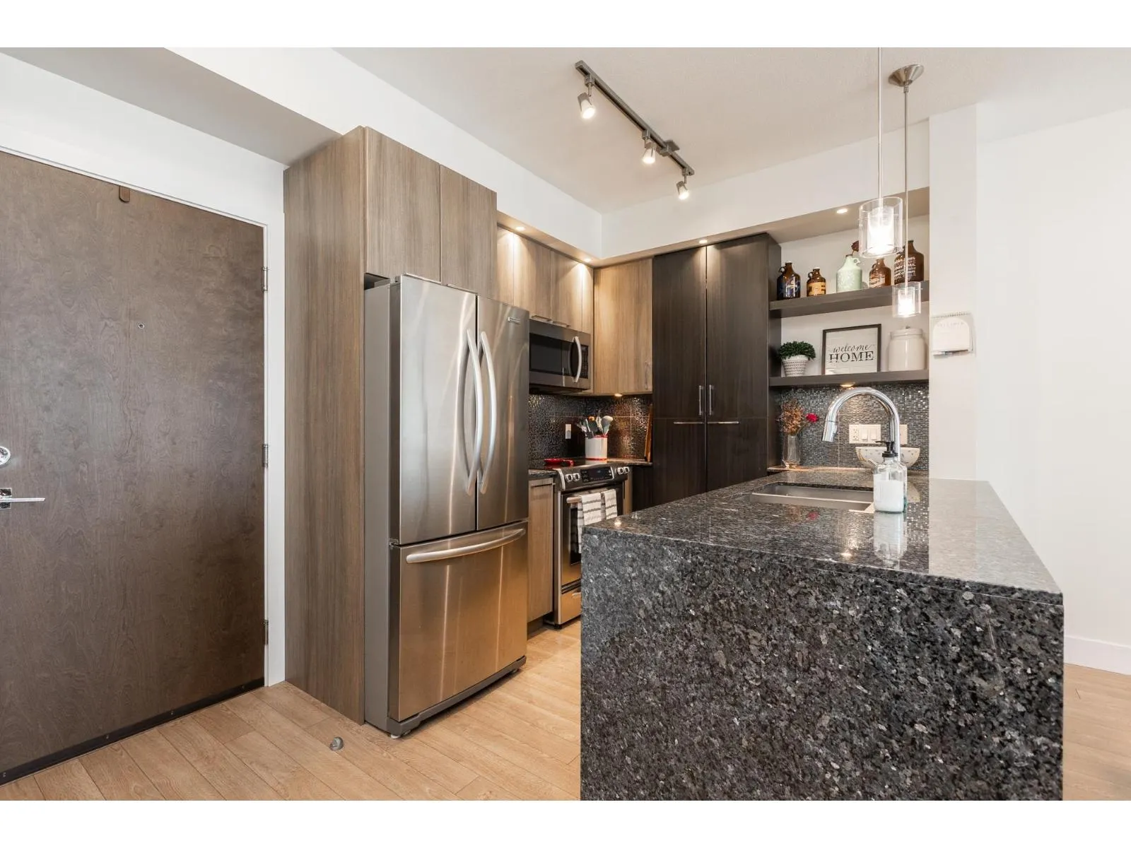 Elements, Willoughby's fabulous complex centrally located close to all amenities & allows you to reduce your carbon footprint. Two generous sized BDRMS, primary has walk in closet with custom built-ins. Open concept layout with sleek cabinets, quartz counters, high ceilings, oversized patio, window screens & lots of natural light. The Elements has a 9369 sq ft resort like clubhouse with chefs kitchen, billiards & bar room, media room, yoga room, lounge, fitness centre & guest suite. Elements is located within walking distance to the new sky train station coming to Langley. You won't want to miss this one. (id:27476)