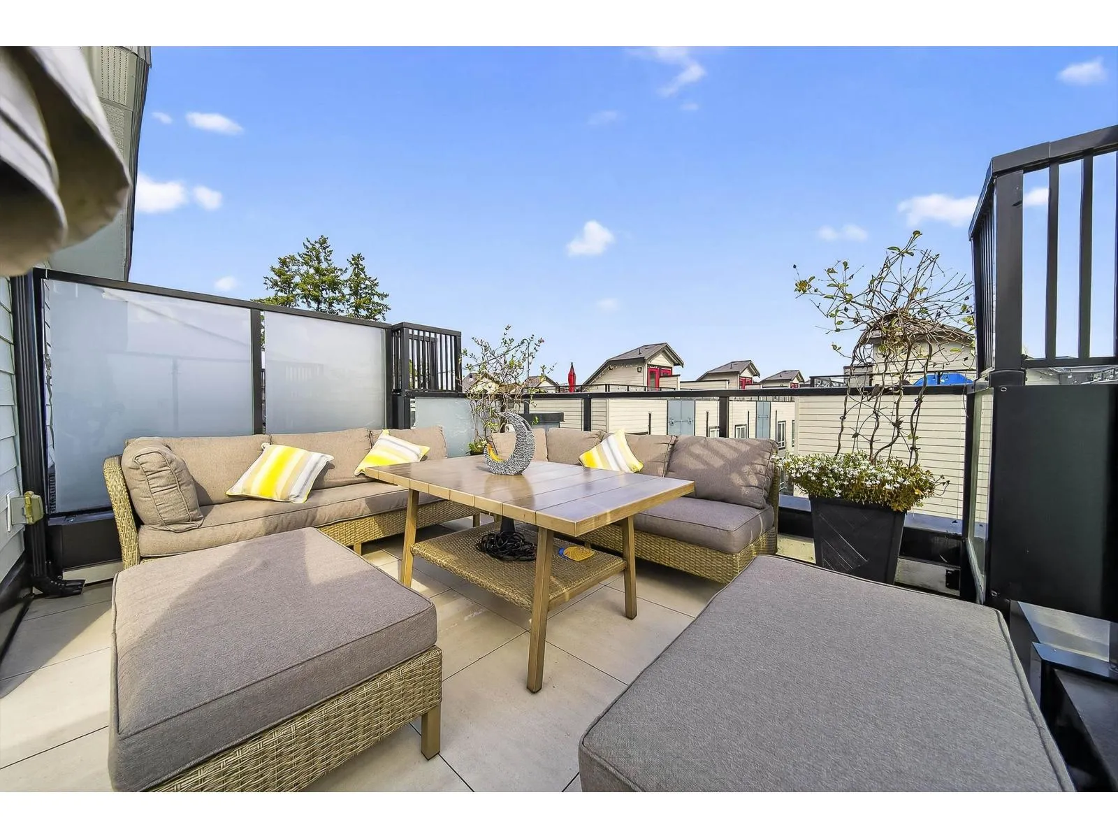 MUST VIEW! Rooftop patio living at its finest! This spectacular 2-bedroom plus office, 3-bathroom residence, built in 2021 & shows exactly like a brand-new show home. The crown jewel is the massive 538 sq. ft. private rooftop oasis, an entertainer's dream that comes complete with a natural gas BBQ and premium patio furniture. Enjoy incredible value with remarkably LOW STRATA FEES of only $248.36. The pristine interior features sleek quartz countertops, a high-end gas range, and spa-inspired bathrooms. Functional extras include a balcony off the kitchen, a fenced yard, and a tandem 2-car garage. Centrally located near parks, shopping, transit & walking trails, this pet-friendly home offers a rare blend of quality, massive outdoor space, and modern luxury. Move-in ready and truly special (id:27476)