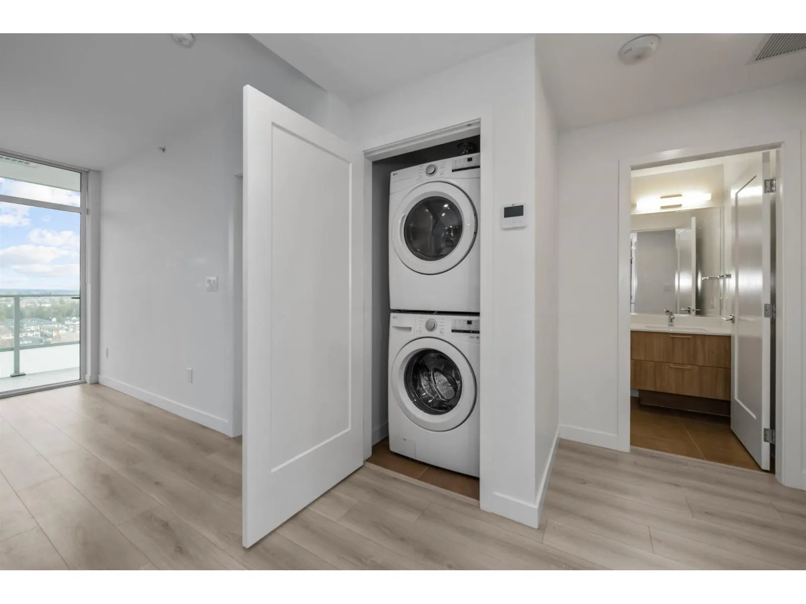 Welcome to the towers at Latimer Heights, Willoughby's premier master-planned high-rise community. This bright East-facing 2-bedroom, 2-bathroom home is located in Langley's first concrete high-rise, offering stunning views and abundant natural light throughout. The home features air conditioning, one secure parking stall, and one storage locker for added convenience. Residents enjoy access to over 50,000 sq. ft. of exceptional amenities, including a fully equipped fitness centre, children's playground, dog park, and BBQ lounge. Ideally situated just minutes from Highway 1, Carvolth Exchange, schools, shopping, and parks, this is a fantastic opportunity to own in one of Langley's most sought-after communities. (id:27476)