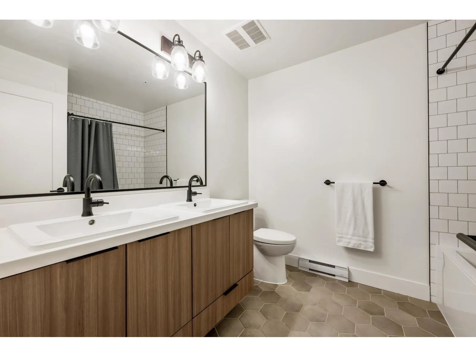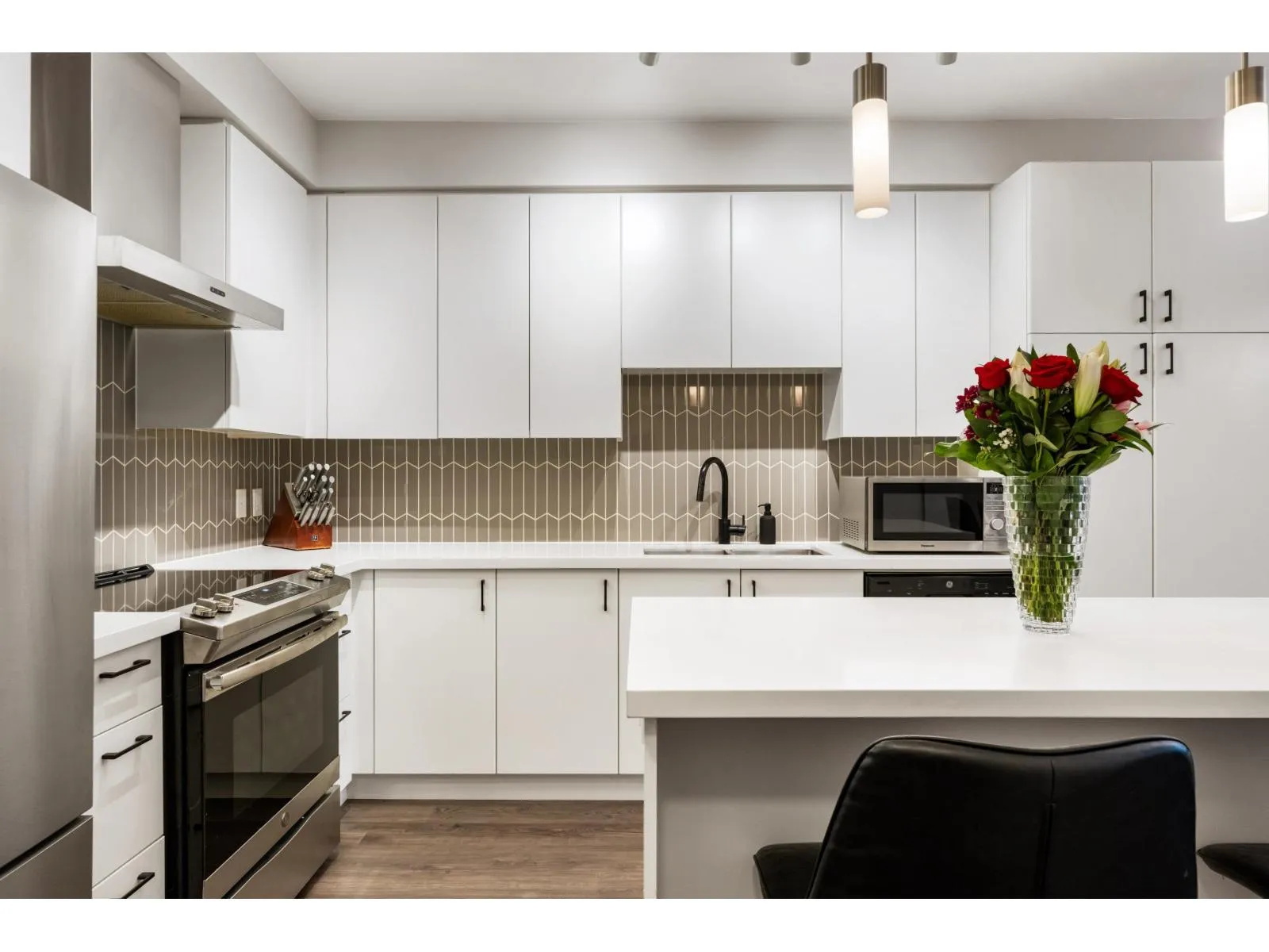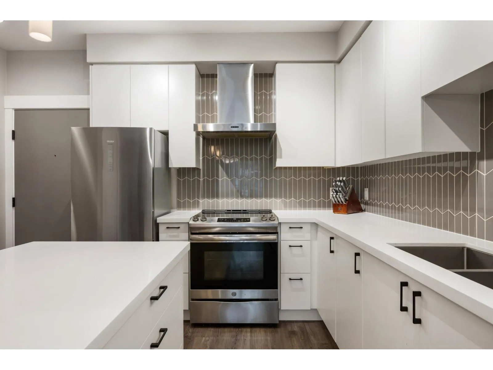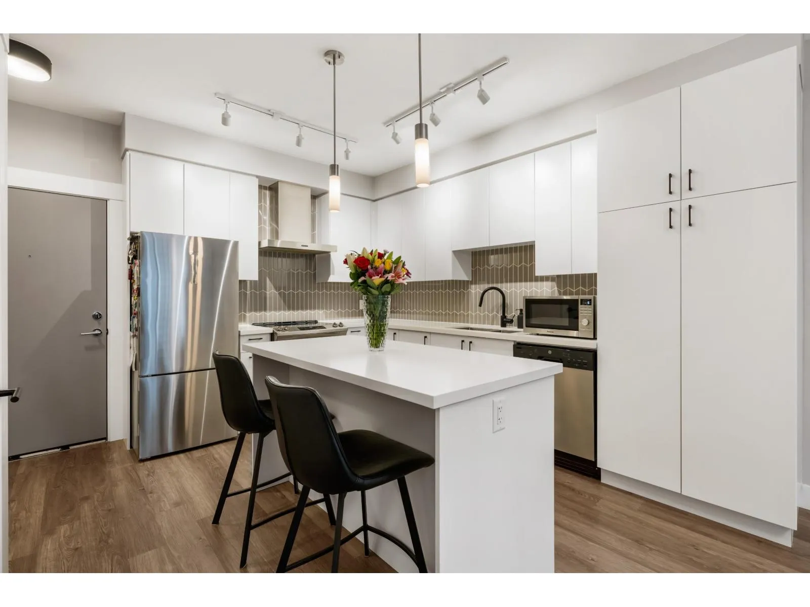 Welcome to Hudson & Singer, a sought-after community in the heart of Willoughby! This bright and spacious 1,019 sq. ft. 2-bedroom, 2-bathroom condo offers an open-concept layout with high-end finishes. The modern kitchen features stainless steel appliances, quartz countertops, and ample storage. The large primary bedroom includes a walk-through closet leading to a spa-like ensuite with a double vanity and glass-enclosed shower. A versatile second bedroom is great for guests, an office, or a growing family. Step outside to your private balcony, ideal for relaxing or entertaining. Enjoy fantastic building amenities, courtyard garden, and kids' play area. Located within walking distance to Willoughby Town Centre, parks, schools, and transit. 2 parking stalls and storage unit included. (id:27476)