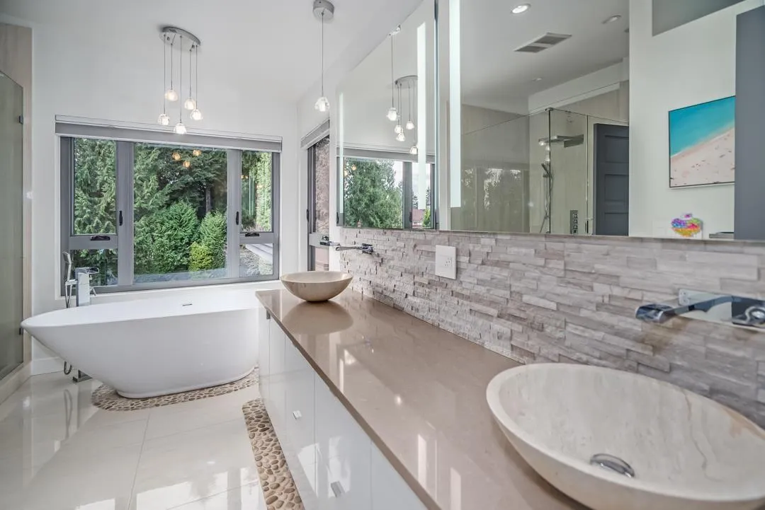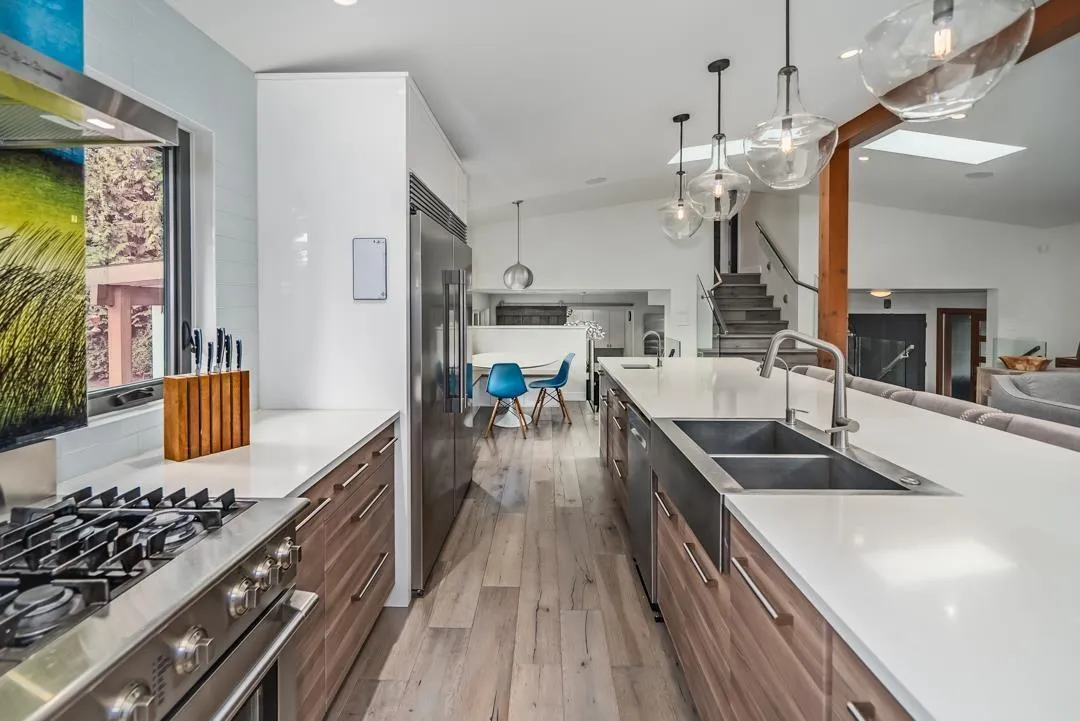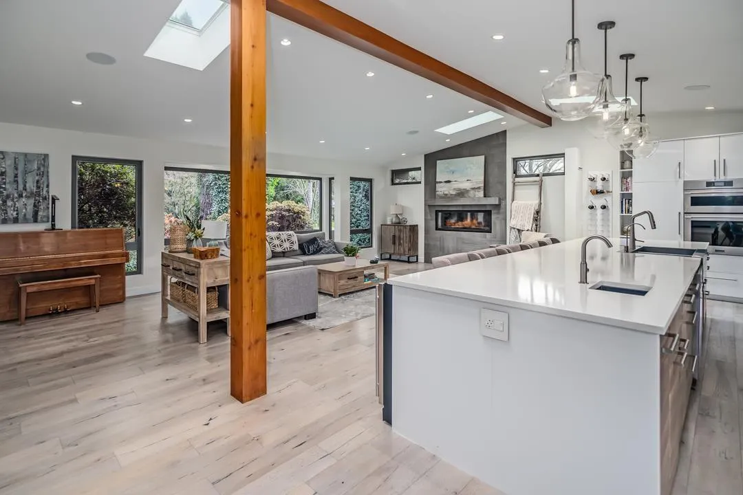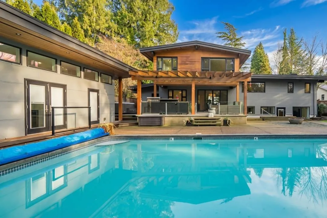 Rare half-acre private lot in historic Fort Langley! Stunning renovated home blending mid-century modern charm with West Coast contemporary luxury. Enjoy a west-facing backyard oasis: 20x40ft pool, hot tub, lush gardens, covered patio, outdoor kitchen & fire pit-perfect for entertaining or serene relaxation on fully fenced, irrigated lot. Chef's kitchen w/ high-end stainless appliances, quartz counters & spacious island flows into family room w/ gas fireplace. Primary suite w/ spa-like ensuite, walk-in closet + soaker tub overlooking pool. Four more bedrooms offer flexibility for family/guests. Lower levels feat. versatile basement media/gym/hobby. Beautiful self-contained pool-side guest suite ideal for multi-gen living. Walking distance to schools, parks and downtown Fort Langley! (id:27476)