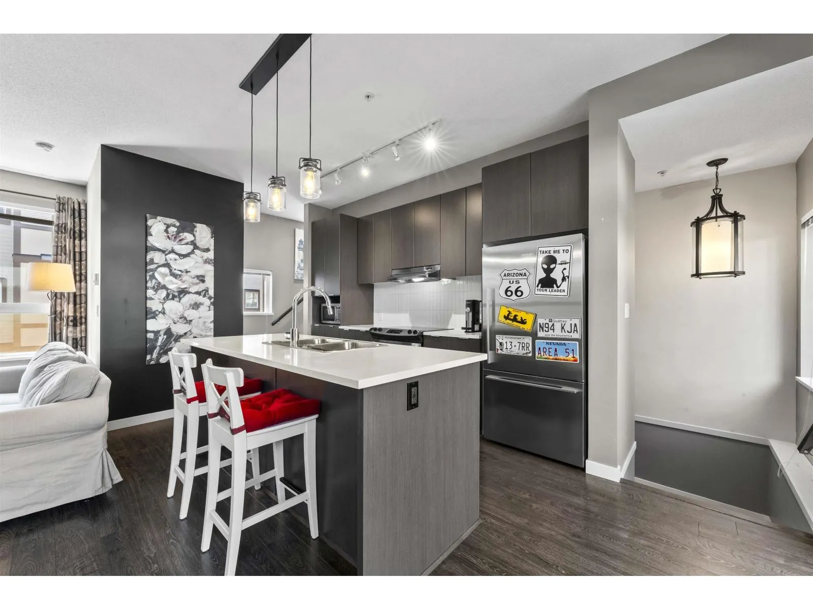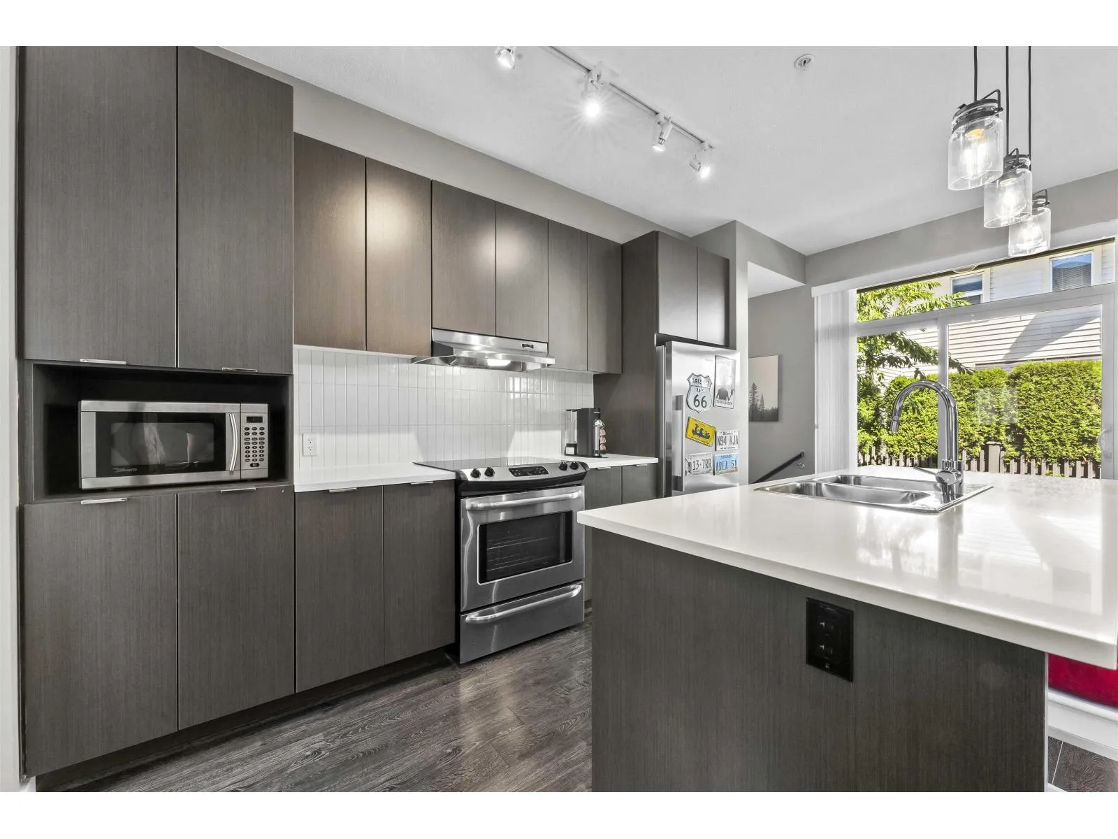 Welcome to this bright, south-north facing 2 bed, 3 bath townhome at Mason & Green by Polygon. Nearly 1,200 with a functional open layout, modern kitchen with quartz counters, SS appliances, and a large island, EV charge. Watch the kids play in the north-facing backyard right from your kitchen! Upstairs offers a spacious primary bedroom with walk-in closet and double sinks in the ensuite. Full-size side-by-side laundry and double garage with extra storage. Enjoy resort-style amenities at the Maples Club: pool, gym, lounge, and more. Steps to Richard Bulpitt Elementary, close to Willoughby Town Centre, parks, shops & transit. Easy Hwy 1 access! (id:27476)