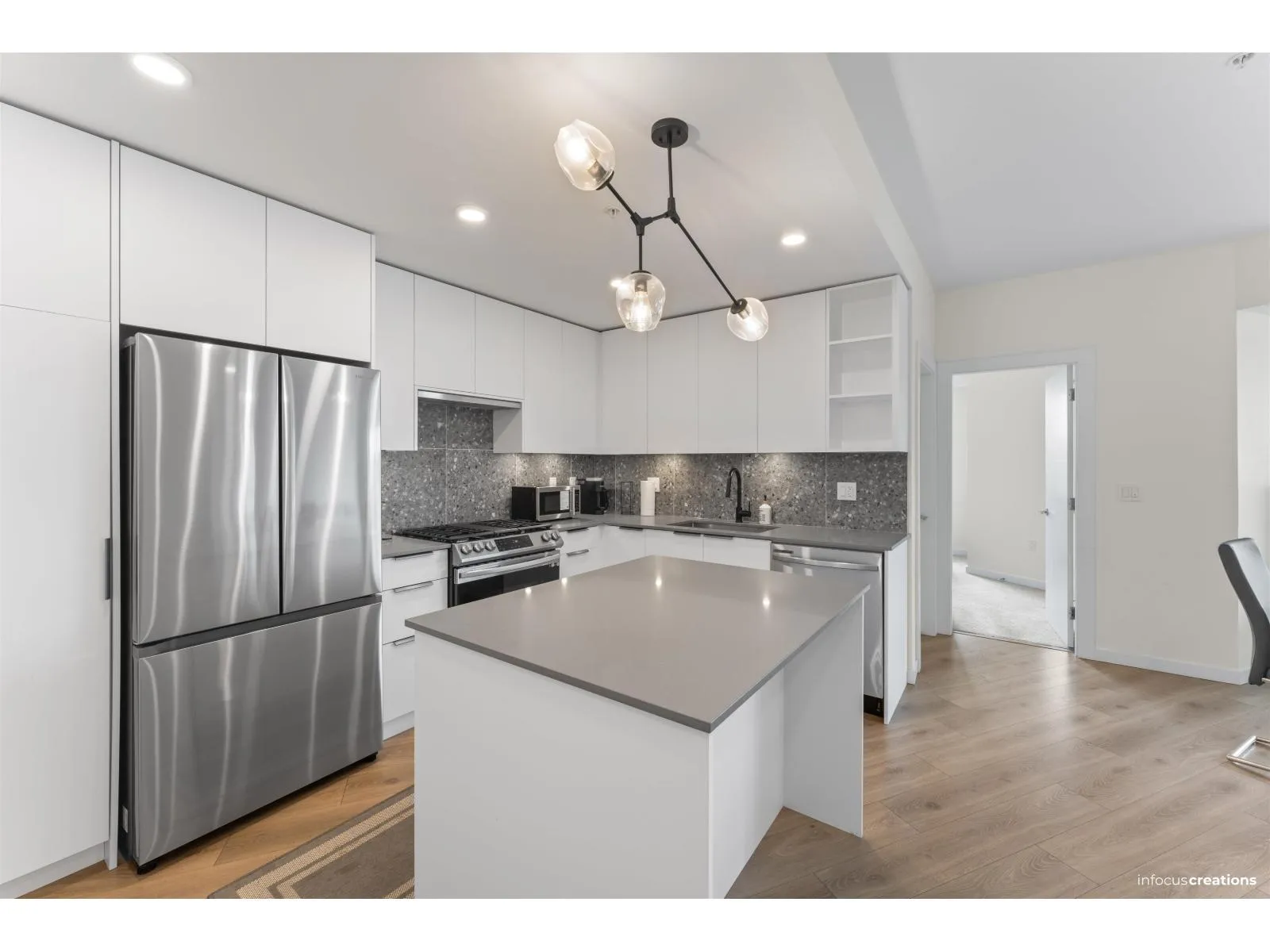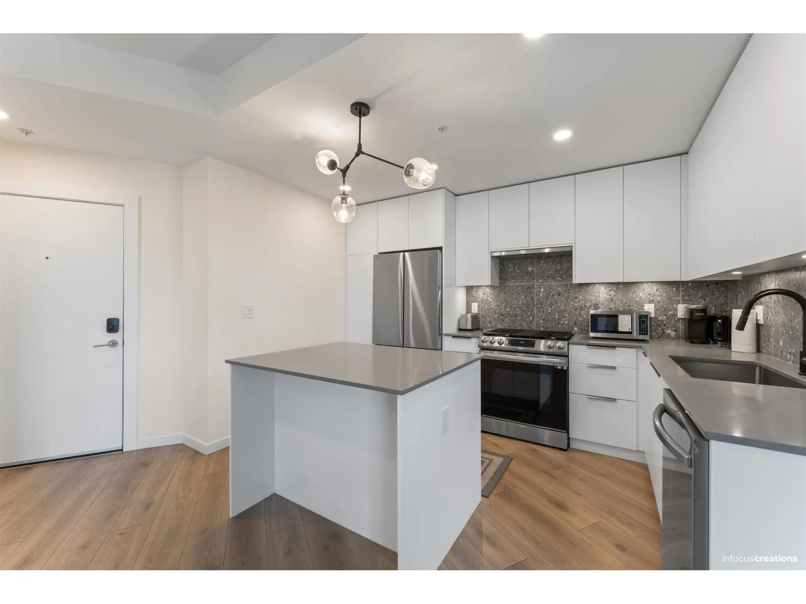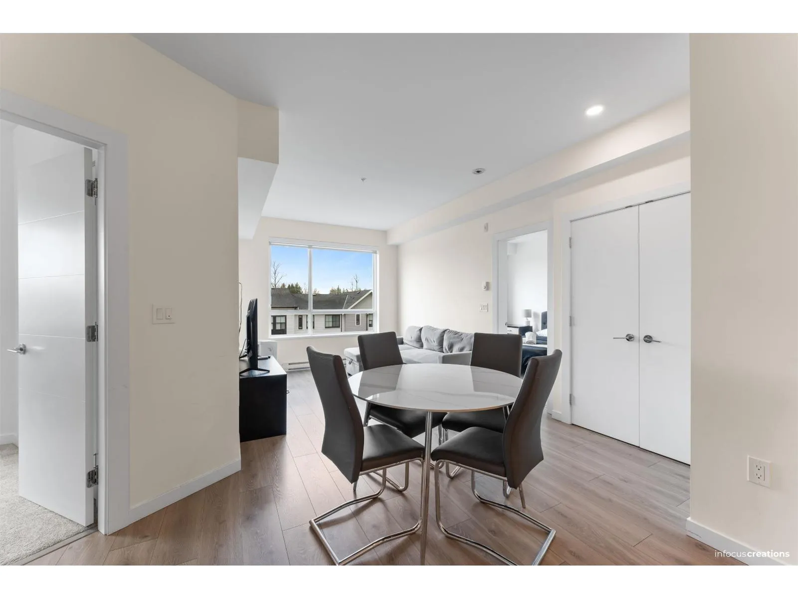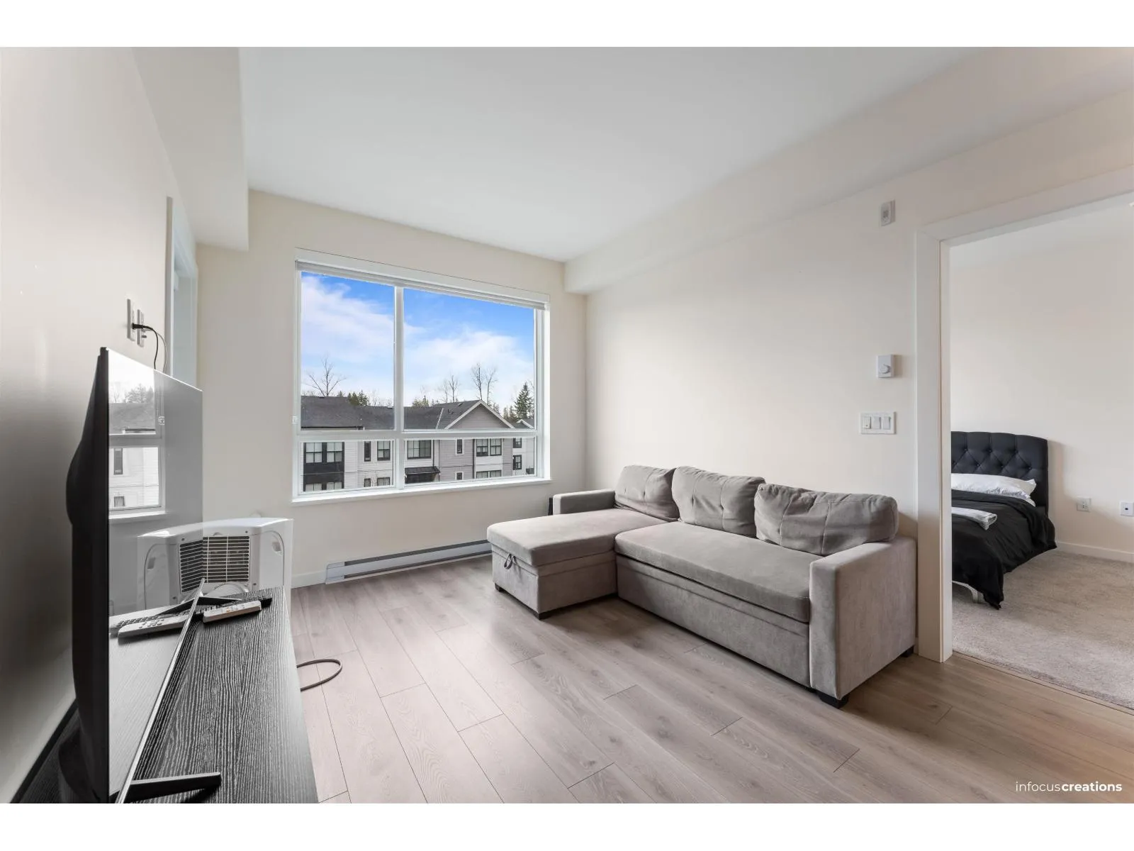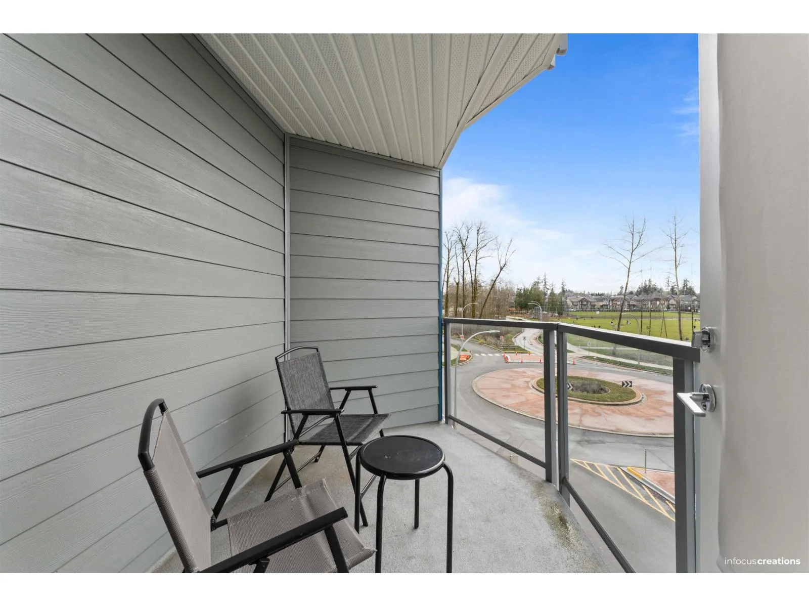Welcome to this beautiful 2-bedroom + den home in a new 2024-built community in Langley. This 963 sq.ft. third-floor unit offers a bright and well-planned layout with excellent natural light and a quiet, open outlook. The home features a nice contemporary kitchen with modern cabinetry and a functional layout that flow seamlessly into the living and dining areas-perfect for everyday living and entertaining. Enjoy two spacious bedrooms, a versatile den ideal for a home office, and a well-appointed bathroom. Located directly across from an elementary school, this home is perfect for families. Enjoy close proximity to parks, shopping, transit, and major routes, all while living in a newer building. Rare to find 2 Secured Parkings. (id:27476)