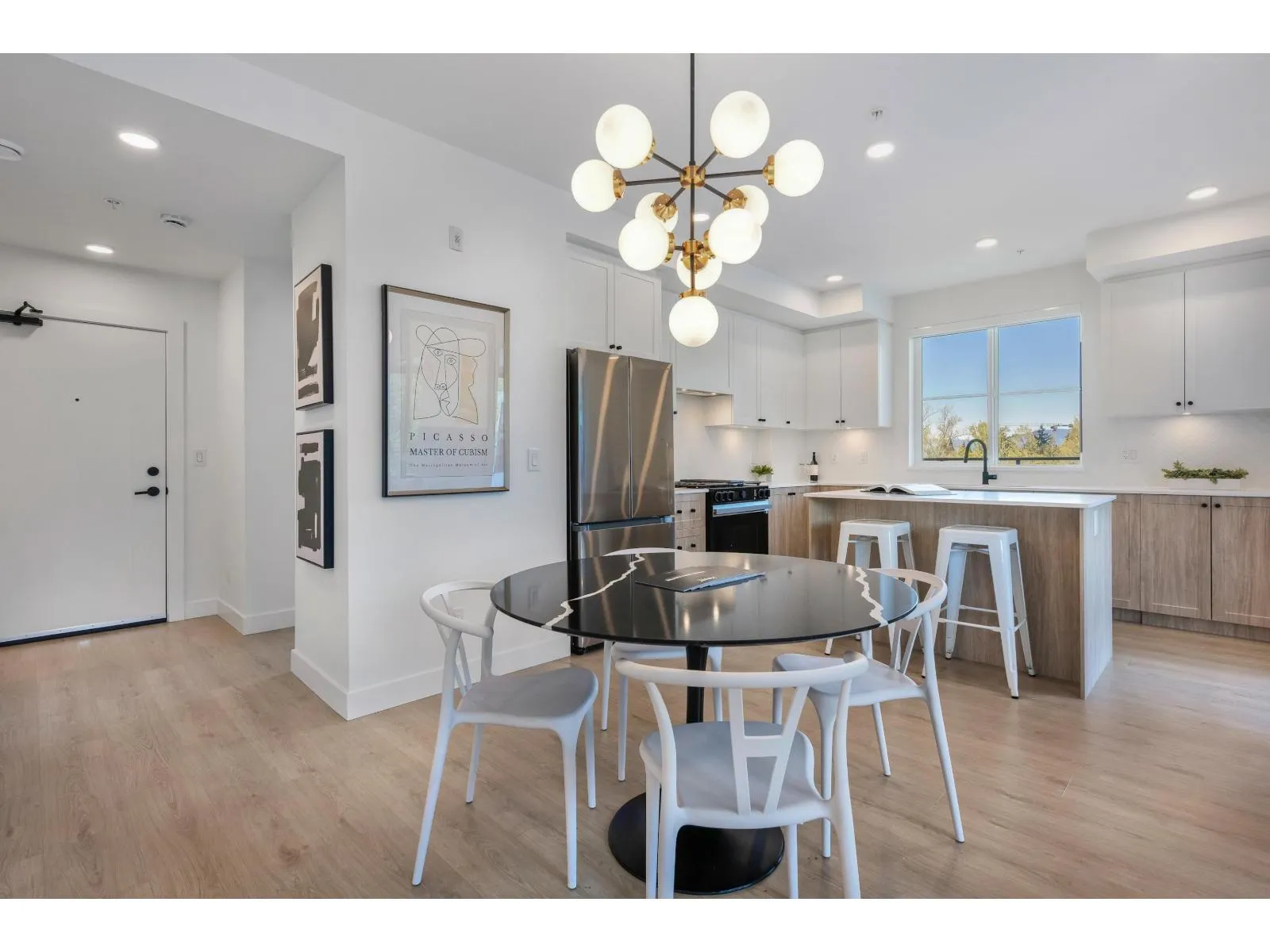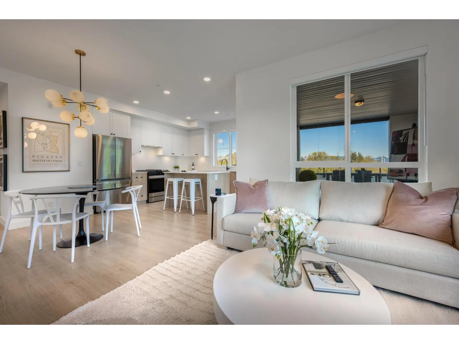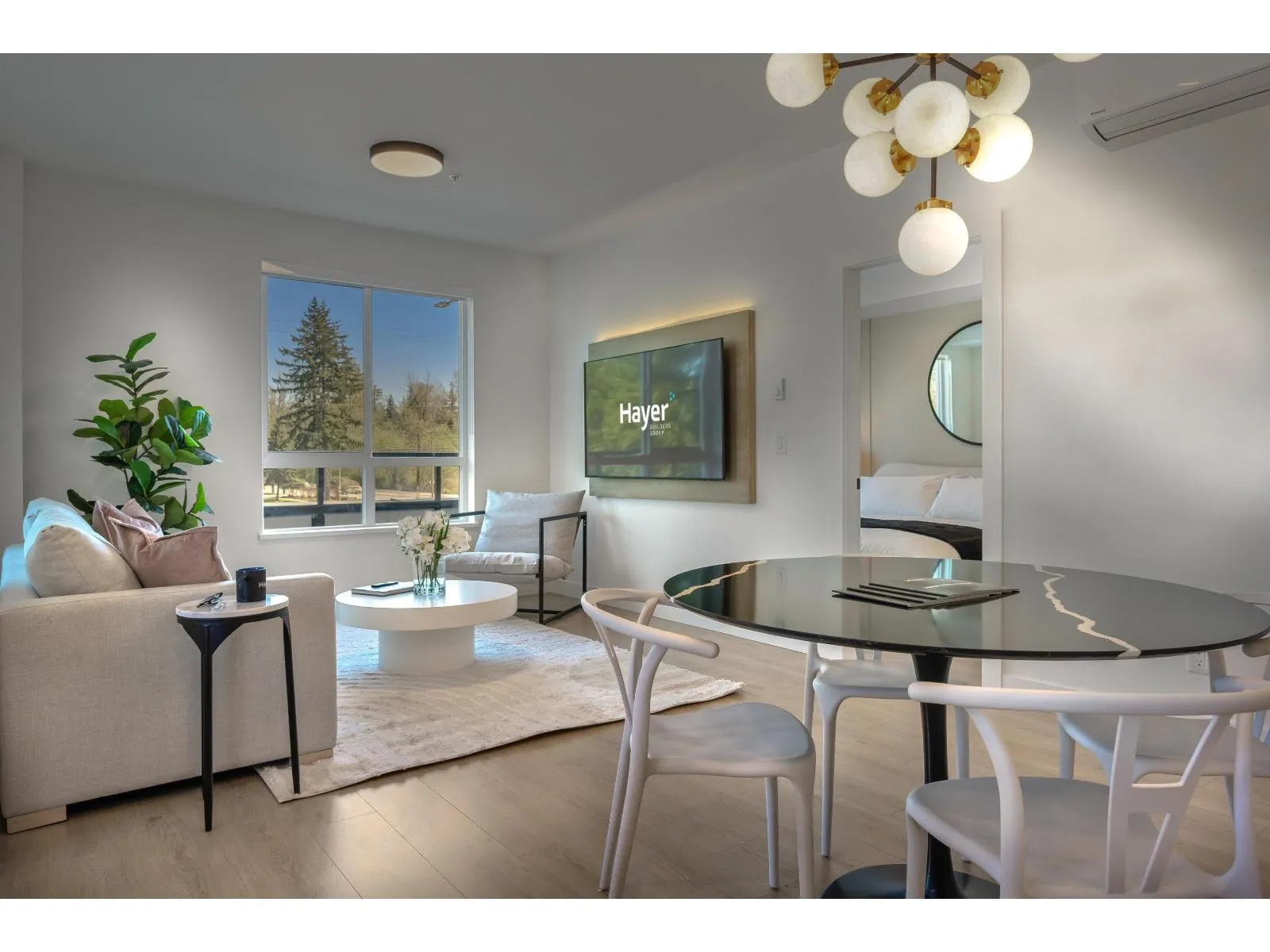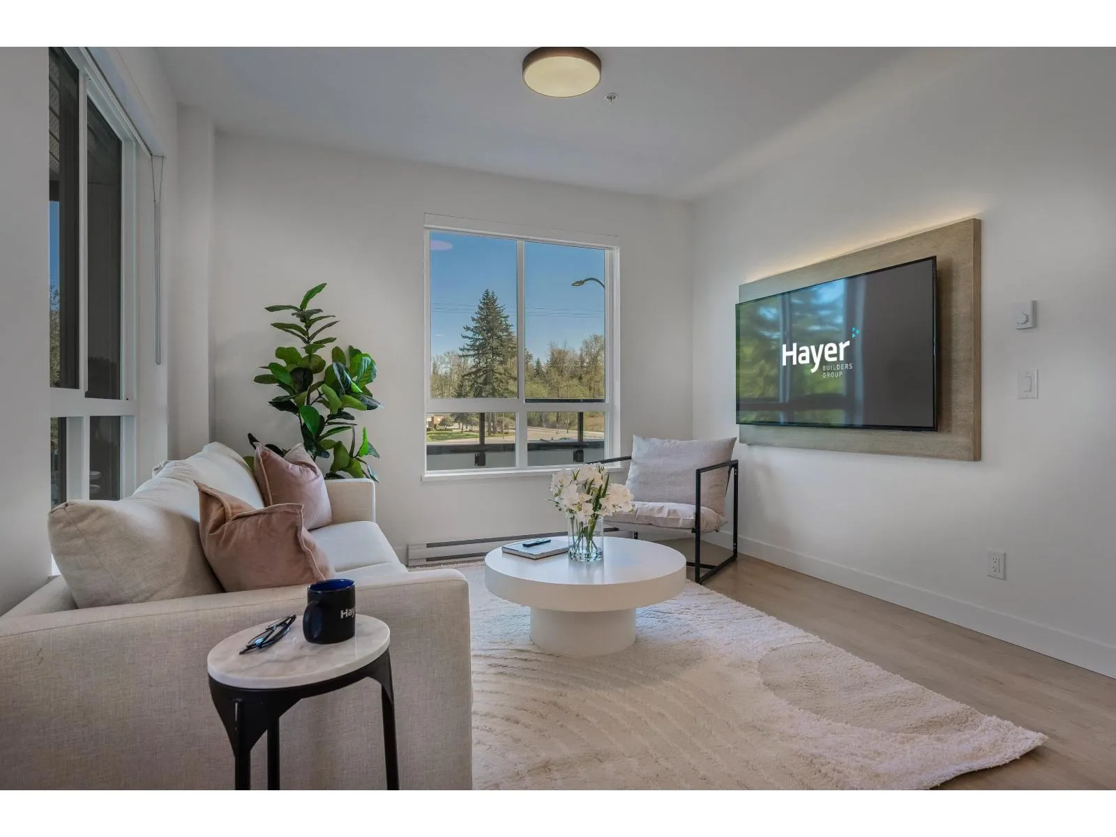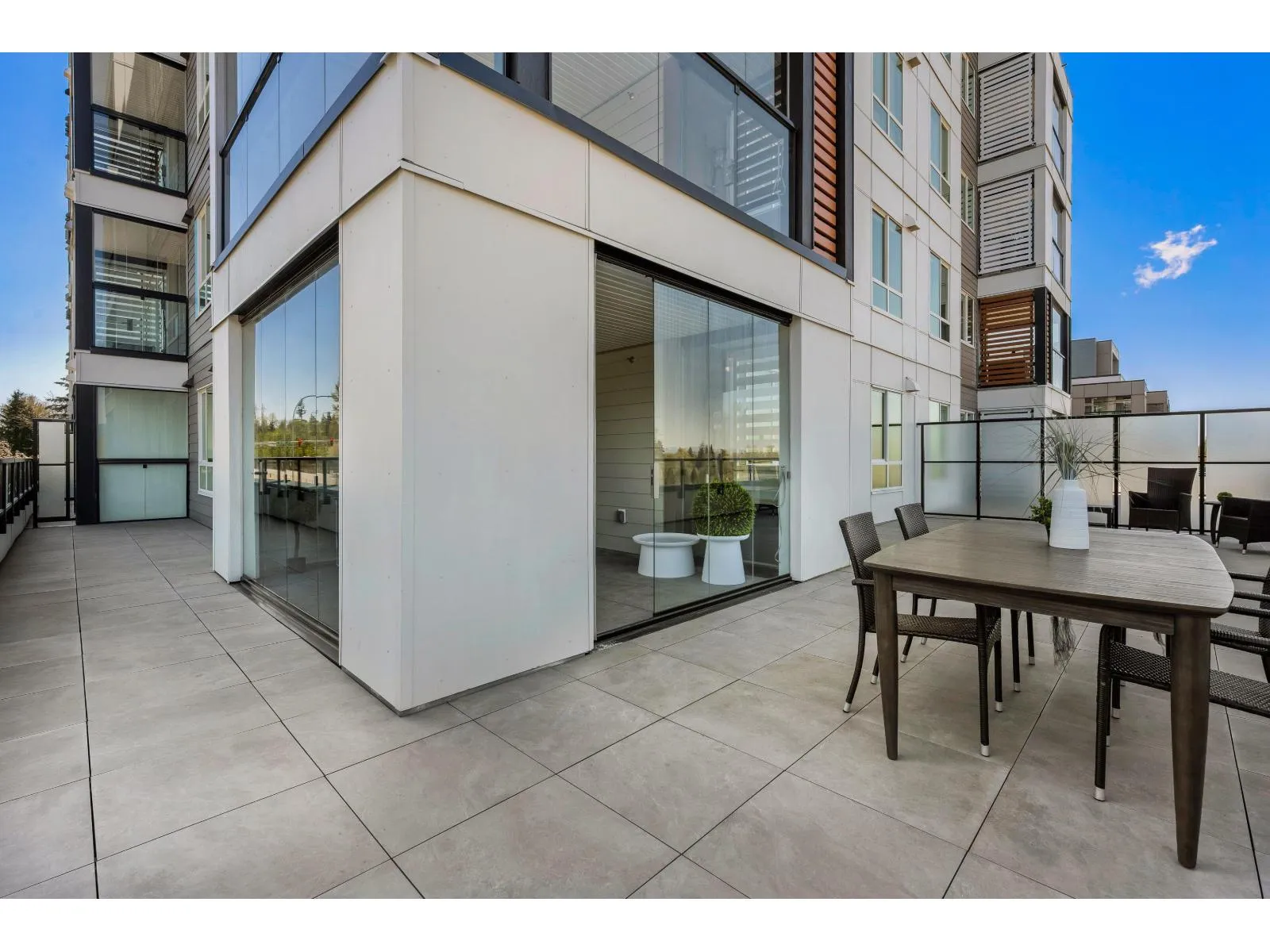 You won't find a better condo! This impressive home at Hayer Town Centre has it all: AC, laminate throughout, integrated dishwasher panel, and designer upgrades. PLUS enjoy an 800 sqft private patio IN ADDITION to your 168 sqft LUMON SOLARIUM featuring FULL HEIGHT retractable glass truly creating a versatile space for year-round living. Even better- all staging furniture is included, making this an exceptional turnkey opportunity. Residents are just steps from 35,000 sqft of shops & services, an amenity building with a games & party room, courtyard games area, private dog park, rooftop patios & full-time on-site concierge. Walking distance to RE Mountain Secondary and Peter Ewart Middle School. BONUS: 968 sqft of outdoor space with NO strata fees! Don't miss this incredible offering! (id:27476)