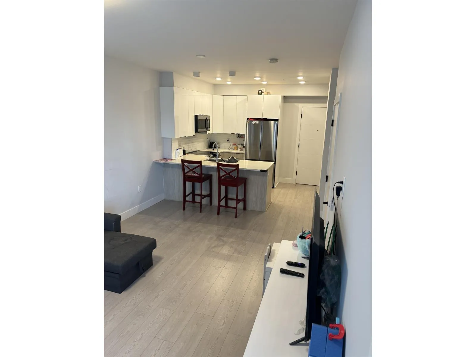 Welcome to Genesis. This well designed 2 bedroom unit gives you tons of natural light and upscale laminate flooring. Enjoy the balcony over looking the buildings own putting green. It is also located near the future skytrain station, bus loop and only steps away from plenty of restaurants. Unit includes 1 parking stall with bonus upgraded EV installed. (id:27476)