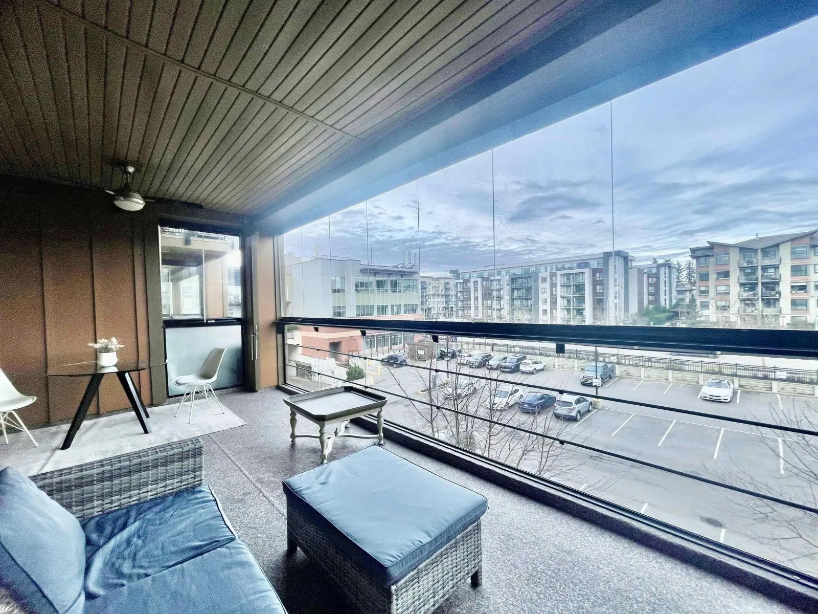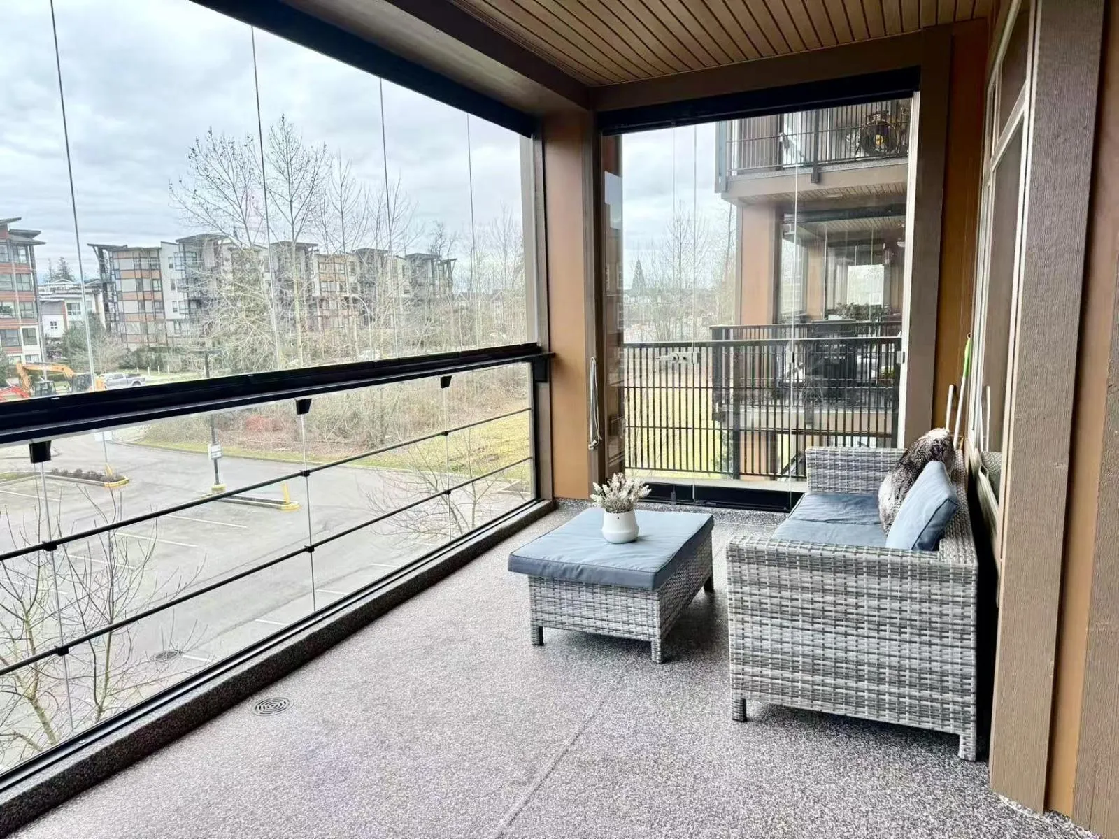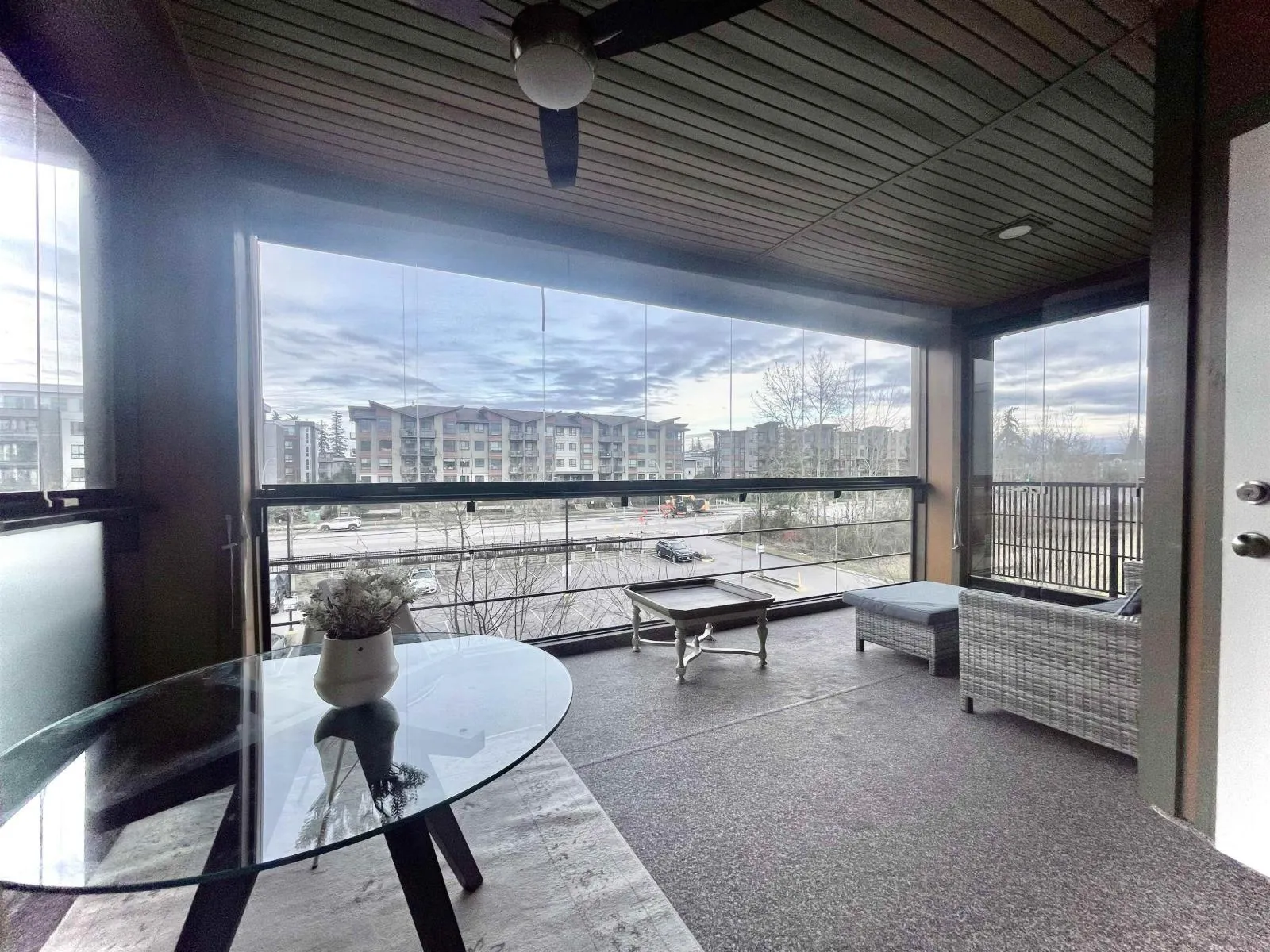 WELCOME to Yorkson Downs in the town center of Willoughby Heights ! Stumming 3 bedrms + DEN + 2 FULL BATH condo with double masters, 1336 SQFT INCL. 208 sq ft of SOLARIUM facing east toward 208 st. It features Kitchen with S/S appliances incl. gas range with built-in microwave, stone counters with a PANTRY. Frameless shower doors in ensuite and heated floors in both bathrooms. AIR CONDITIONING with low-cost high efficiency heat pump! The solarium has RETRACTABLE glass windows with separate BBQ hookup & hose bib for watering plants. you get 2 SIDE BY SIDE PARKING STALLS #42 & #43 plus TWO huge roll up STORAGE LOCKERS. Rental & Pets allowed! Walking distance to elementary school, bus stops, shopping, and Hwy 1. Strata fee includes hot water and Gas. Complex offers a gym and playground. Exceptionally well maintained with quick possession available. don't miss this one! (id:27476)