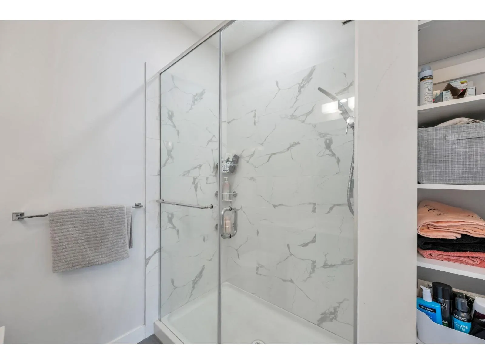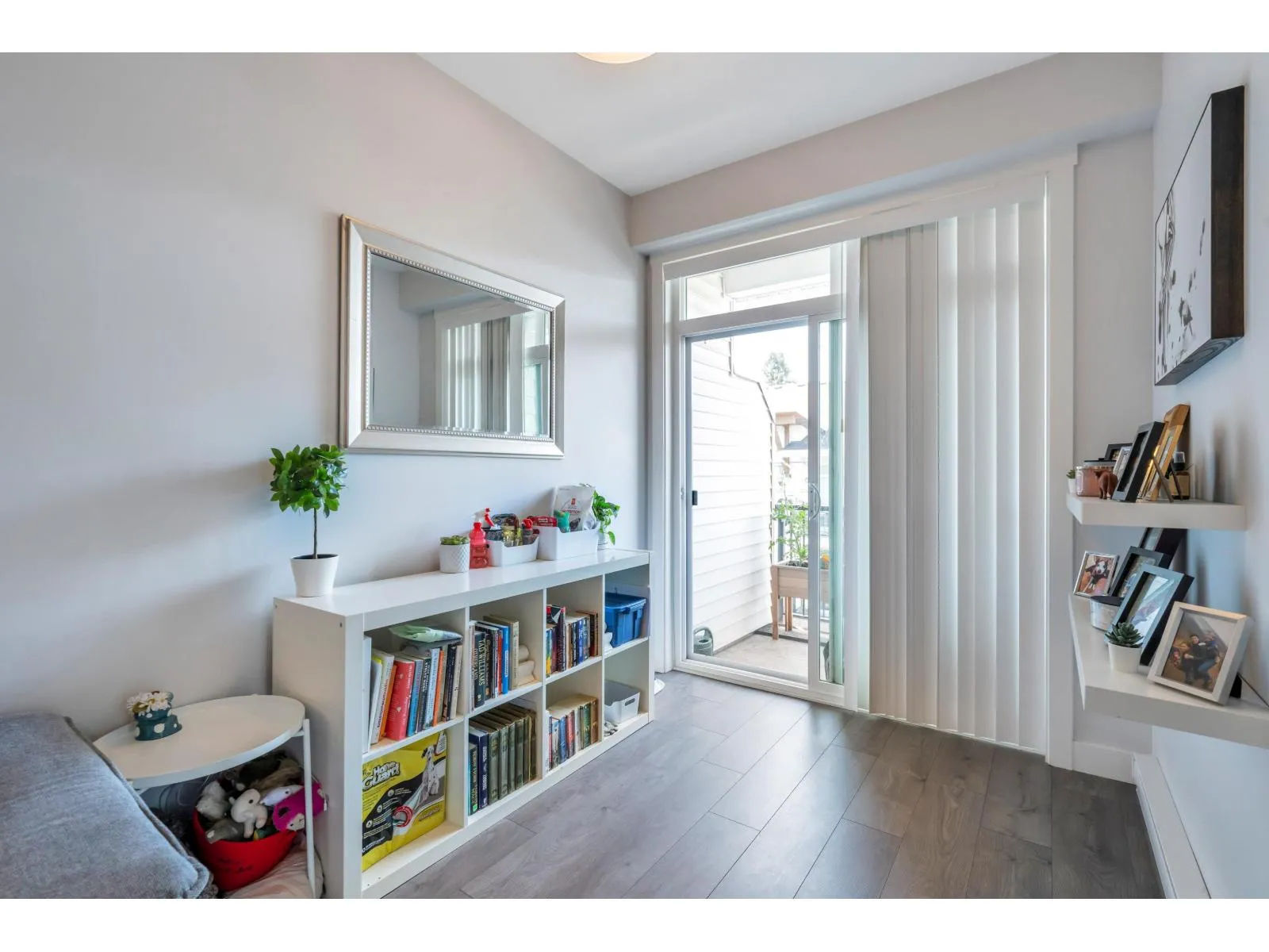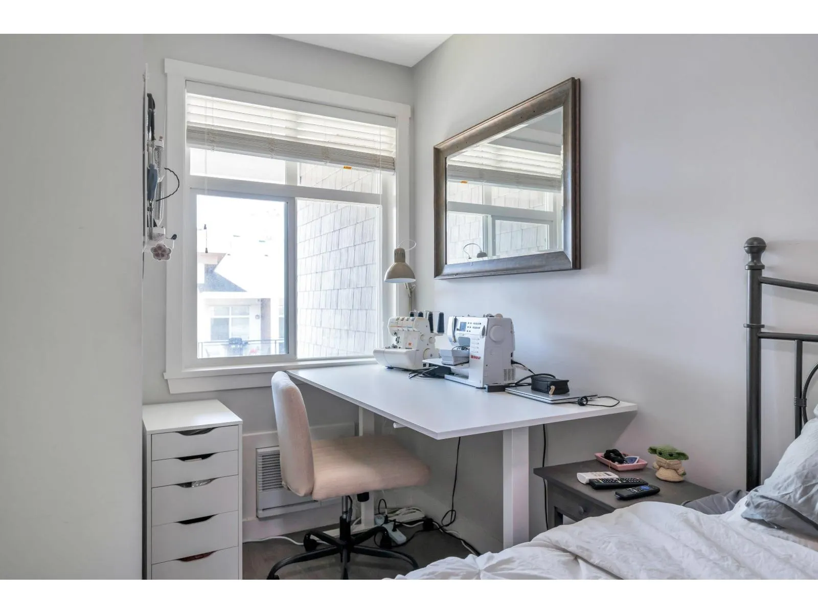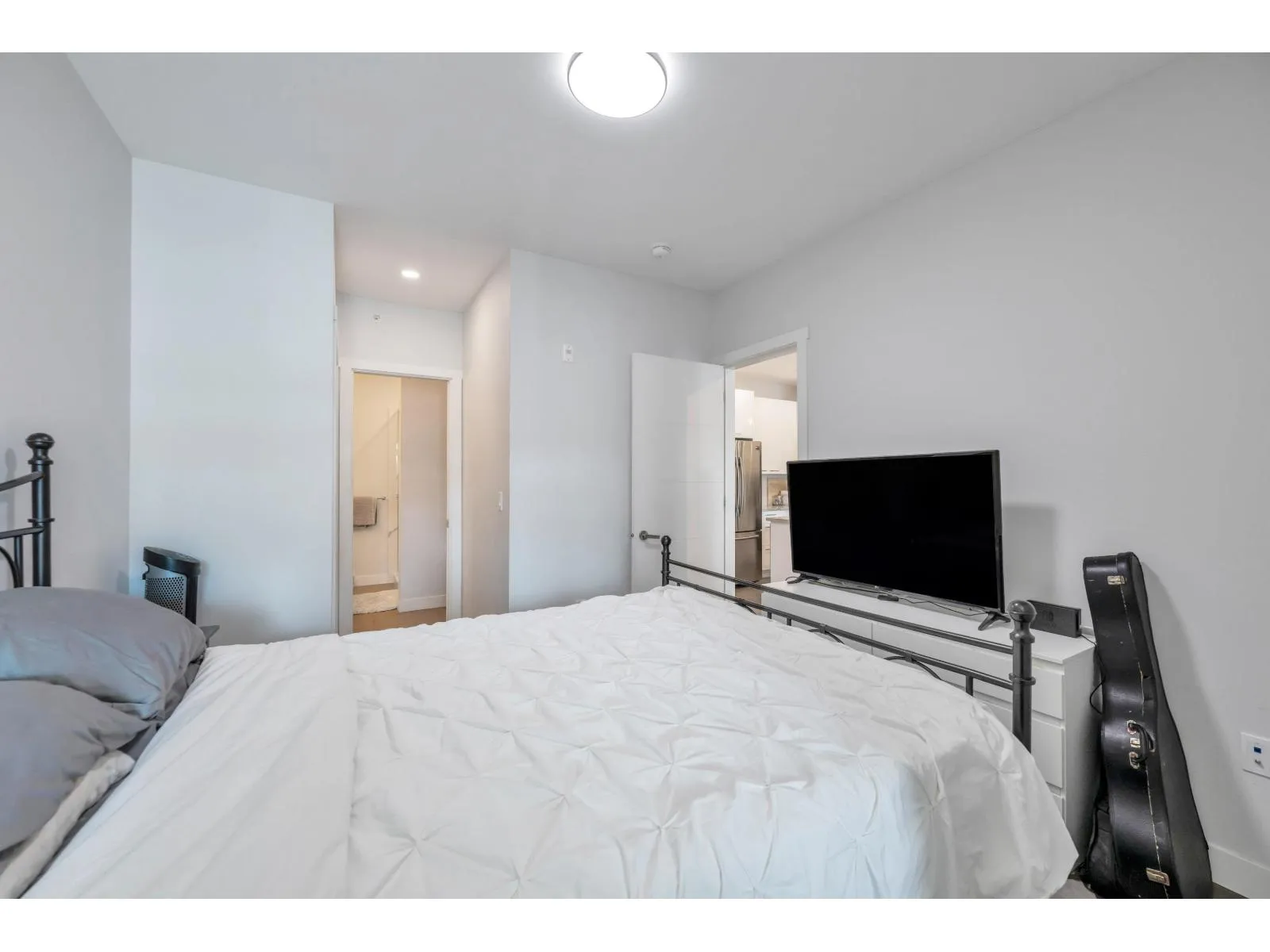 Brydon Green. Spacious 2 bedroom 2 bath top floor bright unit with oversized windows and 9' ceilings. Kitchen has Samsung S/S appliances incl microwave, European white lacquer cabinets, breakfast bar with granite countertops. Spacious primary bedroom with A/C. Ensuite has twin sinks & large walk-in shower. Large storage area and w/d. Centrally located and minutes away to schools, parks, Willowbrook Mall and transit plus future skytrain station, Great walking nature trails! The High quality laminate floors throughout. 2 pets allowed. 5 years remaining on building warranty. Low strata fees of $304.00. 1 parking (additional available). Top floor condo is vacant and ready for occupancy. (id:27476)