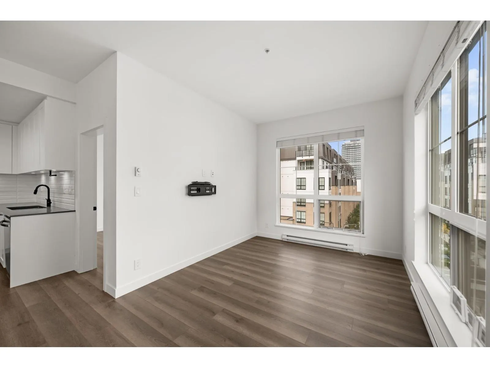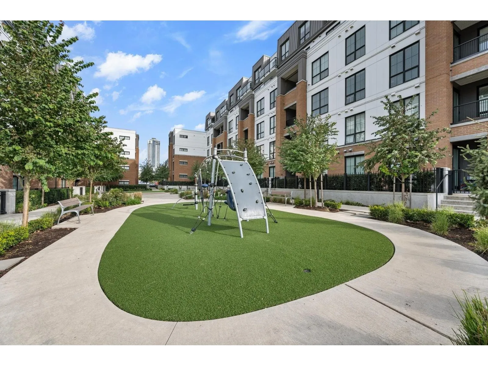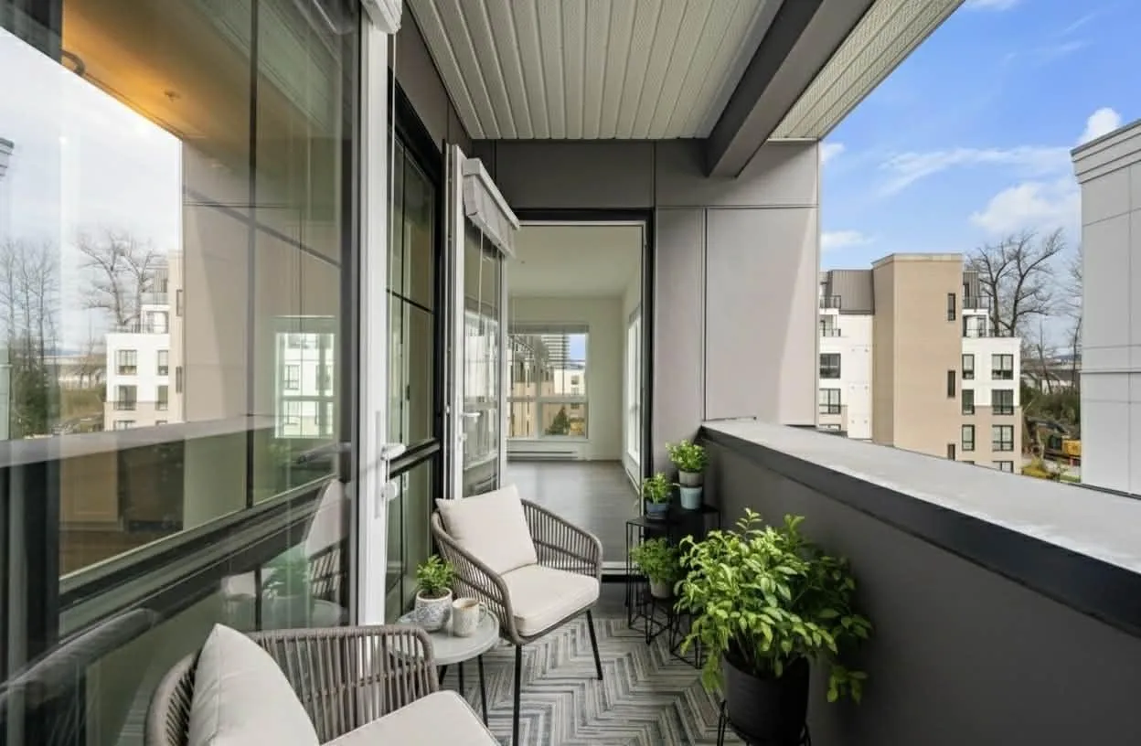 Welcome to this stunning 3-bedroom + den, 2-bath penthouse in the heart of Latimer Village. Offering approximately 1,300 sq ft of well-designed living space, this NE-facing corner home by award-winning Vesta Properties is filled with natural light and features 9' height ceilings throughout. The modern kitchen is designed for both everyday living and entertaining, complete with stainless steel appliances, gas stove, quartz countertops, and an oversized island. Durable laminate flooring runs throughout the home, while the den has been professionally customized into a functional home office. Close to Willowbrook Shopping Centre, Costco, Highway 1, parks, and schools. A rare penthouse opportunity offering space, comfort, and lifestyle in one of Langley's most desirable neighborhoods. (id:27476)