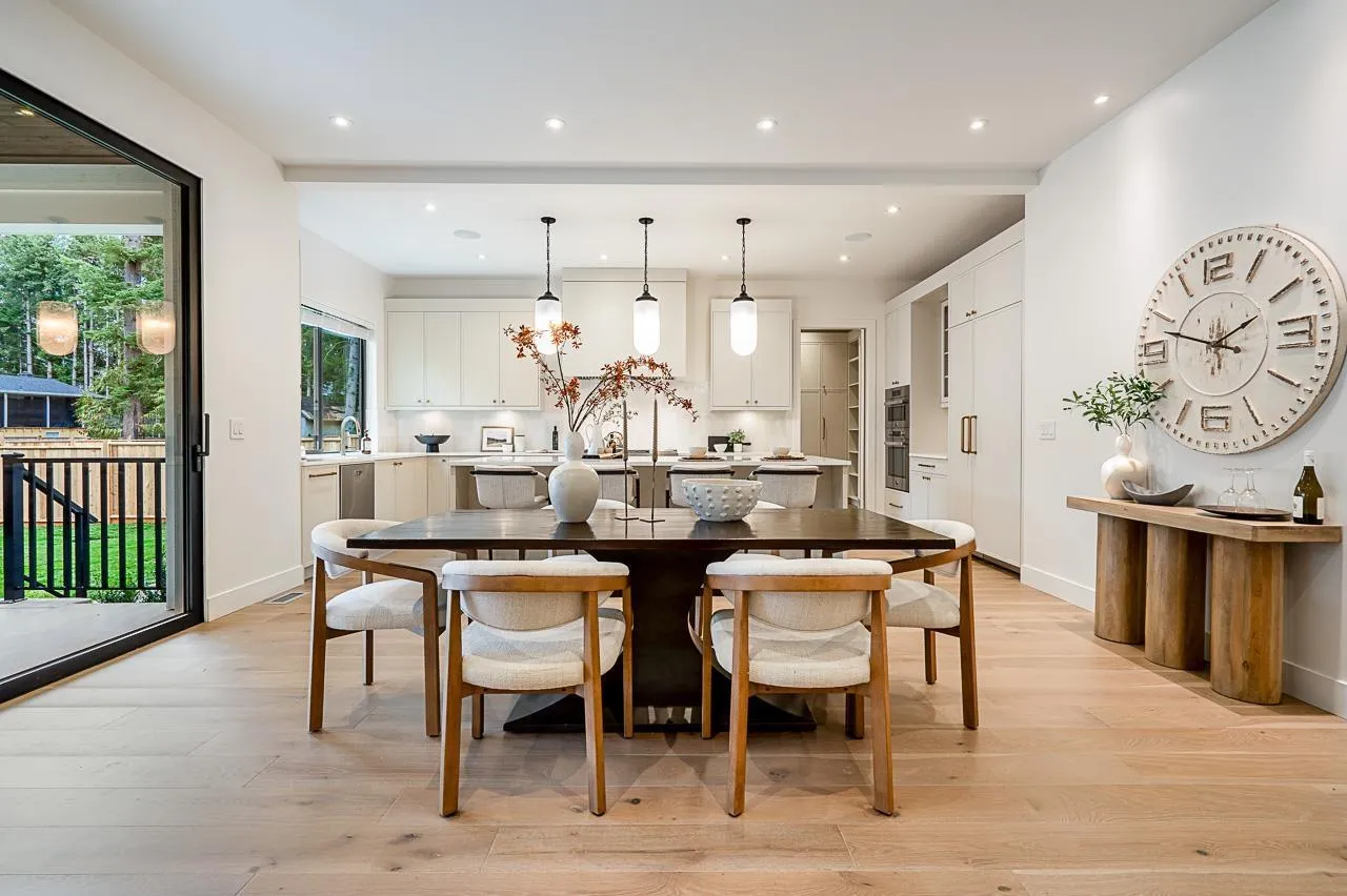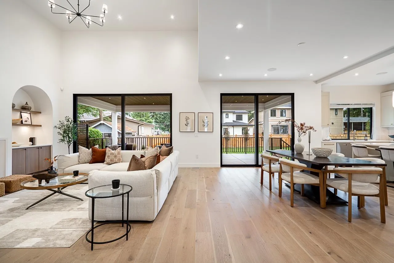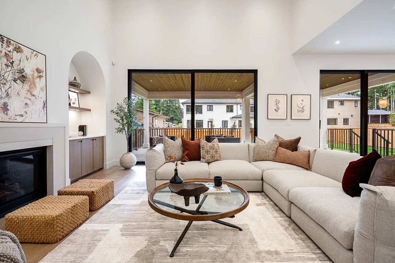Welcome to this elegant Brookswood estate by Meseca Developments, where timeless design meets refined modern living. Situated on a quiet, tree-lined street, this 4,670sf home offers 6 bedrooms and 7 bathrooms across 3 finished levels. Oversized sliding doors open to a covered patio for seamless indoor-outdoor living. 10' ceilings, expansive windows, and wide-plank hardwood create a bright, open atmosphere. The chef's kitchen features Bertazzoni appliances, quartz countertops, custom cabinetry, an oversized island, and a prep kitchen with premium fixtures. Upstairs includes 4 bedrooms with ensuites, highlighted by a spa-inspired primary retreat. The lower level offers a rec room and 2-bed legal suite, with smart wiring and EV rough-in completing this exceptional Brookswood residence. (id:27476)