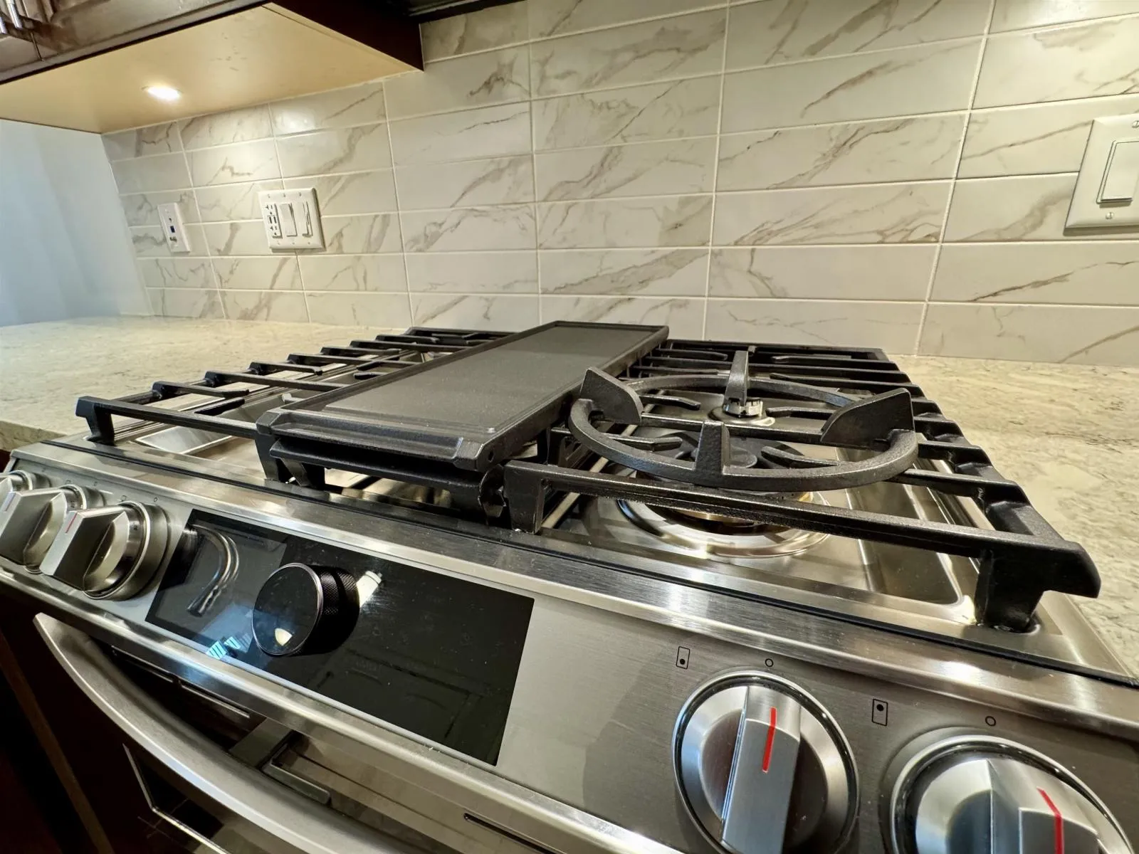 **PENTHOUSE w/ 13FT CEILINGS facing WEST built by QUADRA in the luxurious YORKSON PARK complex** Step into luxury living with our exquisite one-bed, one-bath residence spanning 771 sqft, complete with a spacious 82 sqft retractable glass panel solarium/deck. Indulge in top-of-the-line appliances, sleek quartz countertops, and the comfort of heated flooring in the bathroom. Entertain effortlessly with a natural gas line on the patio and relish in the convenience of built-in AC. 2 parking spots with pullup storage locker at end of spot & EV charger included! Nestled in a prime location, enjoy proximity to schools, shopping, transit, and easy highway access! (id:27476)