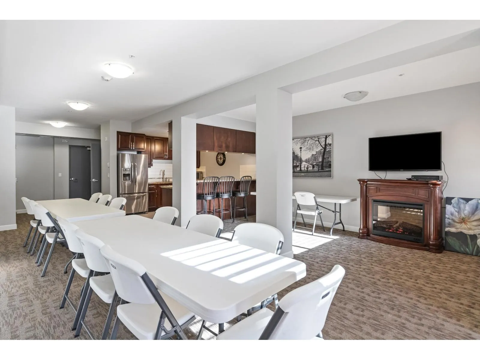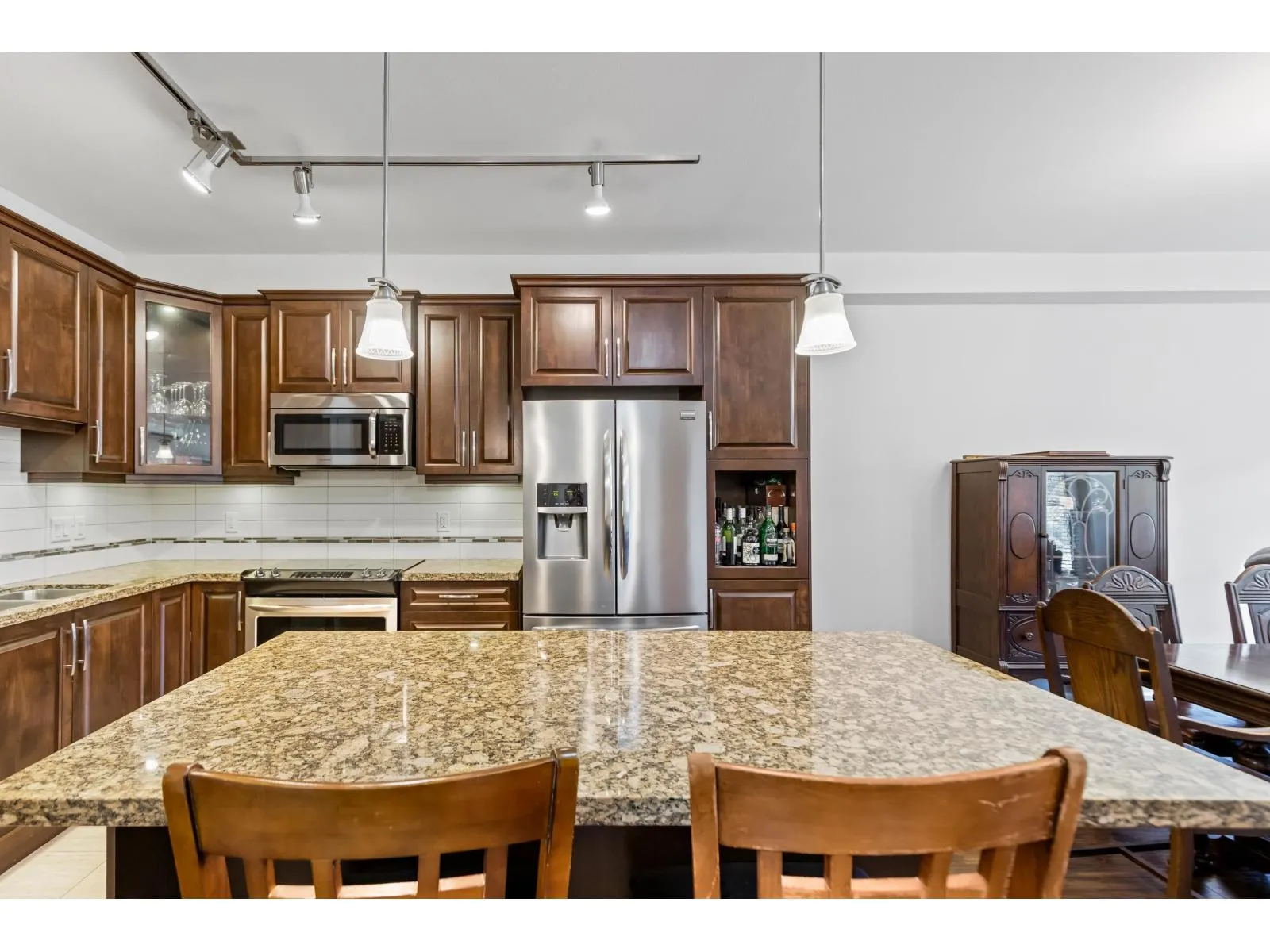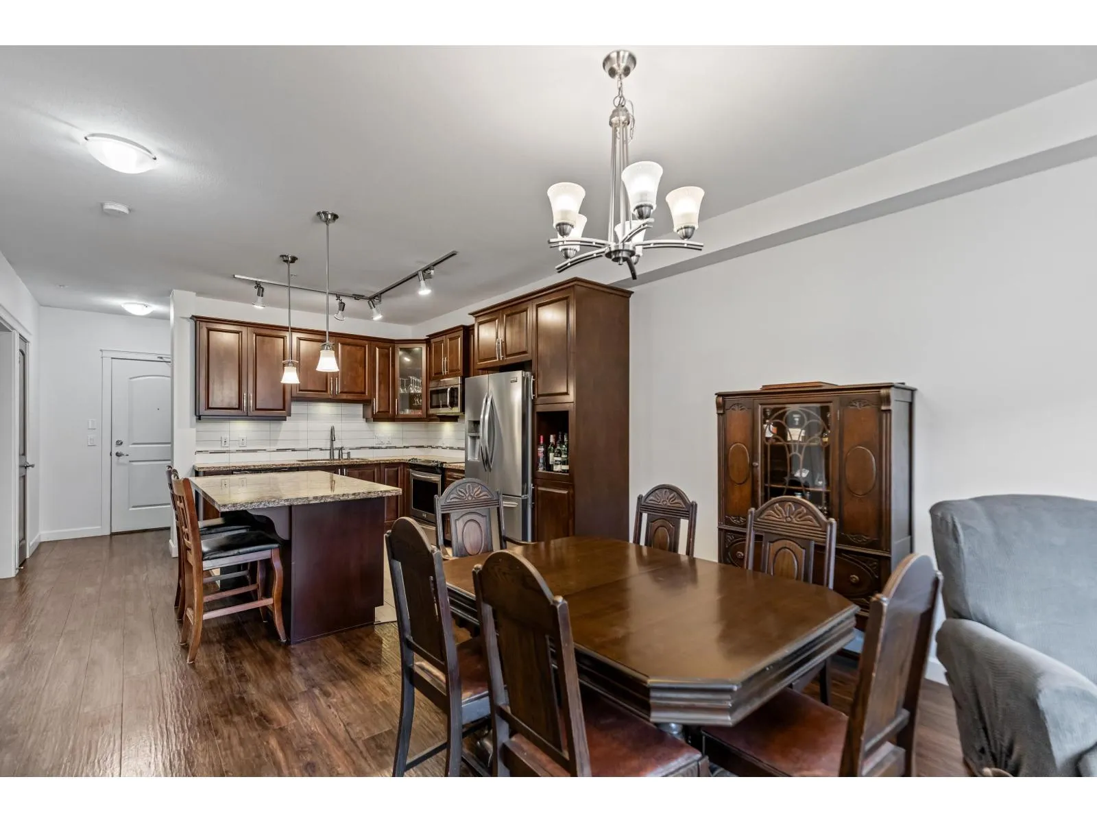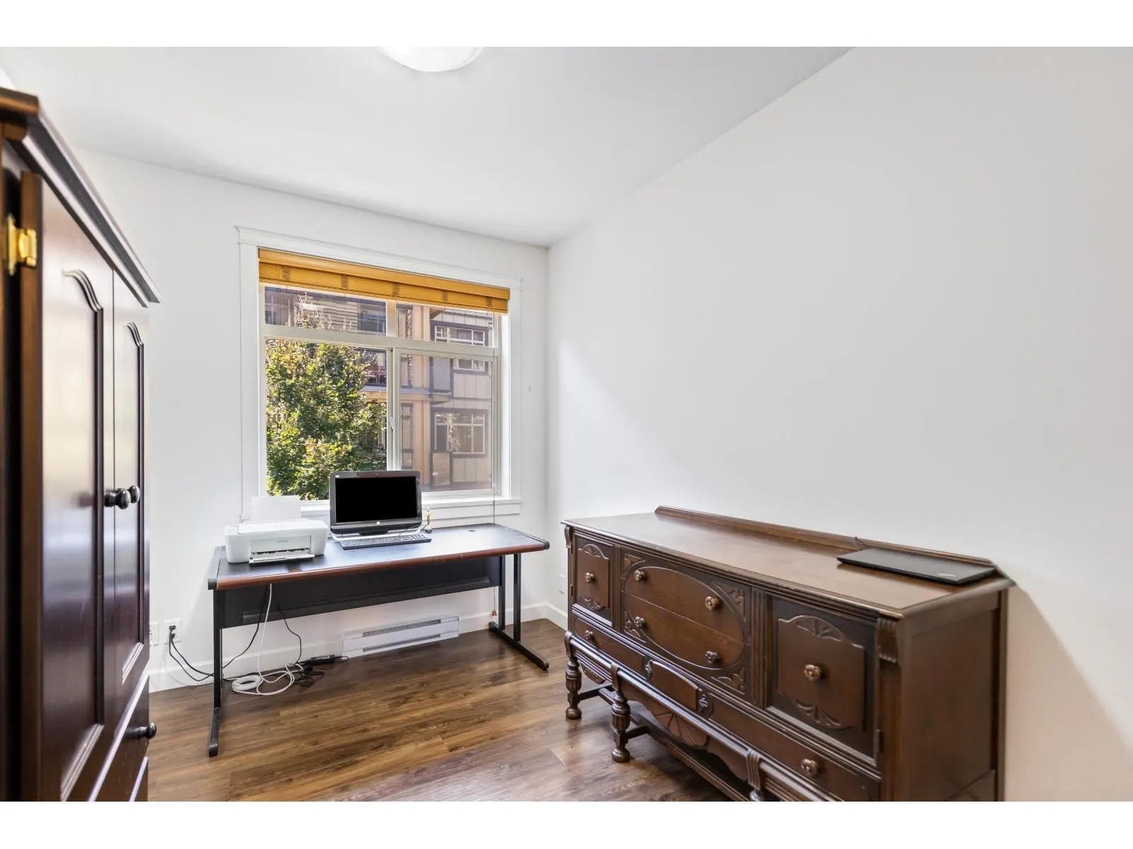 Stunning 2 bed, 2 bath + den (or 3rd bed) corner unit in sought after Walnut Ridge at Yorkson by Quadra Homes. This 1,035FT home features a spacious open layout w/ bedrooms on opposite sides of living for added privacy. Enjoy year round use of the 224FT covered, south facing, wrap around balcony, w/retractable glass, overlooking peaceful courtyard. Chef's kitchen boasts s/s appliances, granite countertops, quality cabinetry & large island. Primary suite inc/walk-in closet & spa like ensuite with large shower. Freshly painted with luxury touches like A/C, heated bathroom floors & anti-fog mirrors. Includes 2 parking stalls & oversized storage w/ electrical outlet & roll-up door. In the heart of Willoughby Heights close to schools, parks, transit, restaurants, shopping & Hwy1 access. (id:27476)