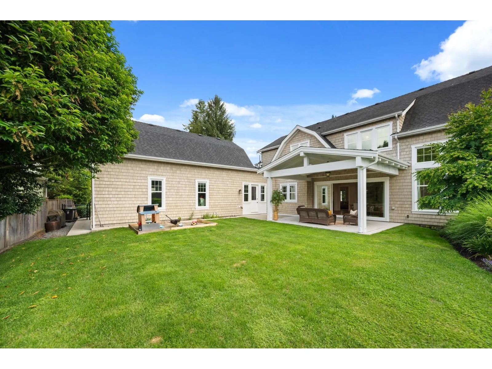 Su Casa designed Hamptons style 7 bed 5 bath home on a large beautifully landscaped lot with wonderful neighbours and surrounded by a privacy hedge of laurels & flower gardens, views of Golden Ears and room for a pool & sports court. This spectacular luxury home with soaring 18 foot ceilings and a floor to ceiling fireplace is flooded in natural light and perfect for large family gatherings (the dining area accommodates a table for 16 and is adjacent to a wall of glass nana doors leading to a covered outdoor living area! ). Main floor also has a children's play room, home office, and mud room with a dog wash. With an authorized 2 bed suite and potential suite above the garage, this would make a wonderful multigen property. Home is where your Storey begins! (id:27476)