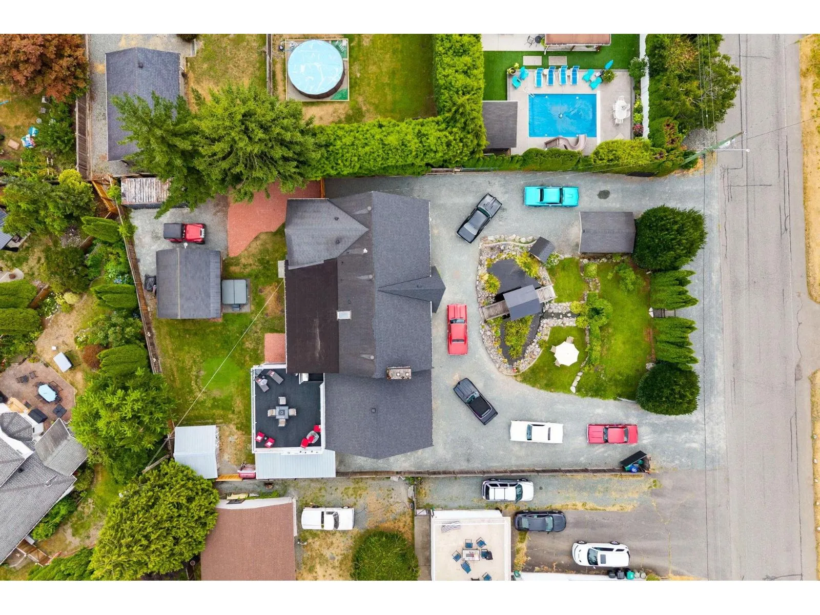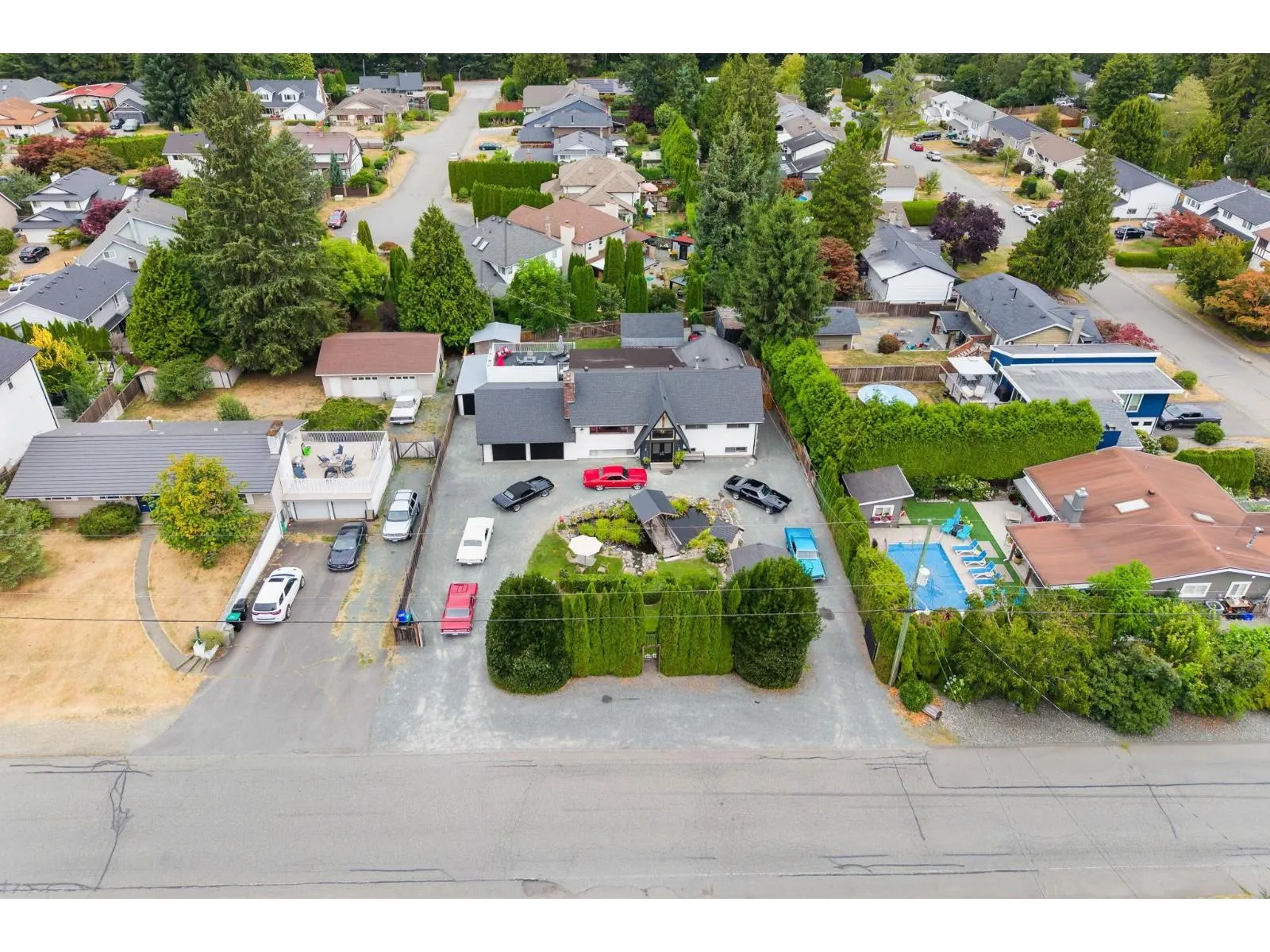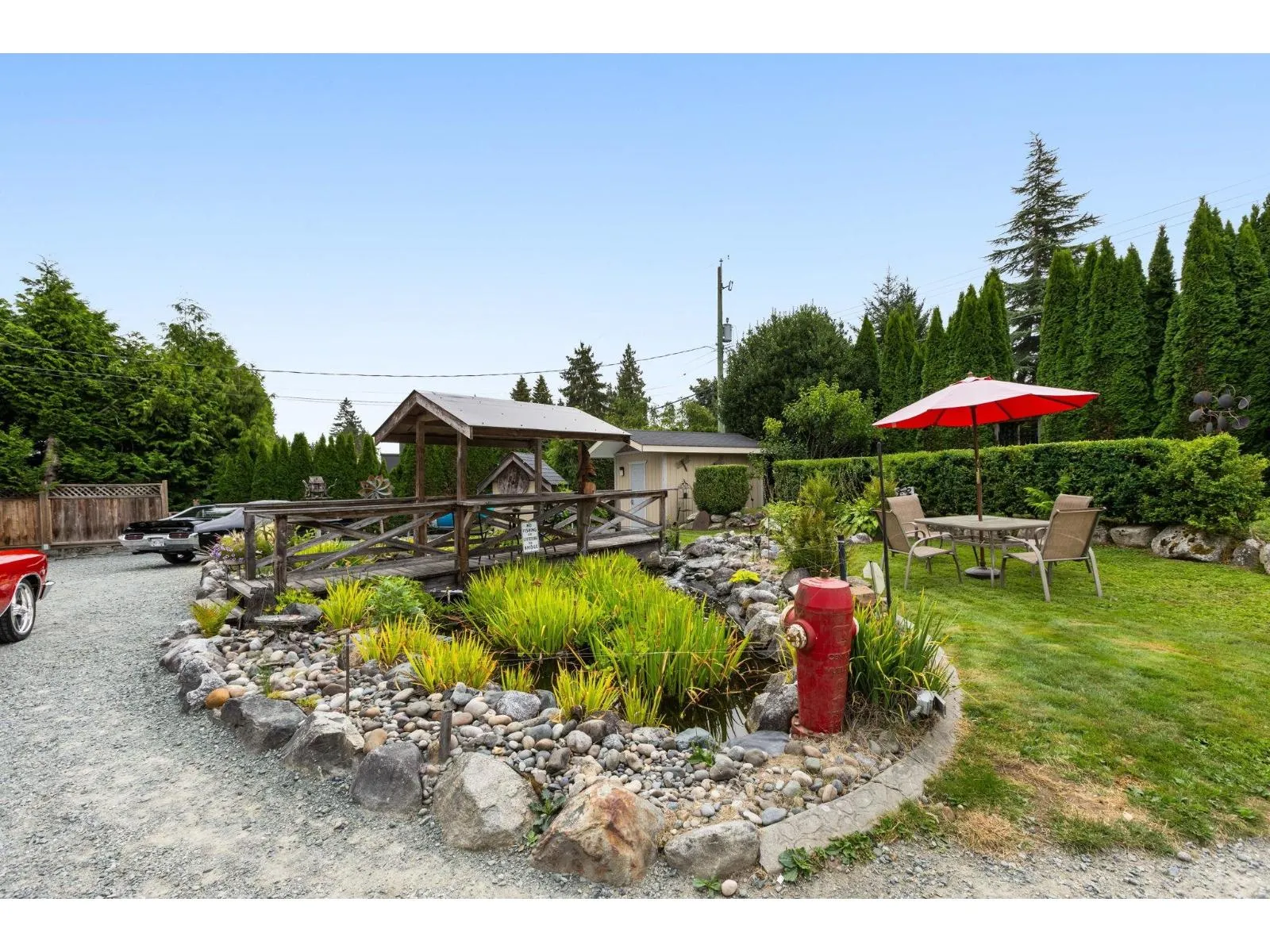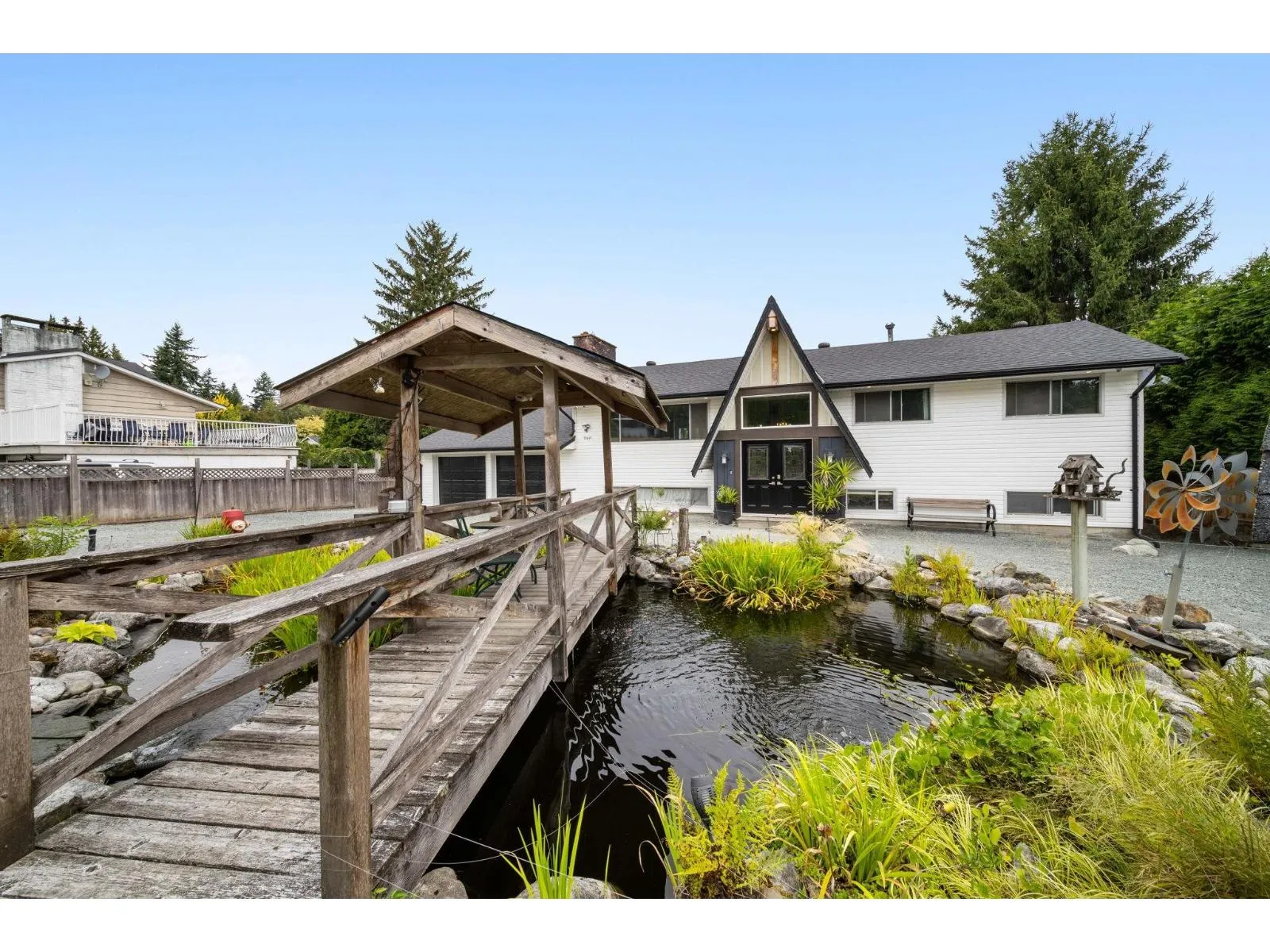 Set on a private 15,000+ sq ft fully fenced lot, this versatile 5-bedroom, 3-bath Langley home offers exceptional space and flexibility. Ideal for car enthusiasts or hobbyists, the property features a double garage, multiple workshops, ample storage, and parking for 10+ vehicles. Inside, enjoy light-filled living areas, a natural gas fireplace, and a refreshed kitchen. The primary retreat boasts vaulted ceilings, an ensuite, generous closet space, and French doors leading to expansive sundecks. Outdoors, the serene yard us framed by mature cedar hedges and includes a large pond and storage sheds. A 2-bedroom suite provides excellent options for extended family or rental income. Peaceful and private, yet minutes to everyday amenities. (id:27476)