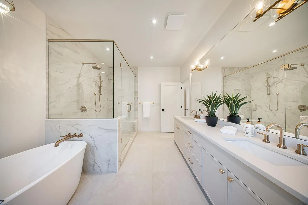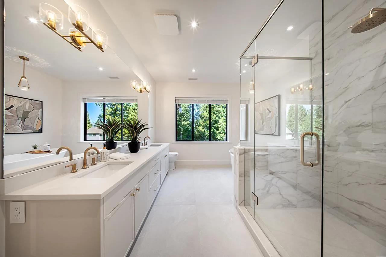 A refined custom home by Belican Construction delivering over 3,600sqft of elevated living in Langley's prestigious Uplands. This 6-bed, 6-bath residence is thoughtfully designed for both style and comfort, showcasing a gourmet kitchen with Fisher & Paykel appliances, quartz counters, and an entertainer's bar complete with beverage fridge. The main level extends to a covered outdoor living area and a professionally landscaped, irrigated backyard. Upstairs, four well-appointed bedrooms each offer their own ensuite, highlighted by an impressive primary suite featuring a fireplace, spa-like shower, soaker tub, and double vanity. The home also includes a 1-bedroom legal suite with separate access, EV-ready garage, built-in vacuum, security features, and full smart home wiring throughout. (id:27476)